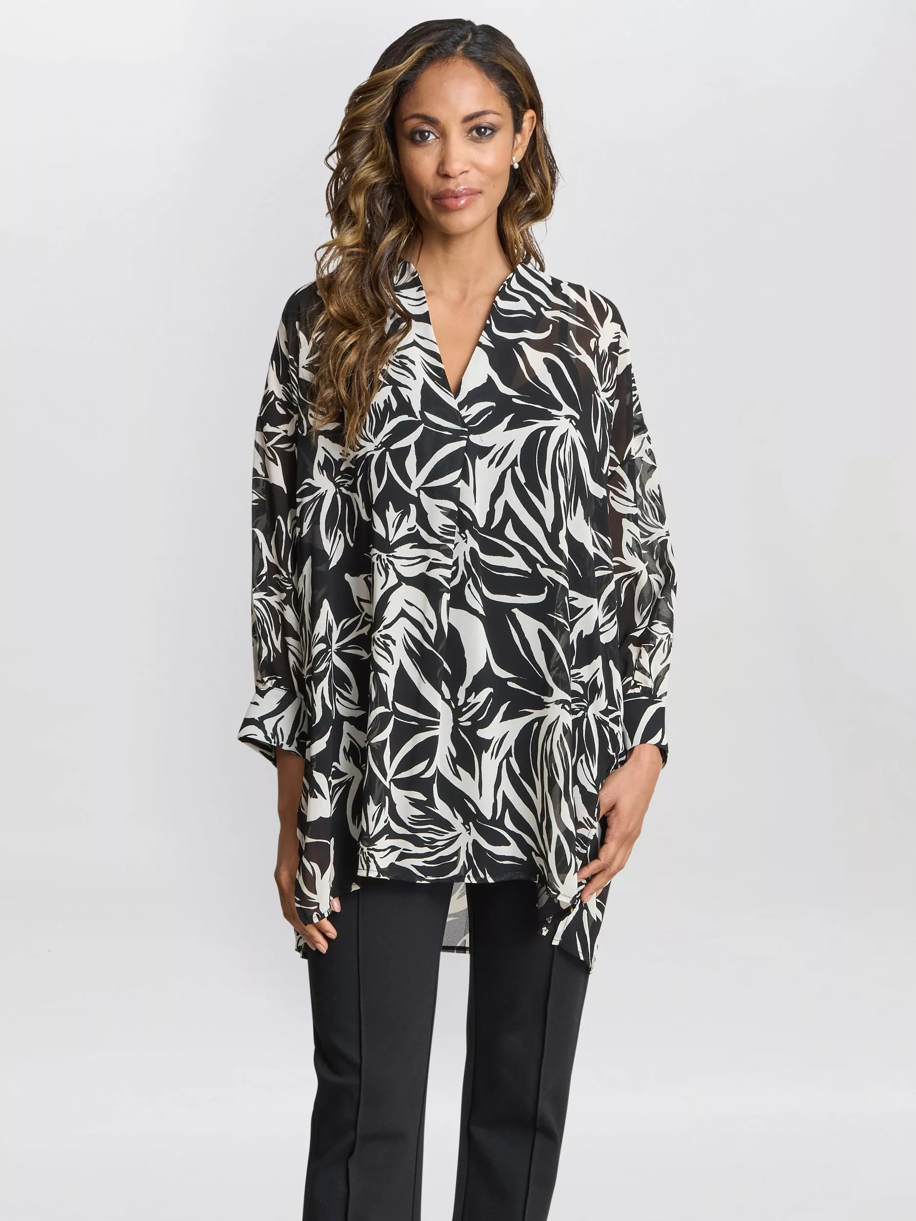 The Dido tunic is a beautiful long line top with a grandad collar, easy to wear over a trouser. This top has a separate lining.