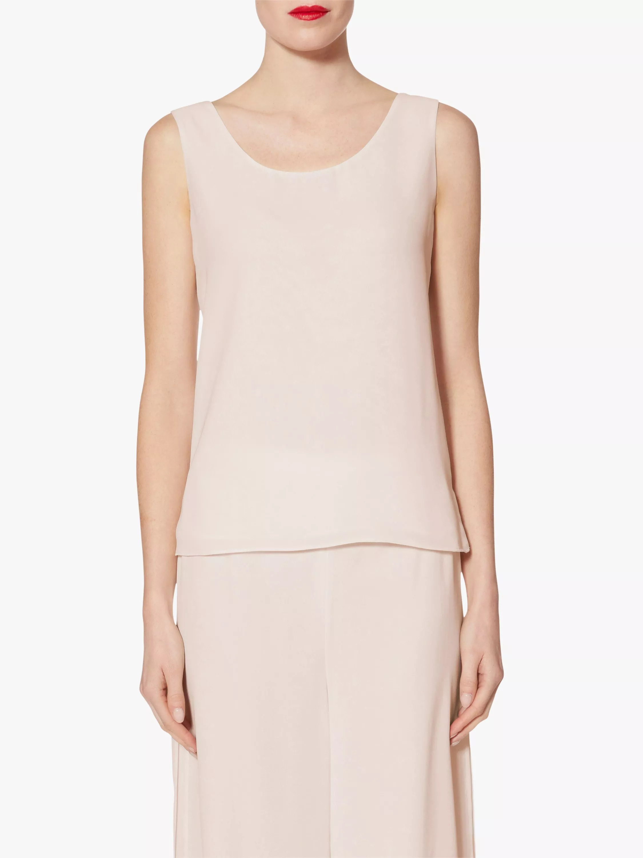 Crafted from a lightweight fluid chiffon fabric, and fully lined for comfort. This relaxed style is cut to a sleeveless shape, with a flattering scoop neckline and side slits for ease of movement.