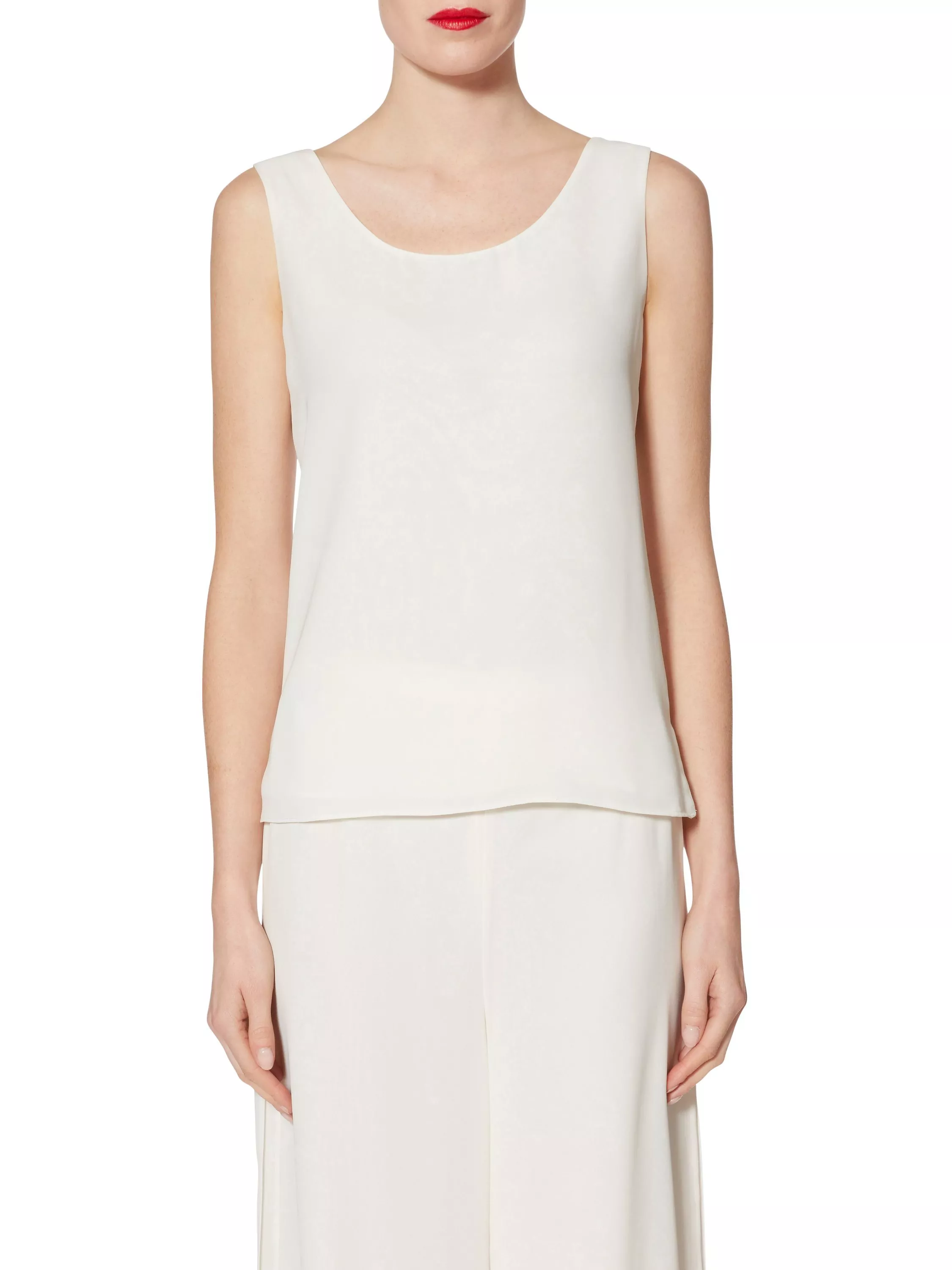Crafted from a lightweight fluid chiffon fabric, and fully lined for comfort. This relaxed style is cut to a sleeveless shape, with a flattering scoop neckline and side slits for ease of movement.