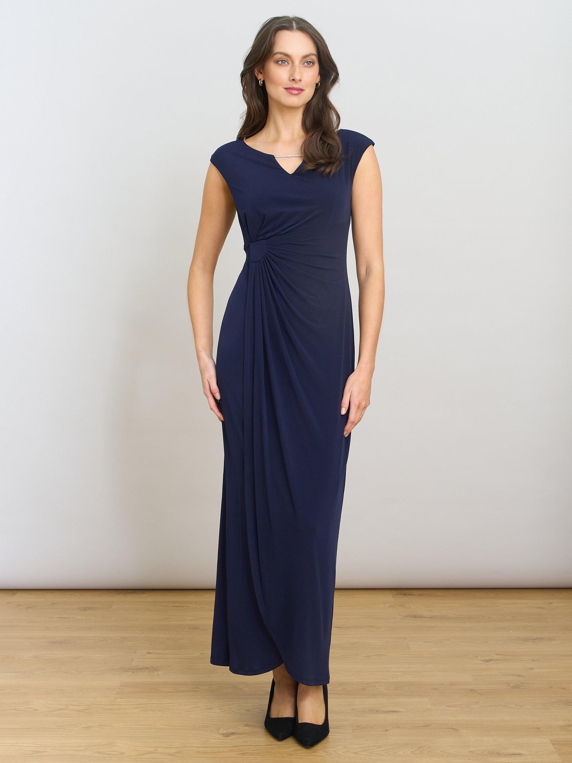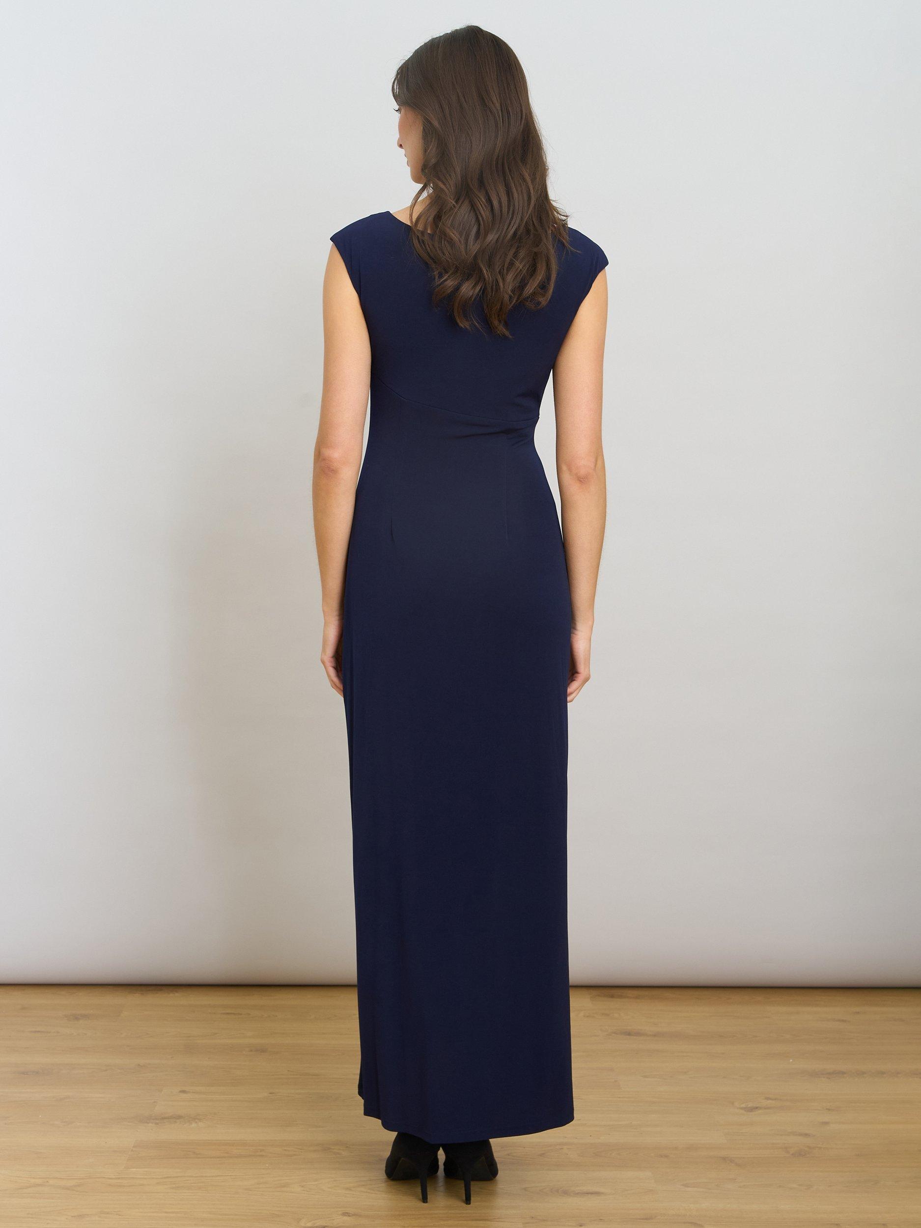 Feel wonderful in the Eileen wrap dress, designed to make a statement at any special occasion. This slip-on style dress is designed to be easy-wearing, featuring short sleeves and a round neckline with a V-neck detailing with embellishments. The wrap detailing enhances curves, which creates a feminine look.