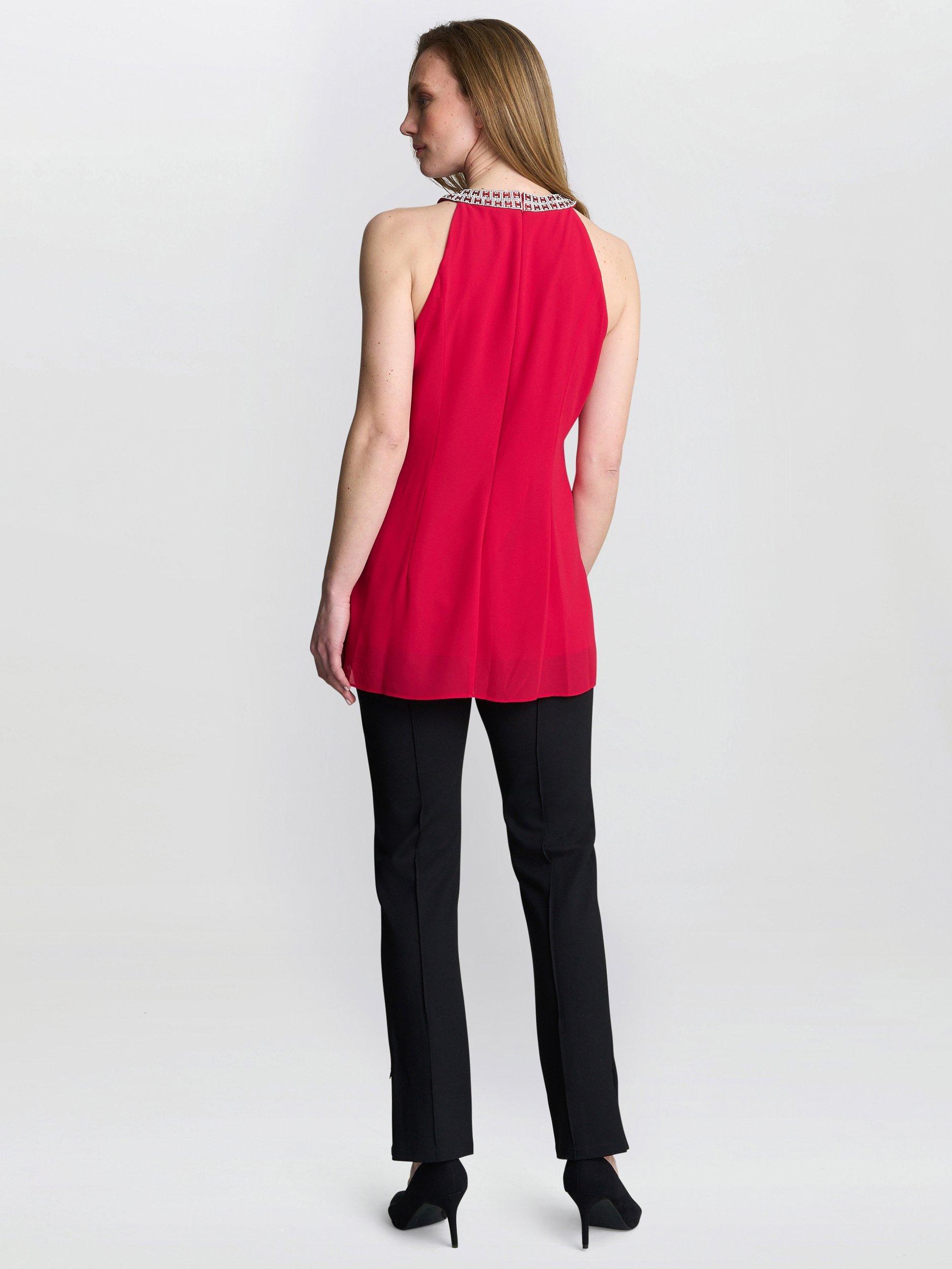 Elevate your wardrobe with this Elle Halter top. Designed in a beautiful colour, this sleeveless top features a graceful halter neckline with beaded embellishments, adding a touch of sparkle.