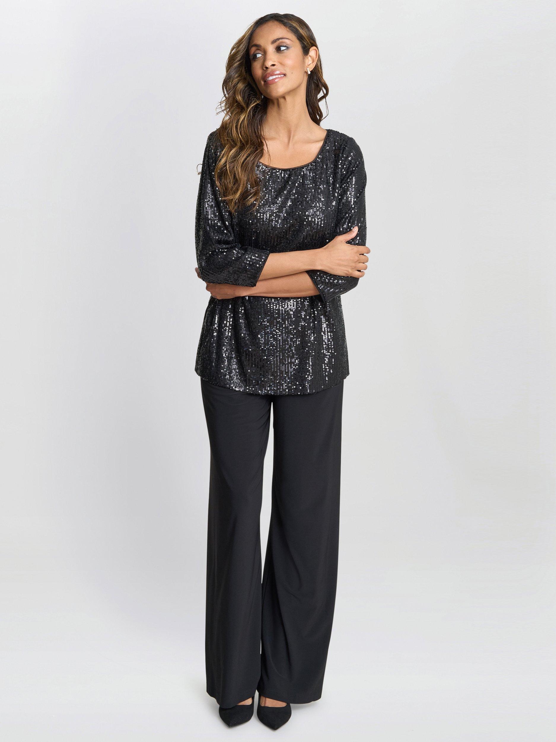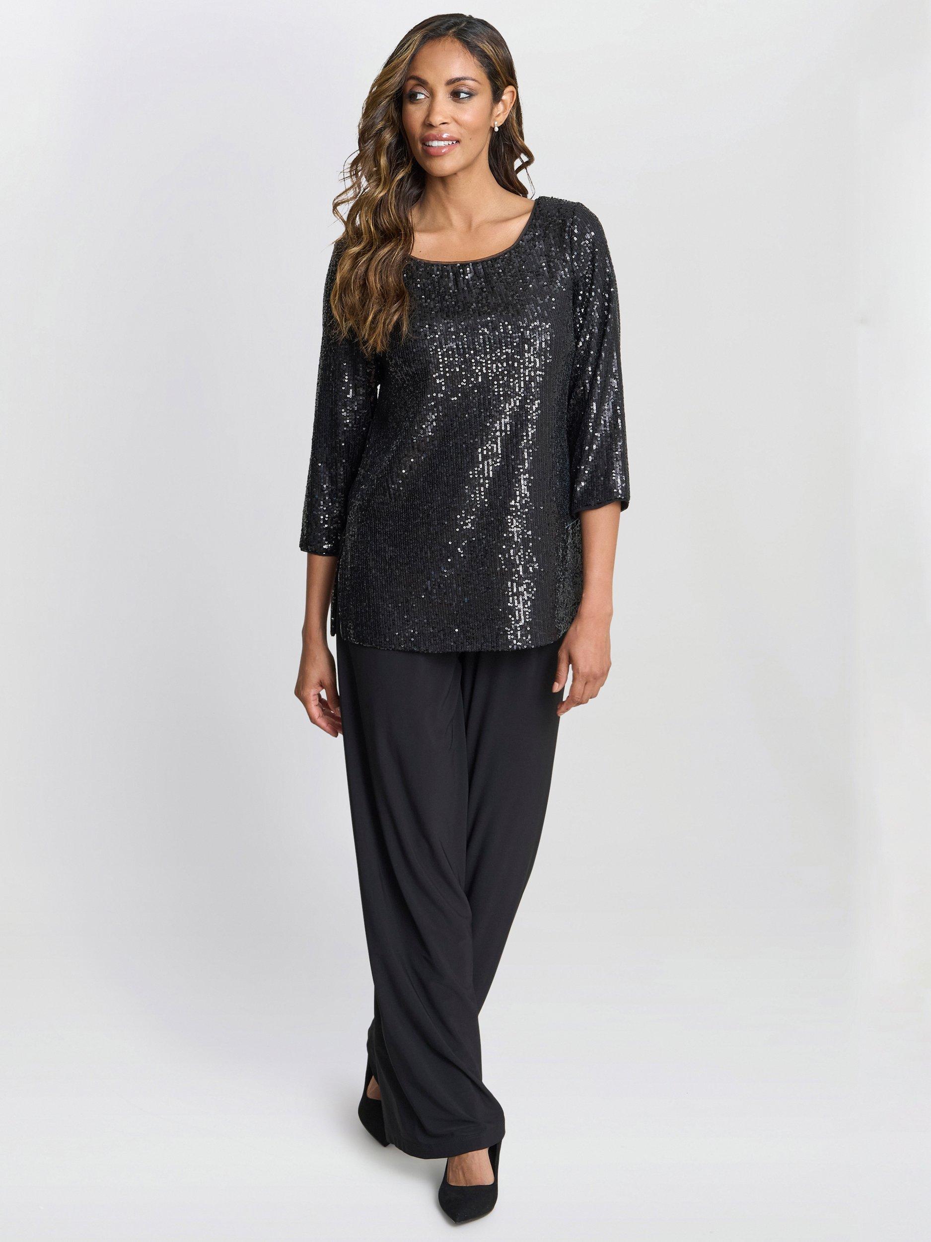 This throw on sequin 3/4 sleeve top is versatile and easy. Add sparkle and glamour to your look with minimal effort. Easy to throw on with trousers or a skirt and perfect to wear under a blazer, this will become your go to top!
