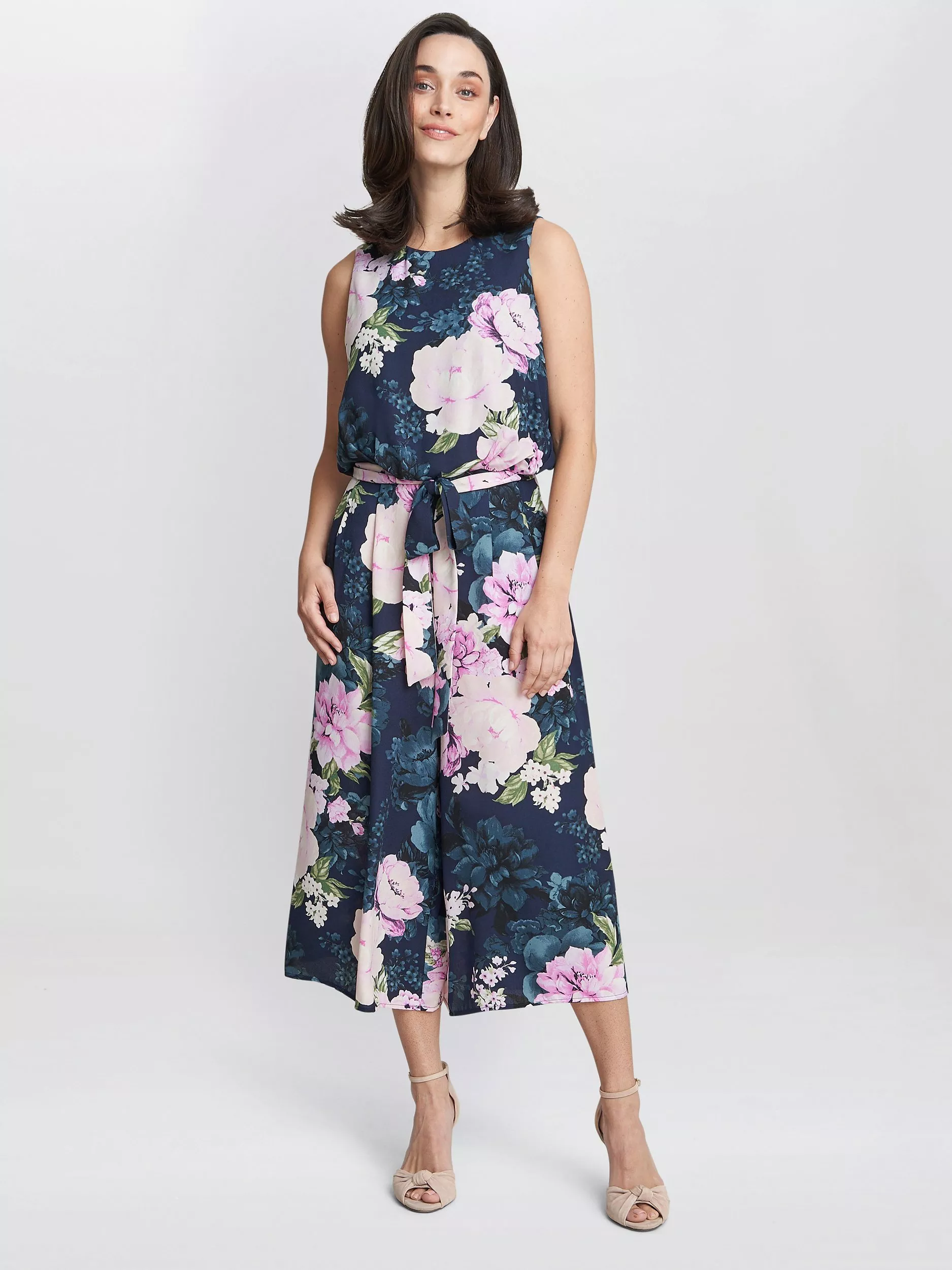Gina BacconiHope Floral Cropped Jumpsuit, Navy/Multi