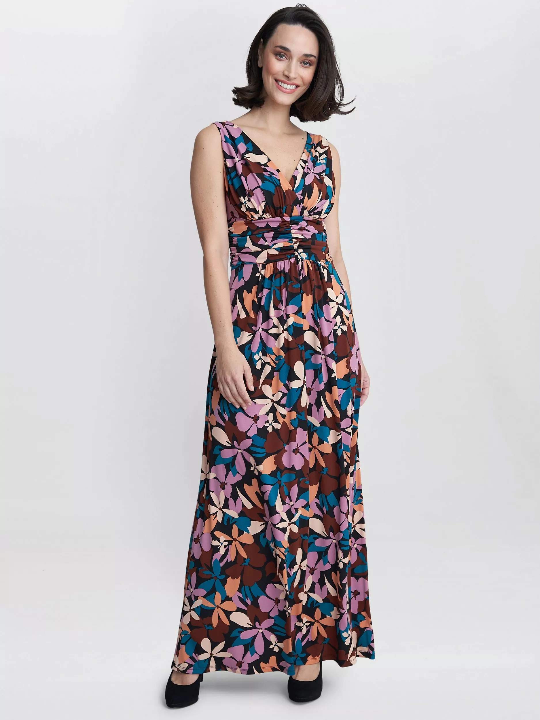 In a gorgeous soft stretch jersey, this classic Gina Bacconi dress has a flutter sleeve, crossover v-neck and flattering rushed high waist. Perfect to dress from day to night.