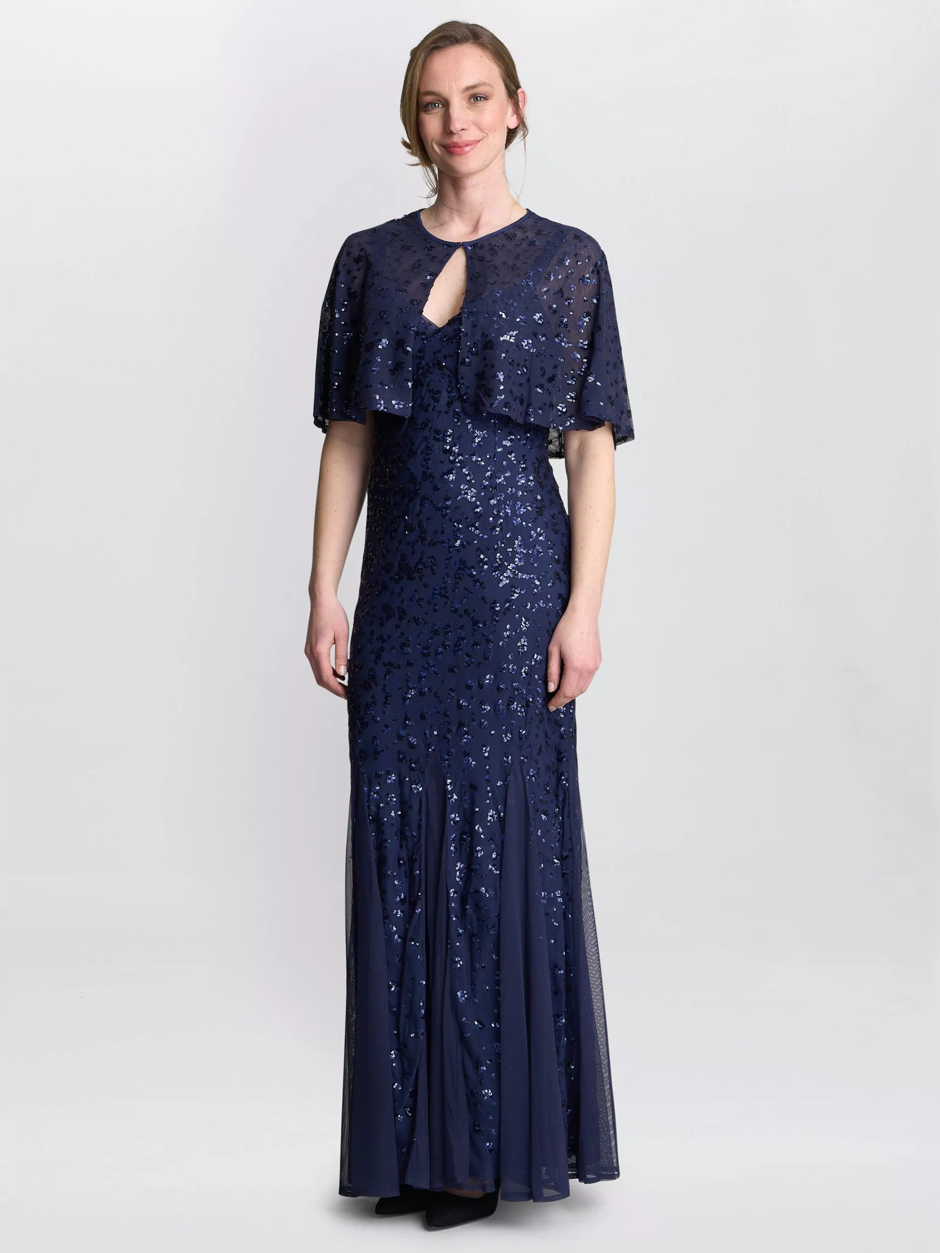 Dazzle everyone at your next occasion wearing the stunning Jordan Sequin maxi dress and jacket. It features an all-over sequin beadwork that creates a shimmering effect with every movement. The flattering fit and flare silhouette beautifully hugs the silhouette through the bodice before gently flowing out at the hem, creating an elegant shape. Paired with a matching jacket featuring a keyhole neckline, this piece is perfect for any special occasion.