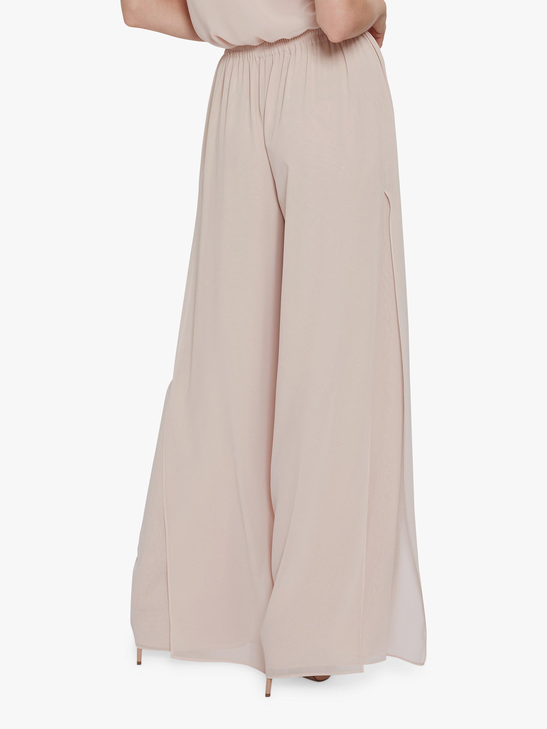 Crafted from a lightweight chiffon and fully lined for comfort. This triple-layered style is cut to a flattering wide leg with feminine side slit detail for added drama and movement.