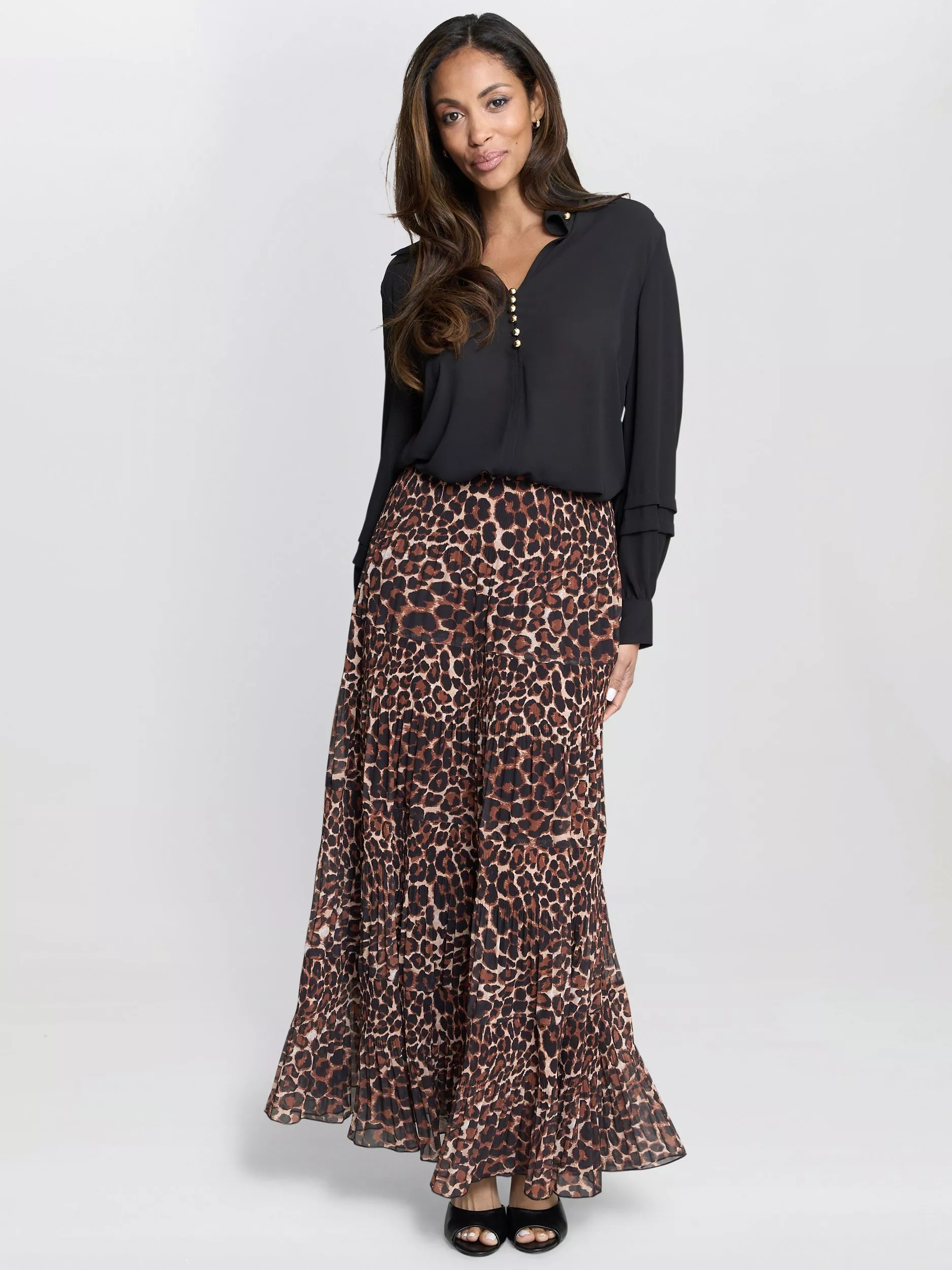 This skirt features a striking leopard print on lightweight, pleated fabric that moves beautifully with every step. You can dress it up or wear it casually.