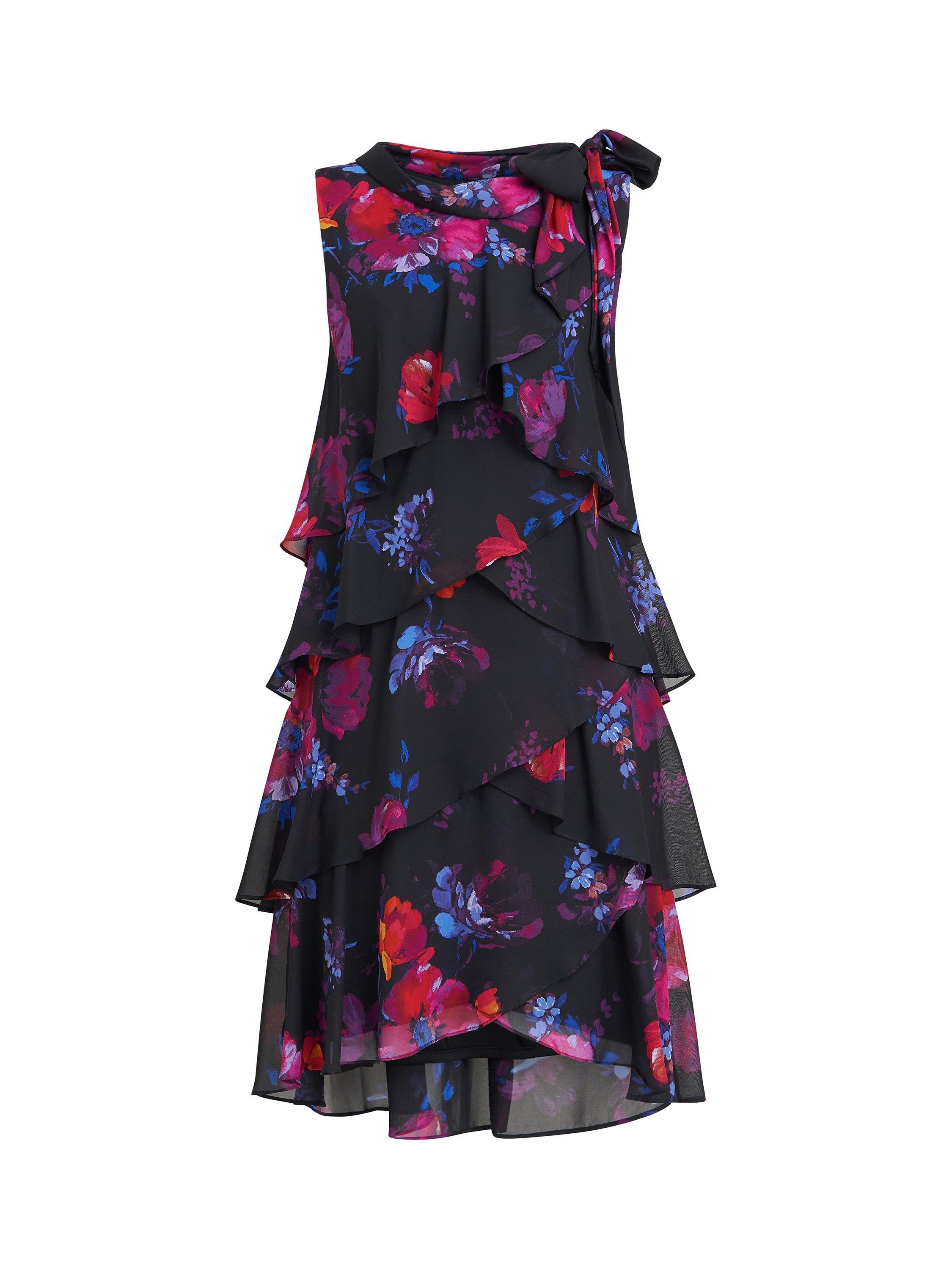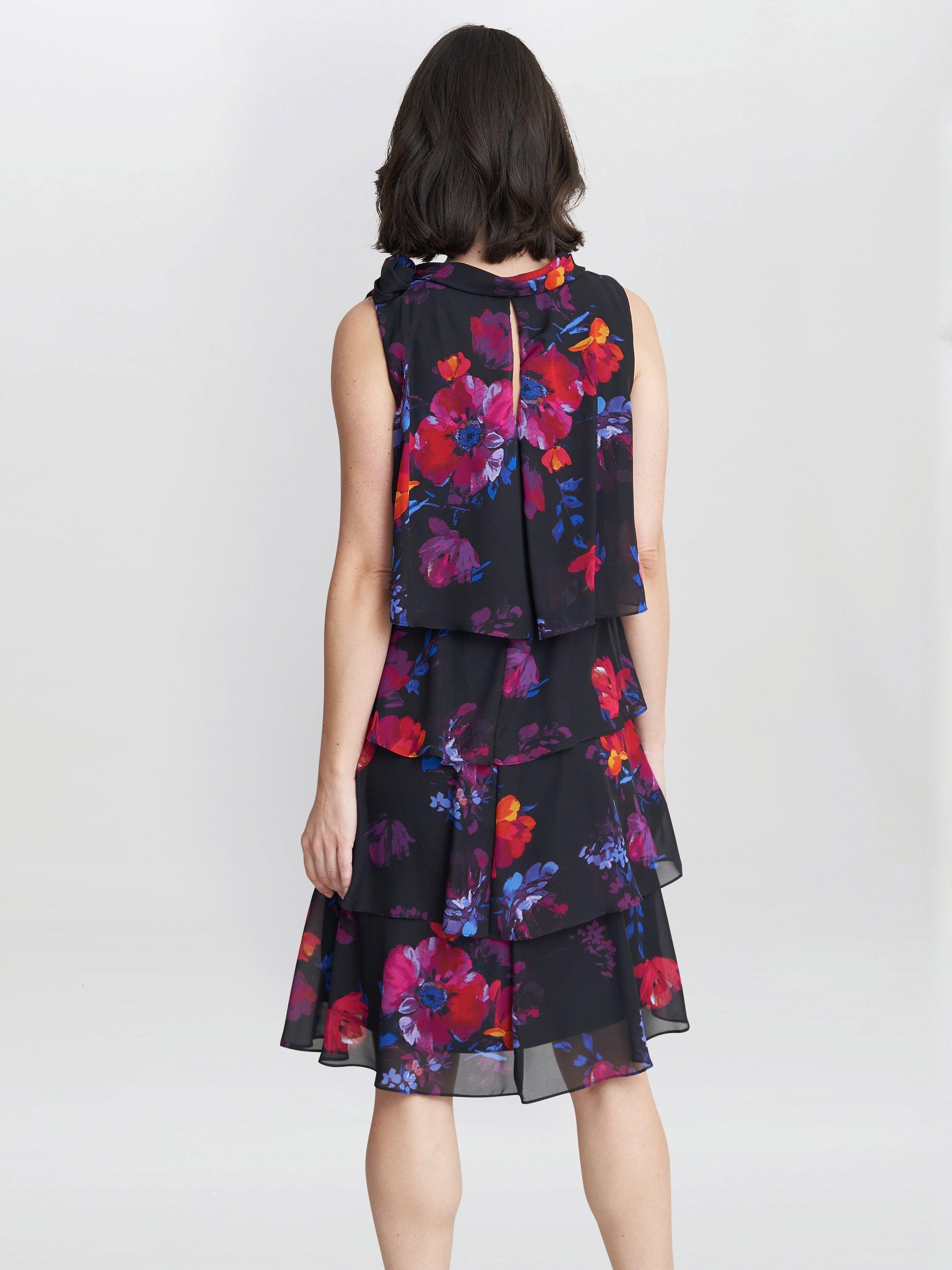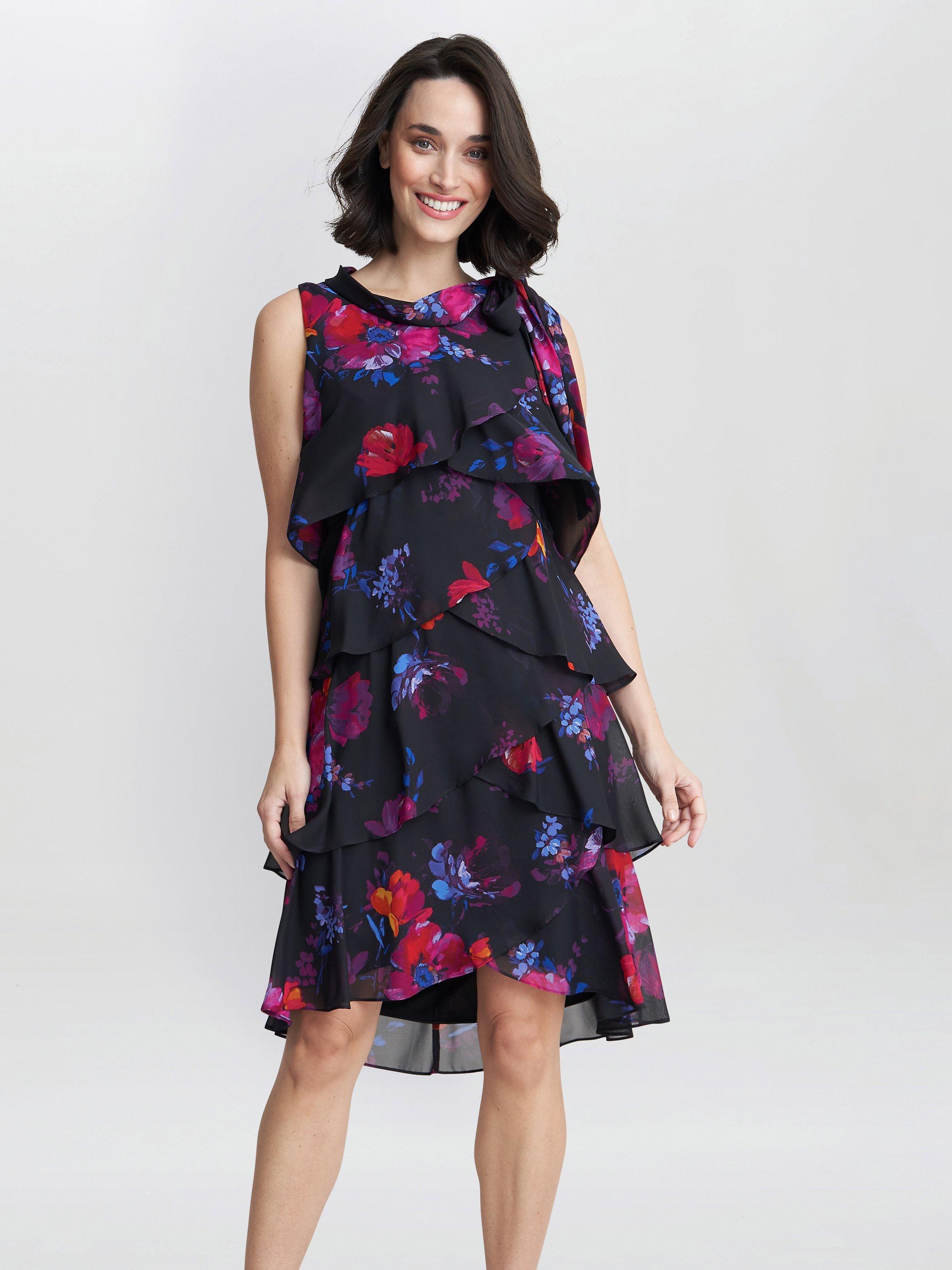 Offset with tiers for a sense of movement, this knee length dress from Gina Bacconi is made from a resilient fabric. A versatile choice thanks to the tie neckline, this style blooms with joy through a refreshing floral print.