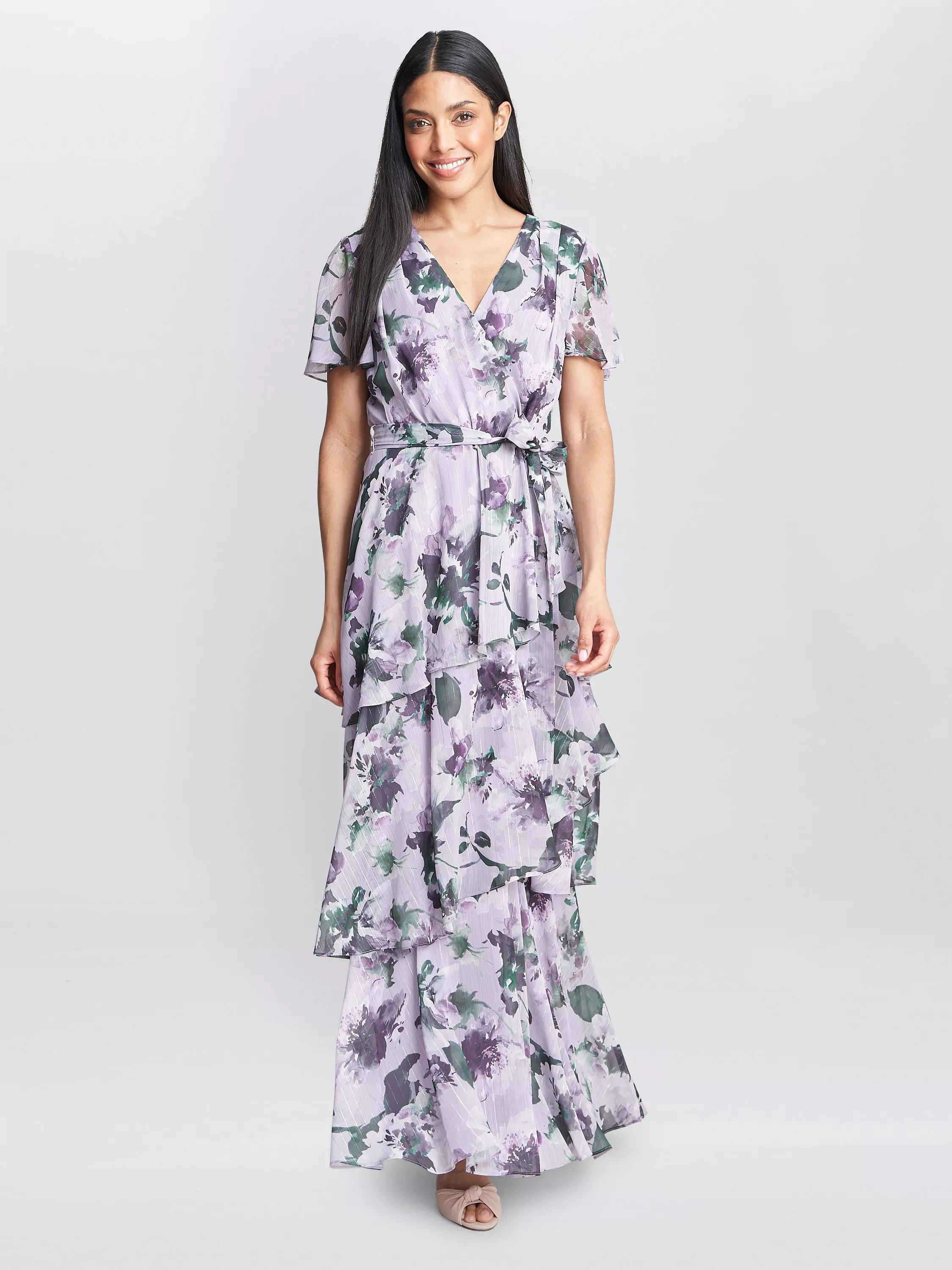 Gina BacconiRuby Floral Tiered Maxi Dress, Mauve