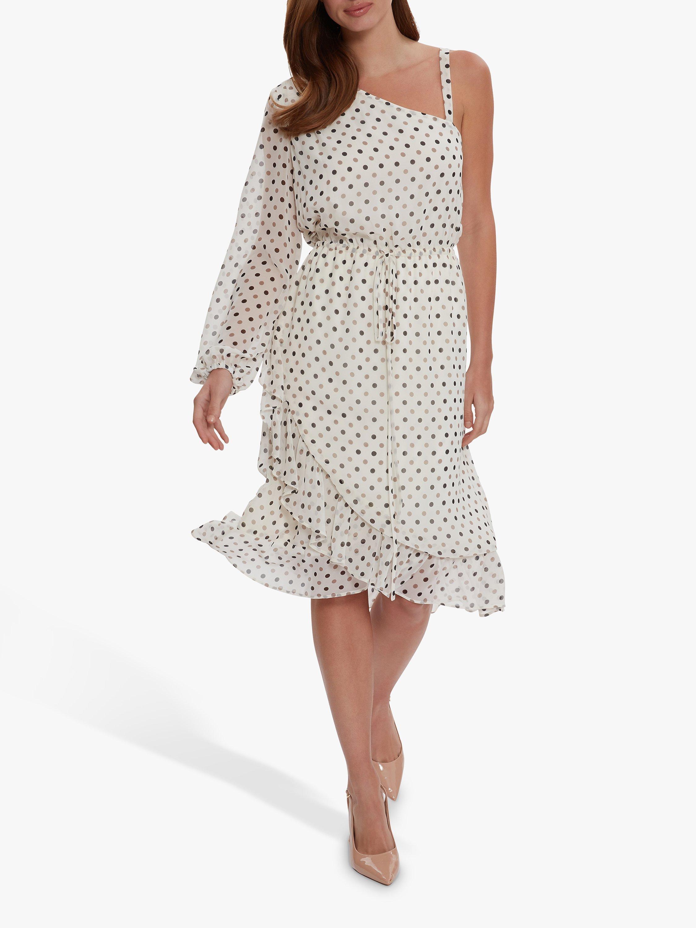 Gina BacconiSacha One Shoulder Chiffon Spot Dress, Ivory/Multi
