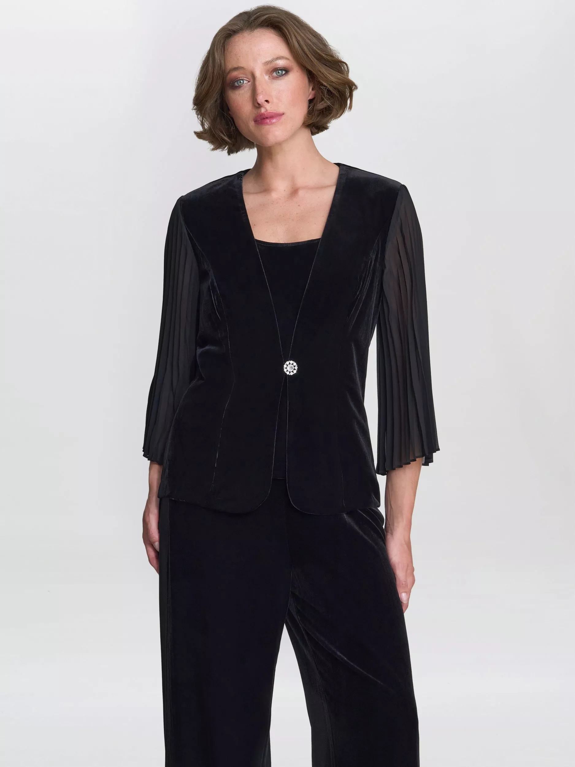 - Jacket body & cami: 90% polyester, 10% elastane, Sleeves: 100% polyester