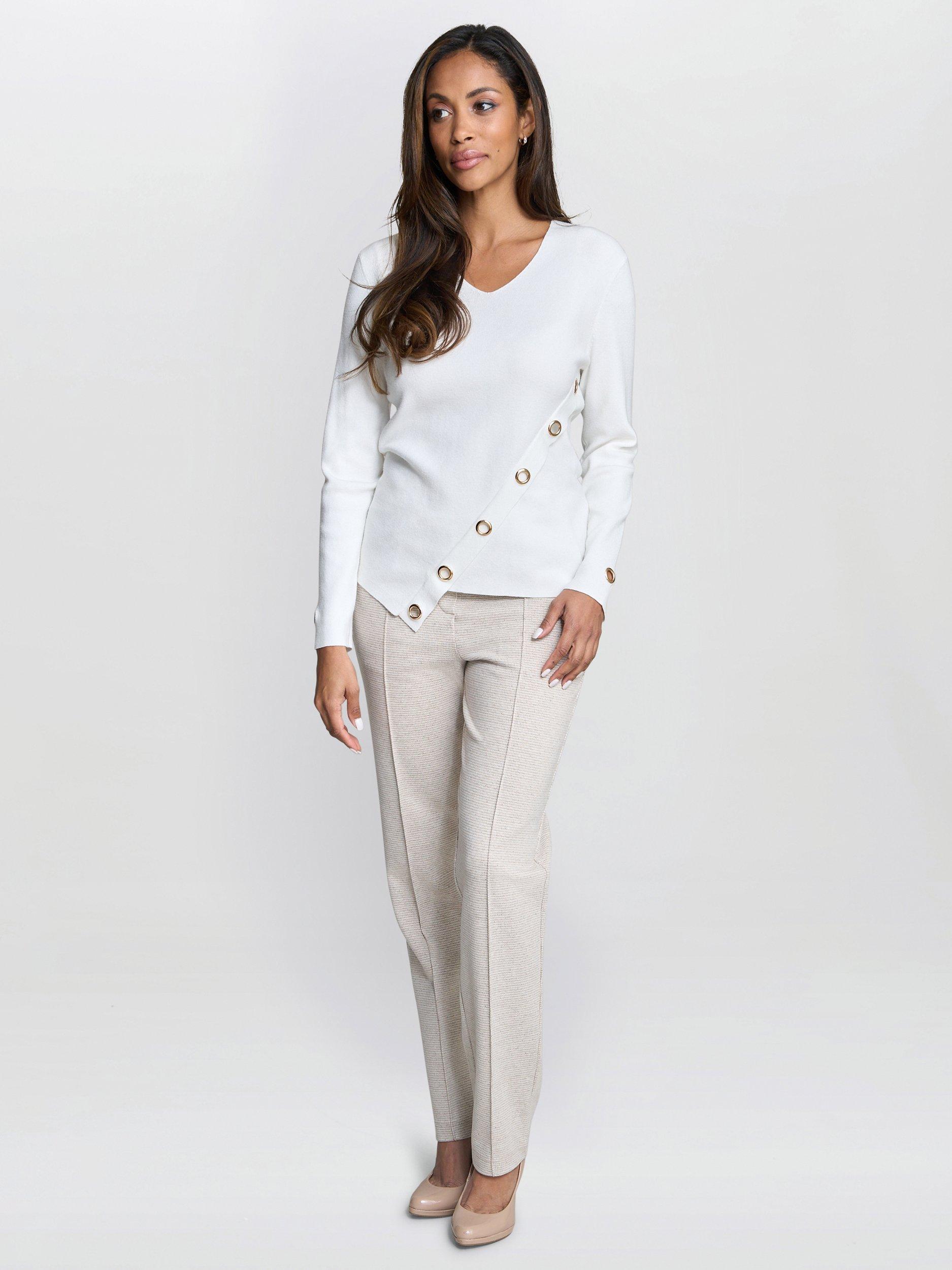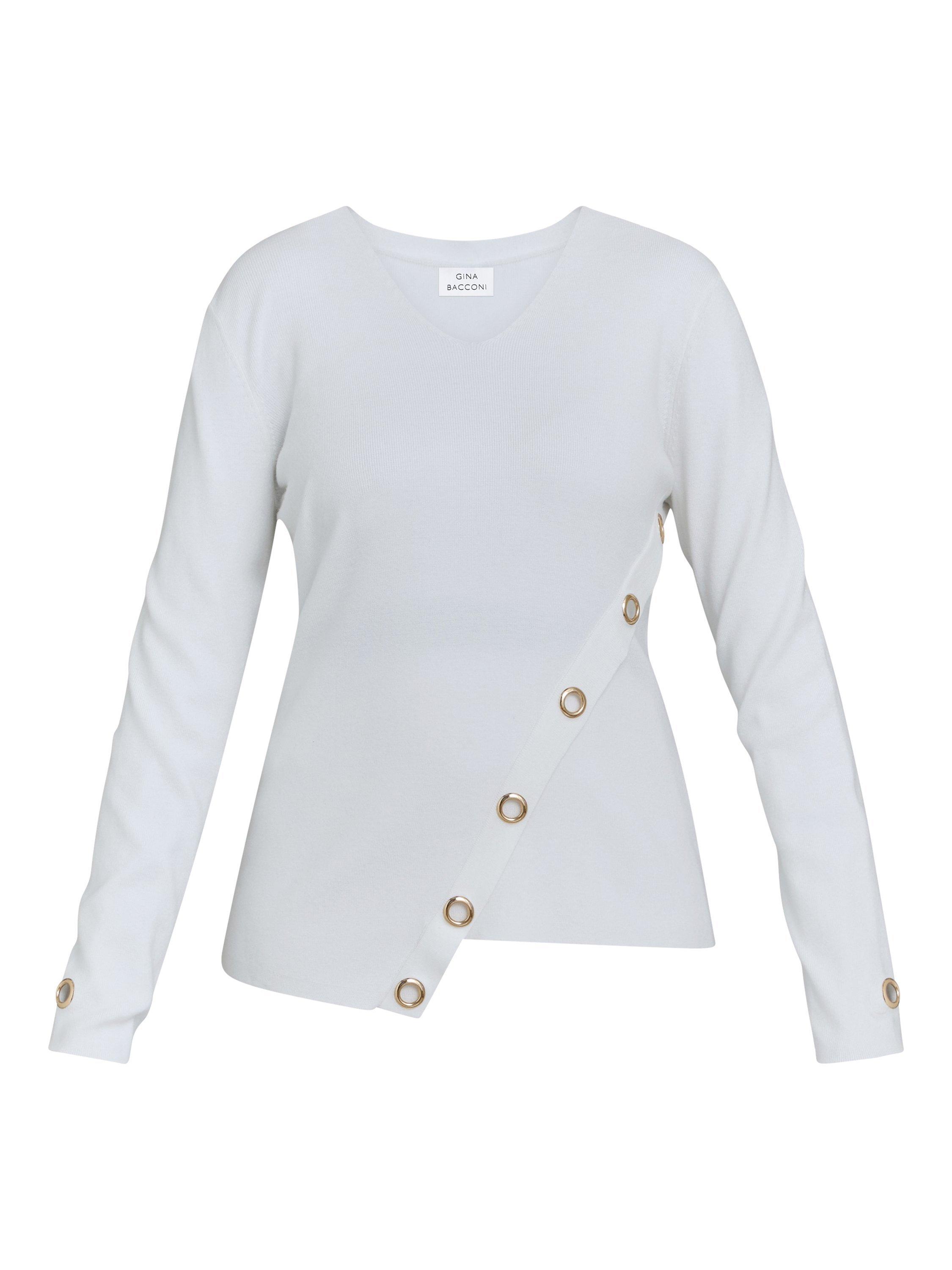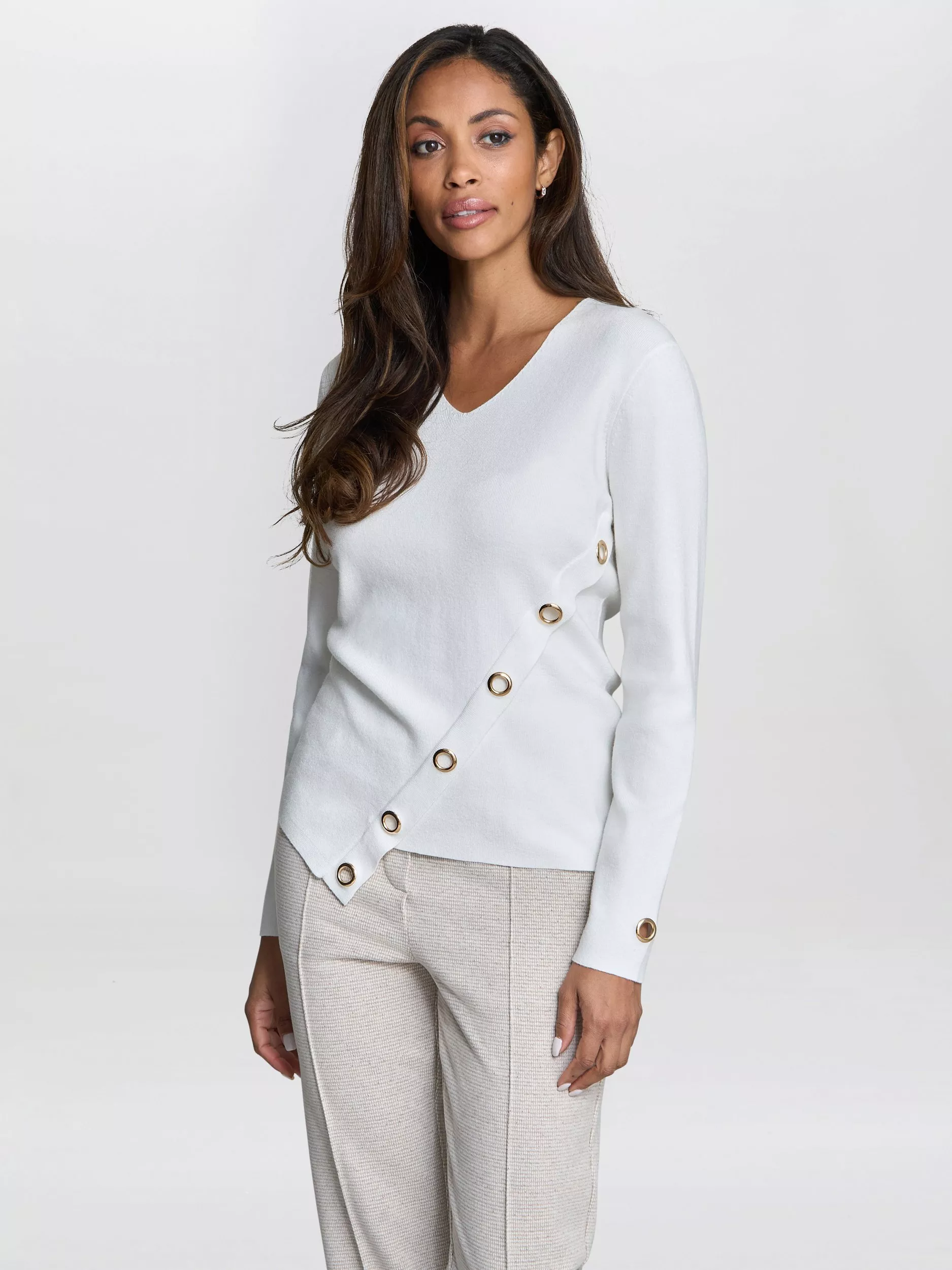 Made using a warming fabric blend, this fine V-neck jumper from Gina Bacconi is designed with asymmetrical button detail that runs diagonally across the front for a modern finish.