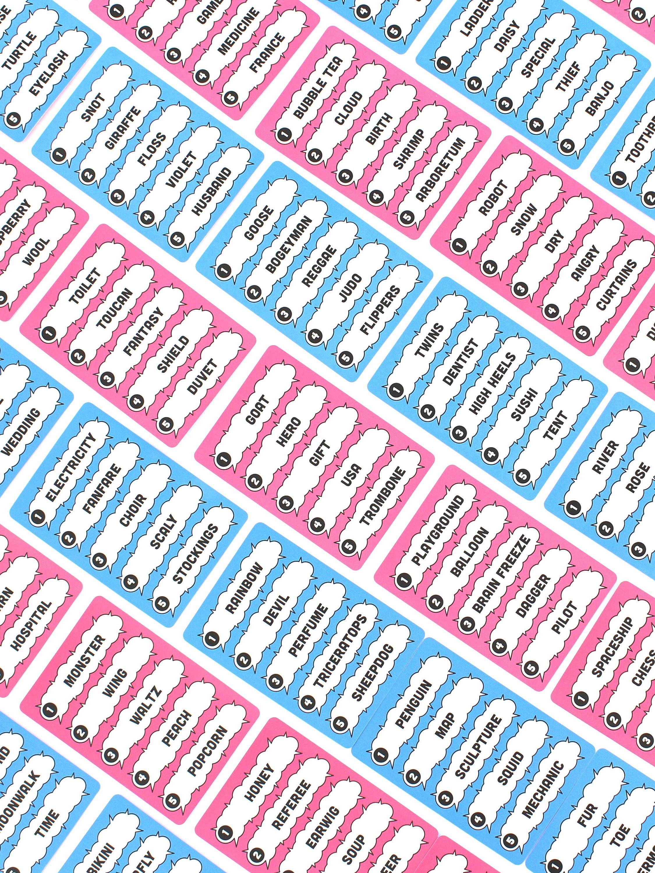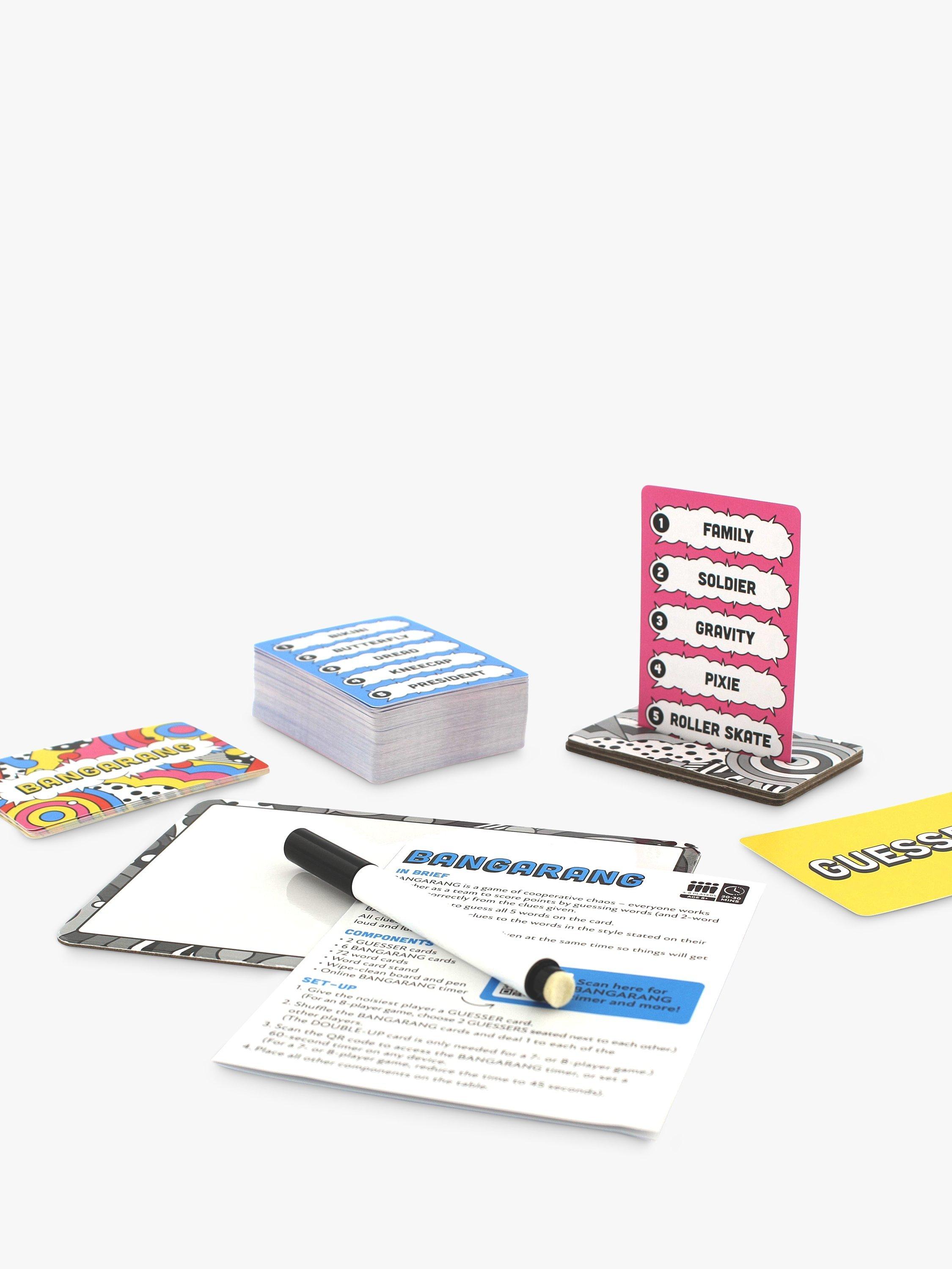 BANGARANG is a game of cooperative chaos- everyone works together as a team to score as many points as possible by guessing words based on the clues given. Guessers have 60 seconds to guess the words on the card with the help of a clamour of clues given by all the other players. The clues may be a single word, mimed, drawn, a sound or spelt out using the body - AND they will all be given at the same time, so brace yourself for things to get loud and ludicrous.
