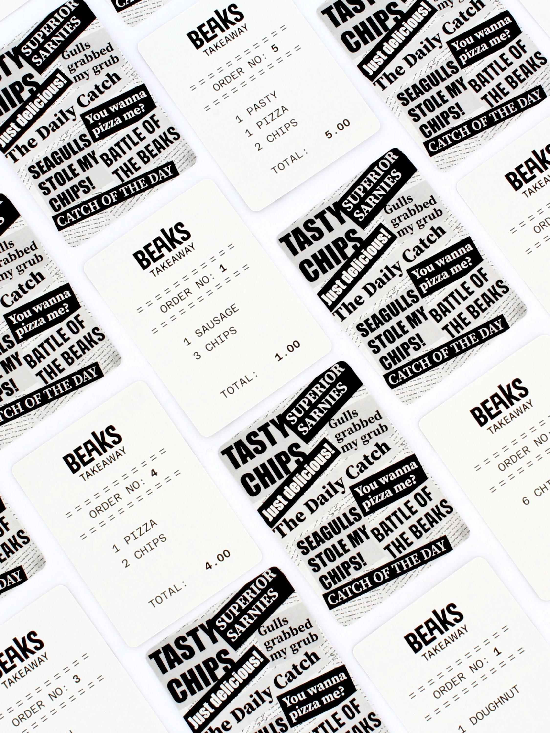 With easy-to-learn rules and a wild competitive edge, BEAKS is perfect for game night, family gatherings, and party fun. Each round is a hilarious mix of tension, laughter, and dexterity as players race to grab their food and shout "SQUAWK!" to claim victory. Can you be the fastest gull to grab your meal?