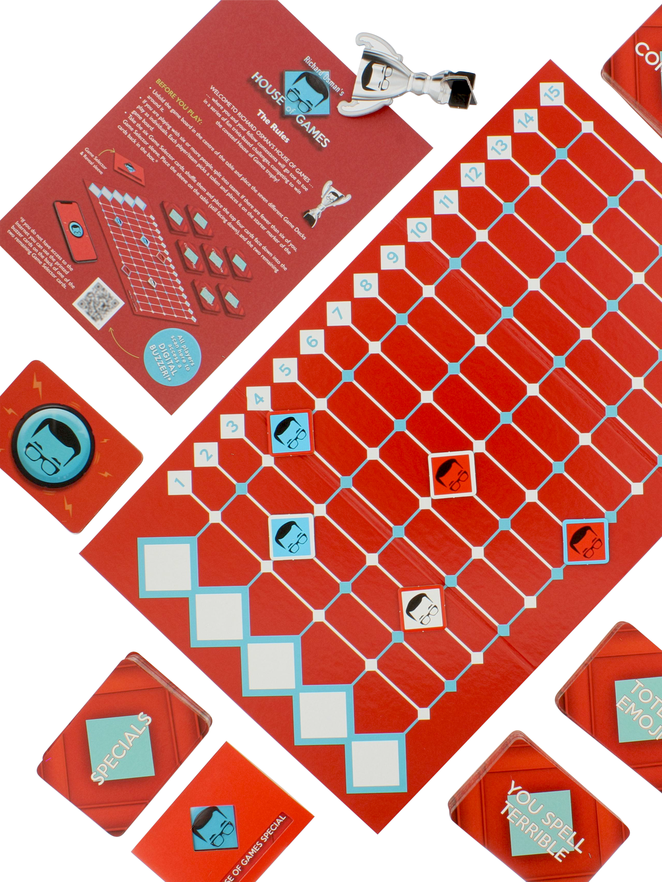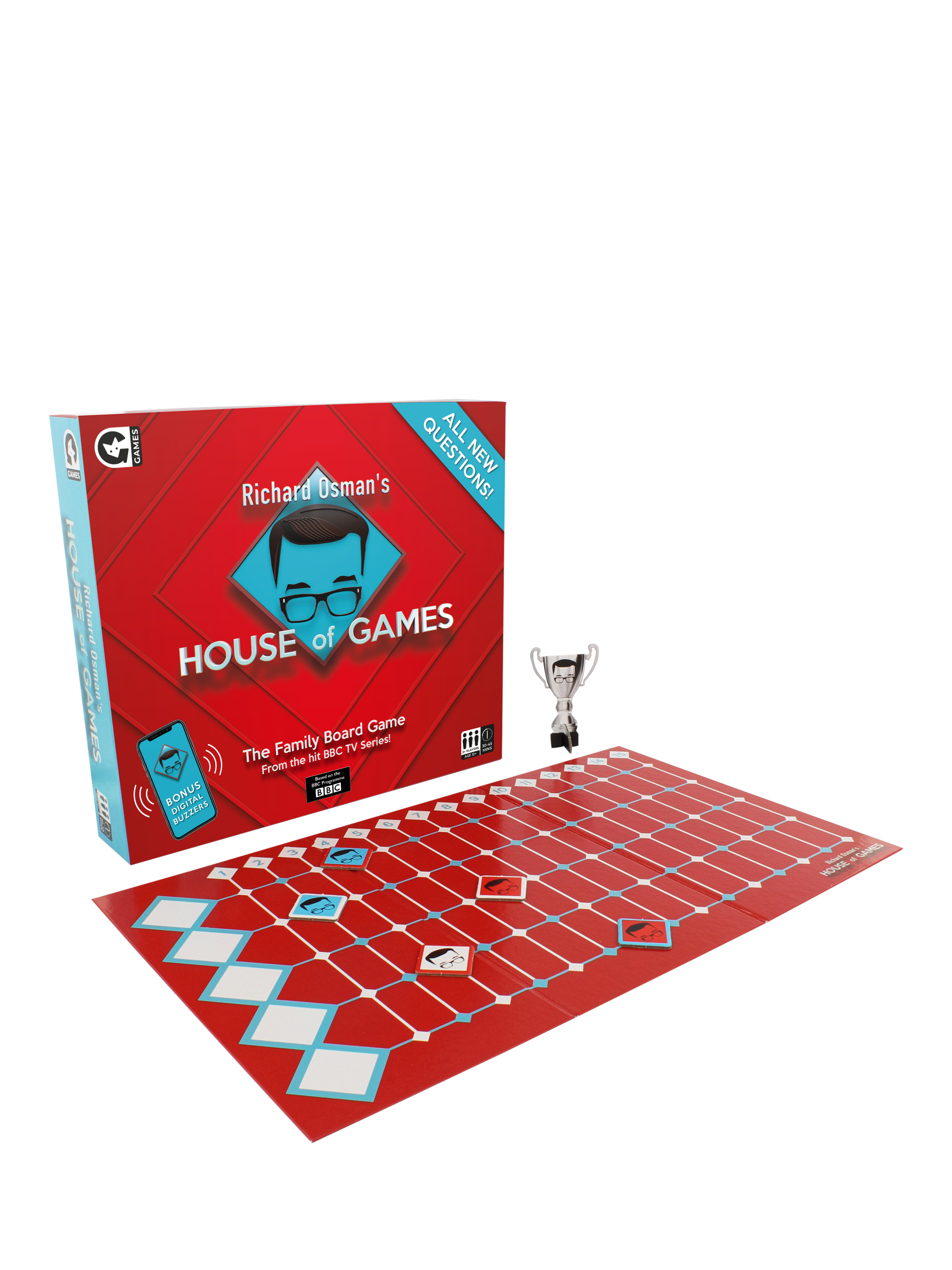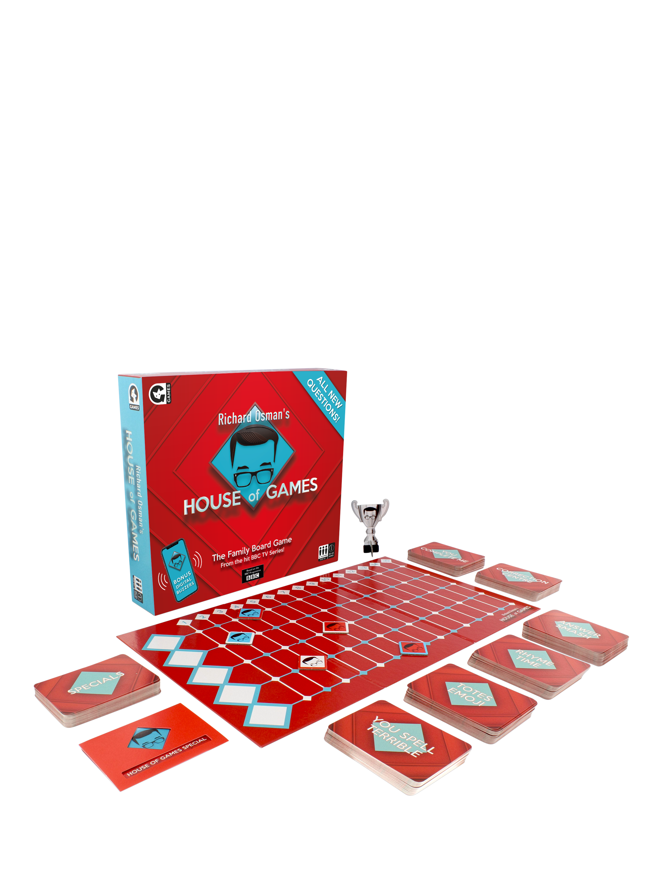 Based on the hit TV show hosted by Richard Osmond, the House of Games family board game is the ultimate test of knowledge and skill. Enjoy some of your favourite challenges from the show in the comfort of your own home. Team up to tackle some trivia or face off against each other in the iconic Answer Smash. Who will be the House of Games champion in this competitive compendium of games?