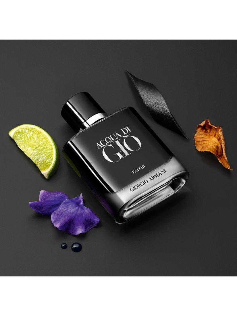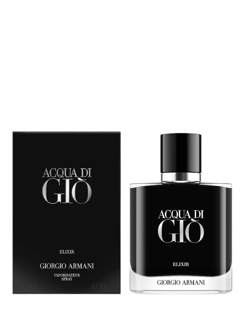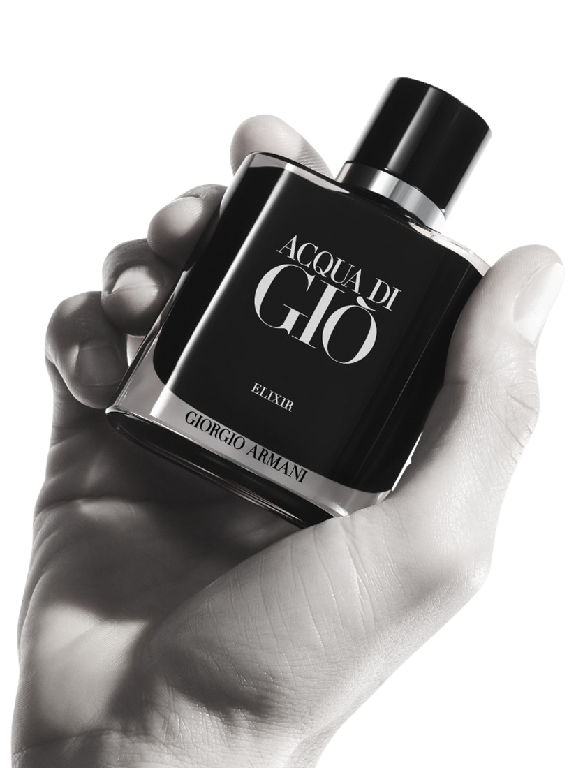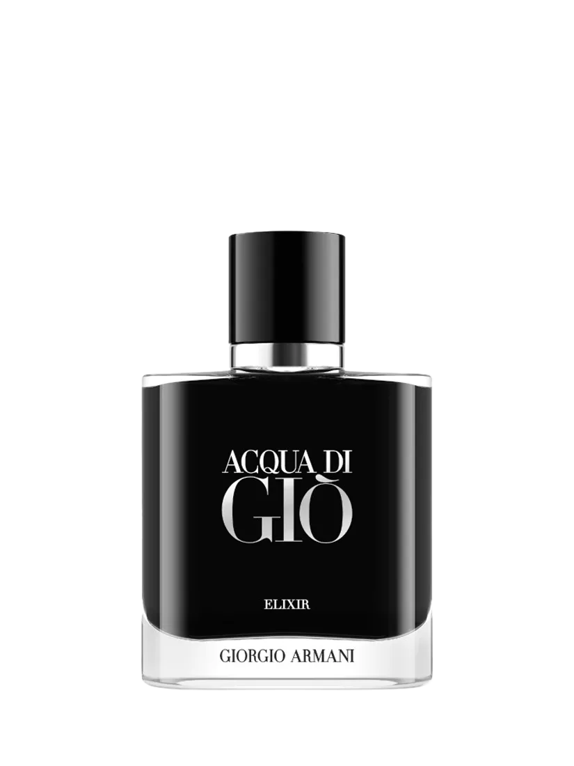 Acqua Di Giò Elixir's elegant intensity is captured in a sophisticated new bottle. The rounded square bottle, crafted from sleek glass, draws the eye to its mysterious depths. The interior is lavished with a deep black lacquer, with a magnetic cap, rendered in sleek black and silver, adds a final touch of contemporary sophistication.