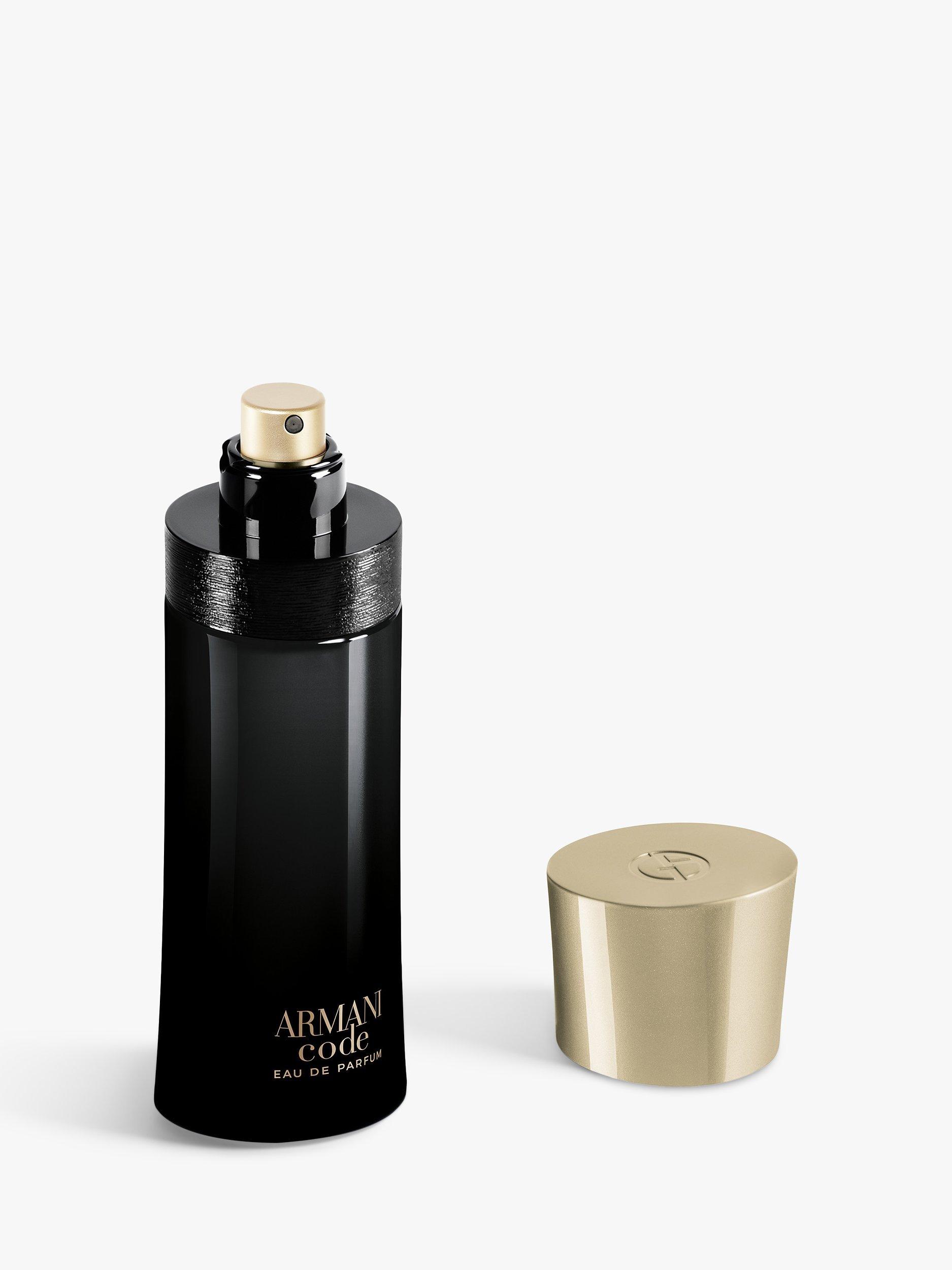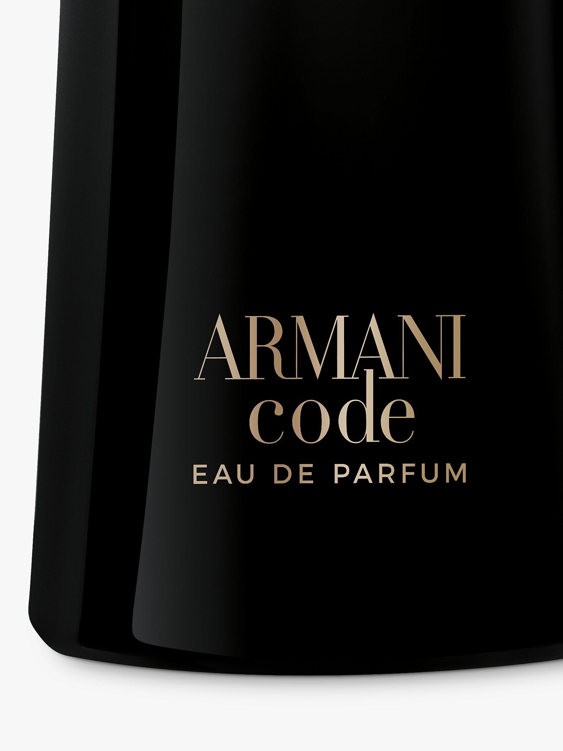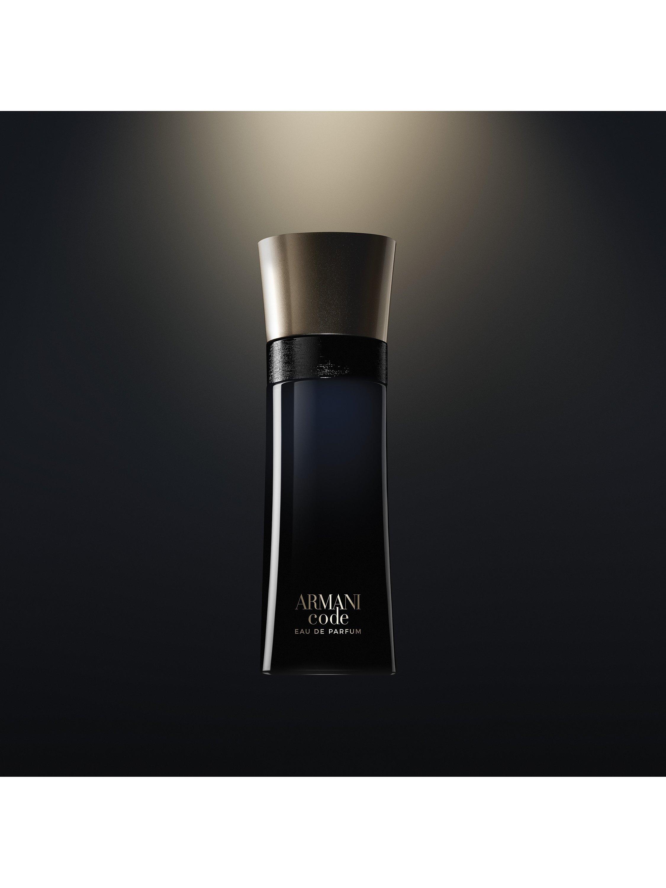 The bottle: The Armani Code Eau de Parfum bottle boasts the same purity of line that is a signature of the Armani Code collection. A nod to this fragrance’s striking statement, the iconic glossy black bottle is accented with a sleek, golden cap and gold lettering. In the tradition of the Armani Code bottles, a textured grain detail at the bottle’s neck recalls the classically refined design of a tuxedo’s cummerbund. The bottle’s gilded details evoke Armani Code Eau de Parfum’s elegant intensity creating an enticing visual contrast between light and shadow.
