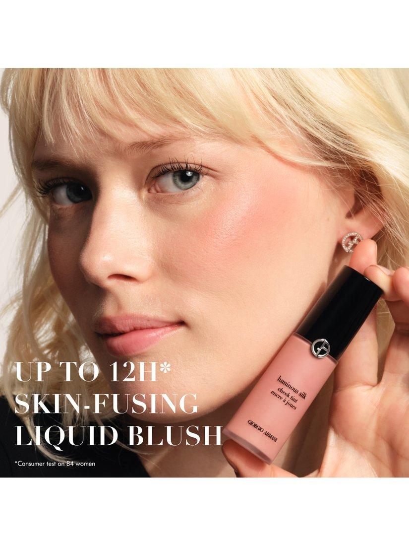 The technology combines intense colour with lightweight blendability inspired by Armani lipstick formulation. The unique texture stretches into an ultra-thin film and builds infinitely from a natural to a more intense flush, lasting up to 12h*.