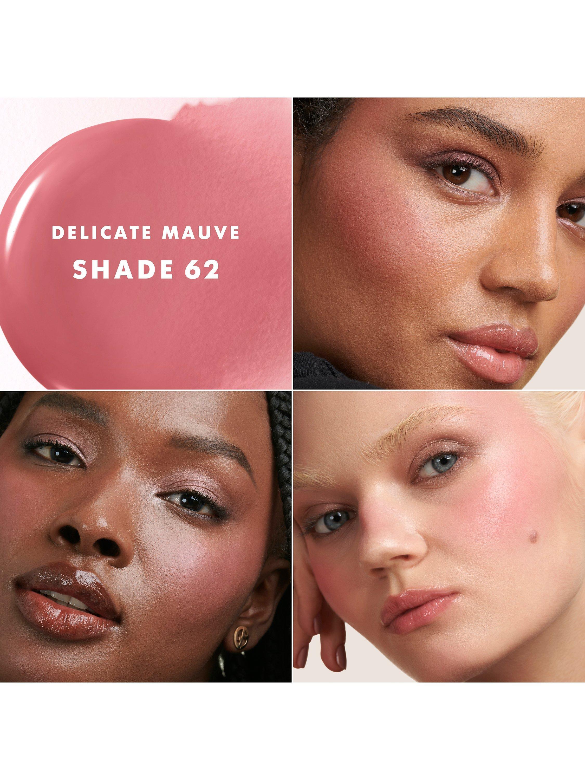 The technology combines intense colour with lightweight blendability inspired by Armani lipstick formulation. The unique texture stretches into an ultra-thin film and builds infinitely from a natural to more intense flush, lasting up to 12h*.