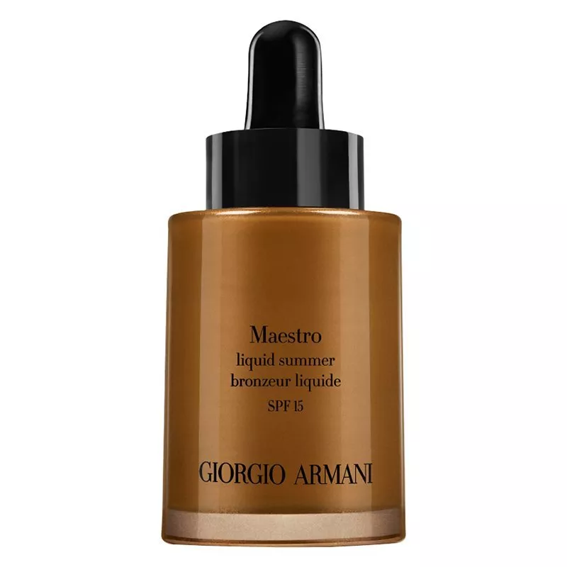 - 30ml After selling out in 2014, Giorgio Armani Beauty reintroduces Maestro Sun, a new tan-enhancing makeup collection with bronze summer shades and sheer textures for the ultimate sun kissed look. Maestro Liquid Summer fuses golden micro-pearls with Maestro technology blending effortlessly with your skin for a naturally bronzed finish. Use a brush to apply as a base across the entire face, before building up intensity when contouring. The supremely diverse Fluid Sheers are designed to highlig