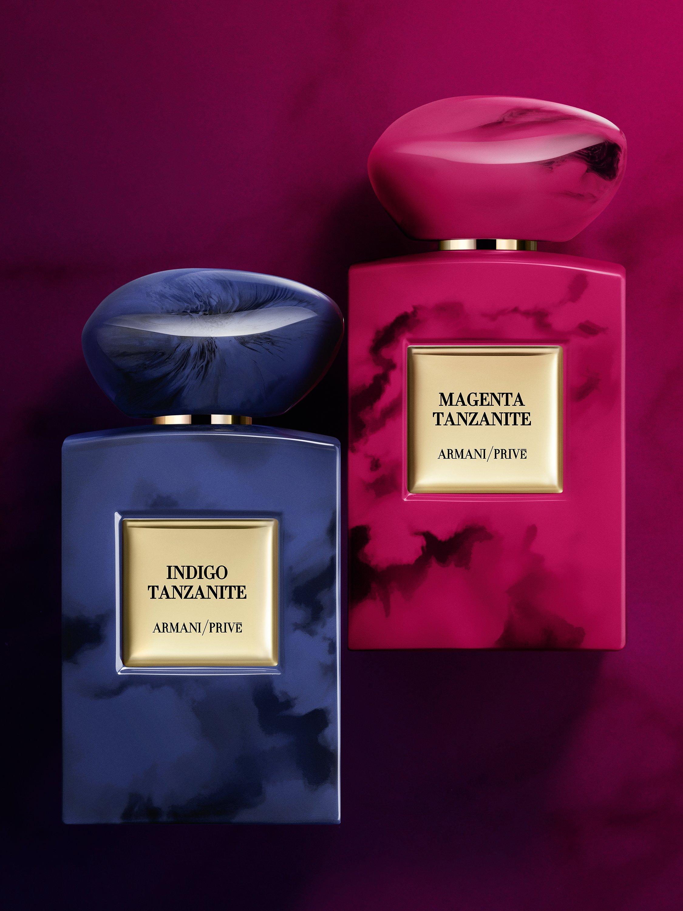 Discover Armani/Privé's new mesmerising haute couture fragrances, Indigo Tanzanite and Magenta Tanzanite, a tribute to the spectacular, vivid colours of Africa.