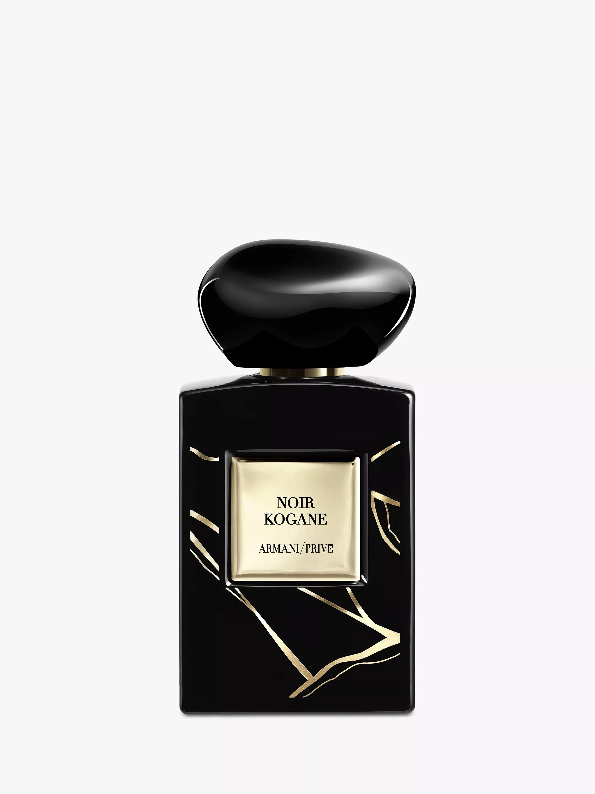Discover Armani/Privé's new Les Terres Précieuses Haute Couture fragrance, Noir Kogane, an earthy and leathery mysterious vetiver, enhanced by warm and spicy saffron notes for a sensual, smoky and woody fragrance, embellished with an organic-looking gold pattern that recalls the gold embellishment in the Kintsugi art.