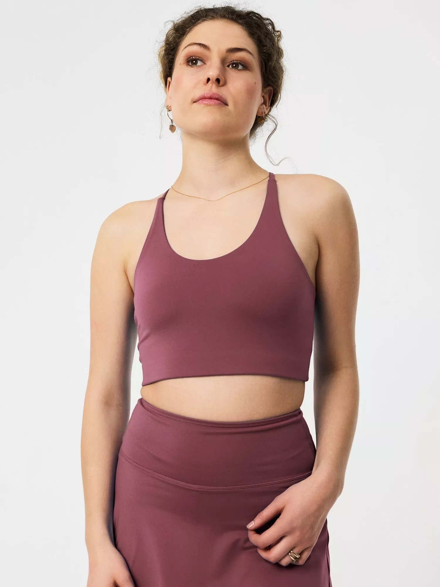 An ultra-lightweight and breathable sports bra made for low-impact movement. The seamless design includes thin straps and is double-lined and sheer-proof. With a buttery soft hand feel and brushed matte finish, it's also sweat-wicking, quick-drying and has a UPF 50+ quality.