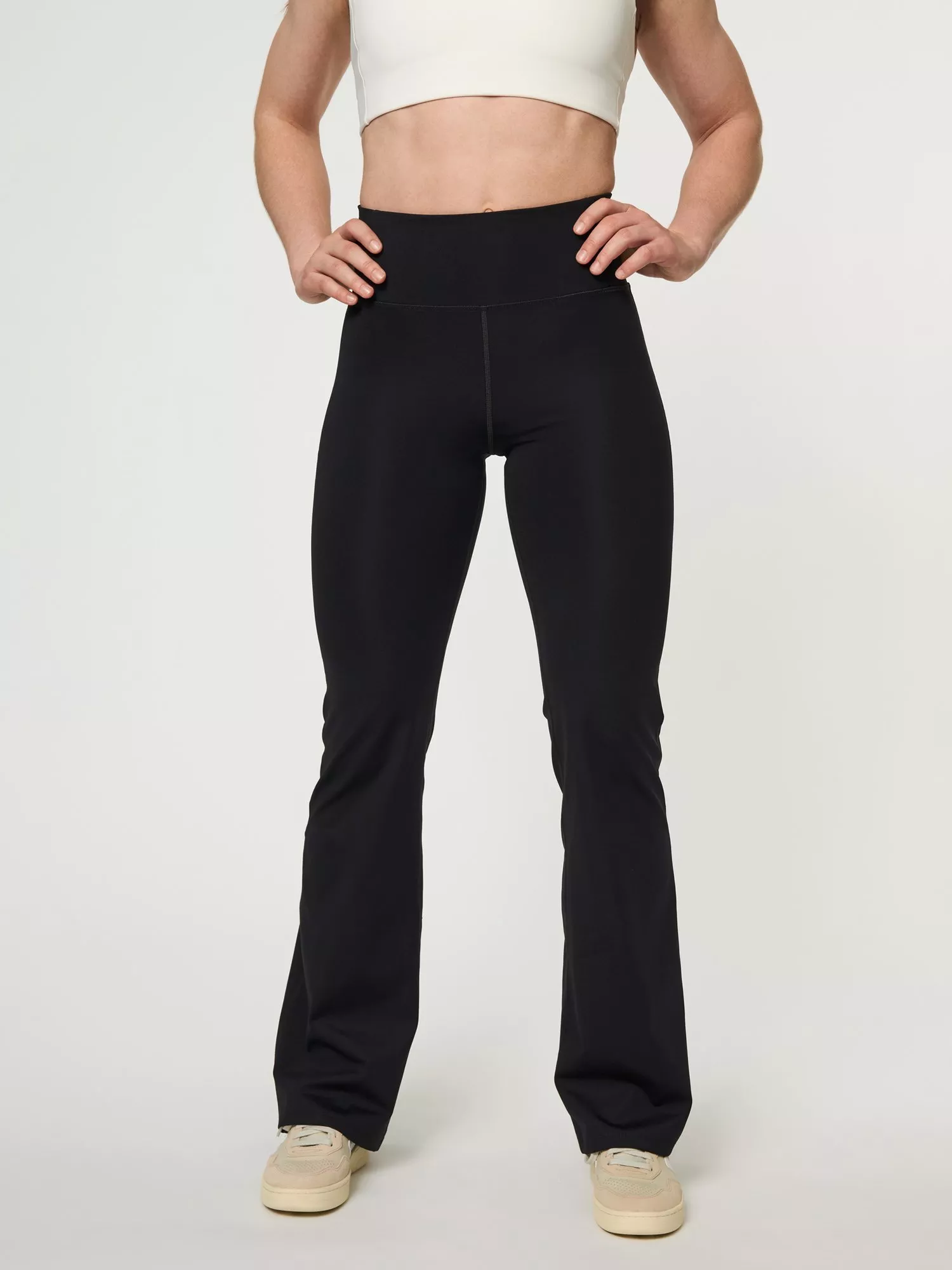 High-rise compressive flare leggings with double side pockets and seams that contour your shape.