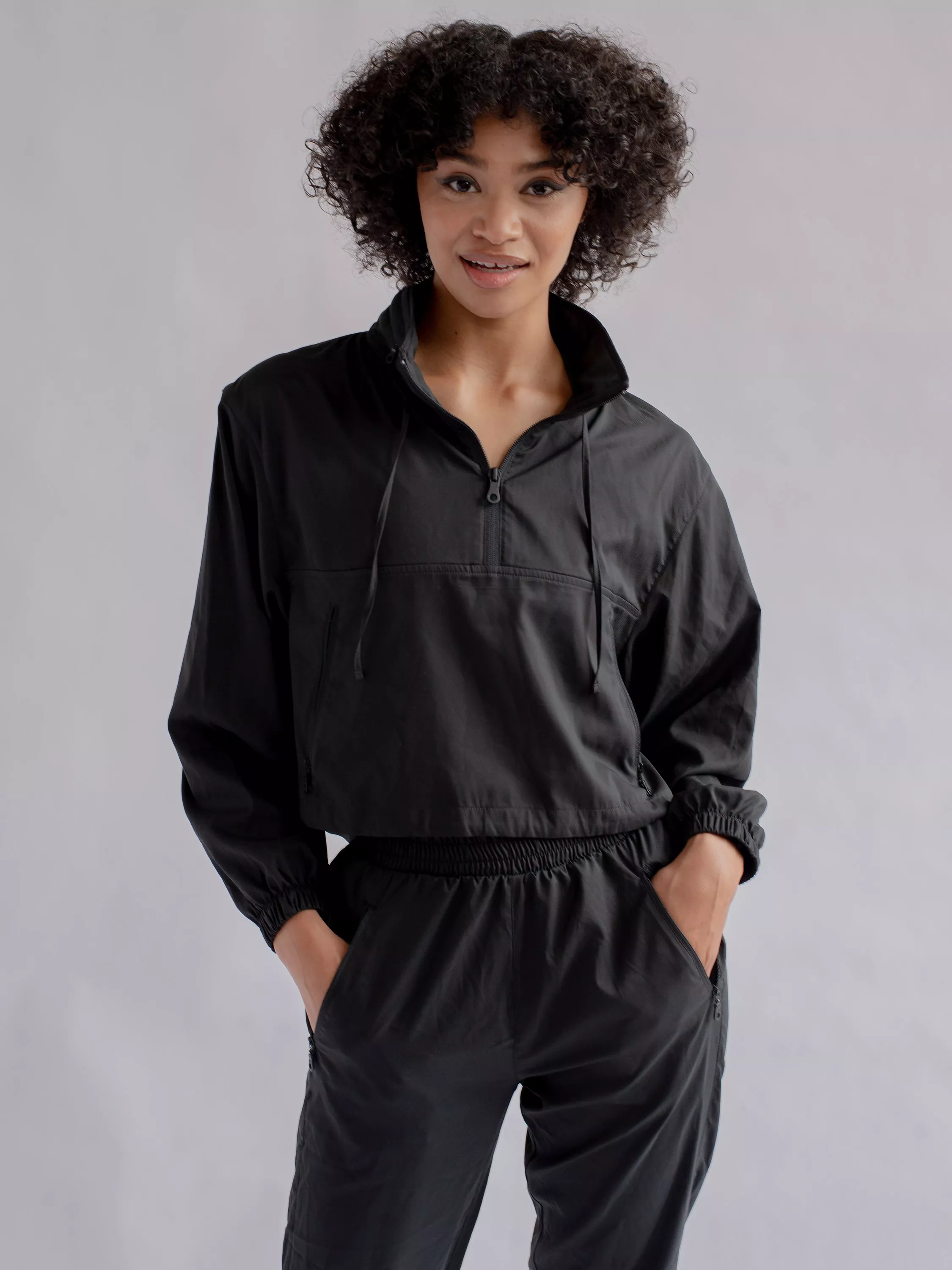 Girlfriend CollectiveHummingbird Half Zip Windbreaker, Black