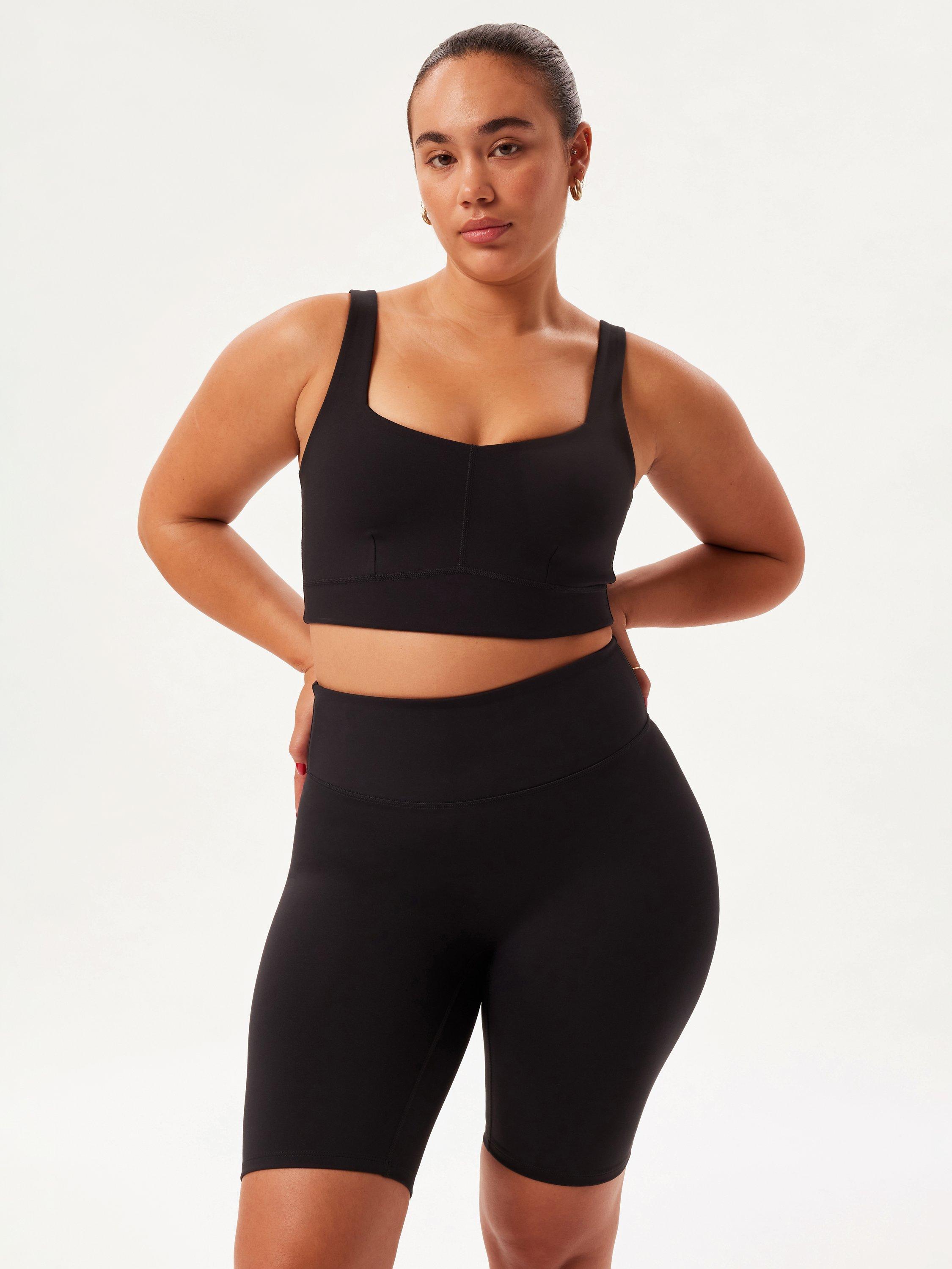 Partially made from recycled plastic bottles, the heavyweight, spongy fabric of this sports bra provides medium compression. Designed with a supportive elastic band at the bottom hem, seam details at centre front and under bust, plus supportive wide elastic straps with adjustable sliders. Peached for softness with a subtle matte sheen, this moisture-wicking bra has soft four-way stretch designed to mould to your body.