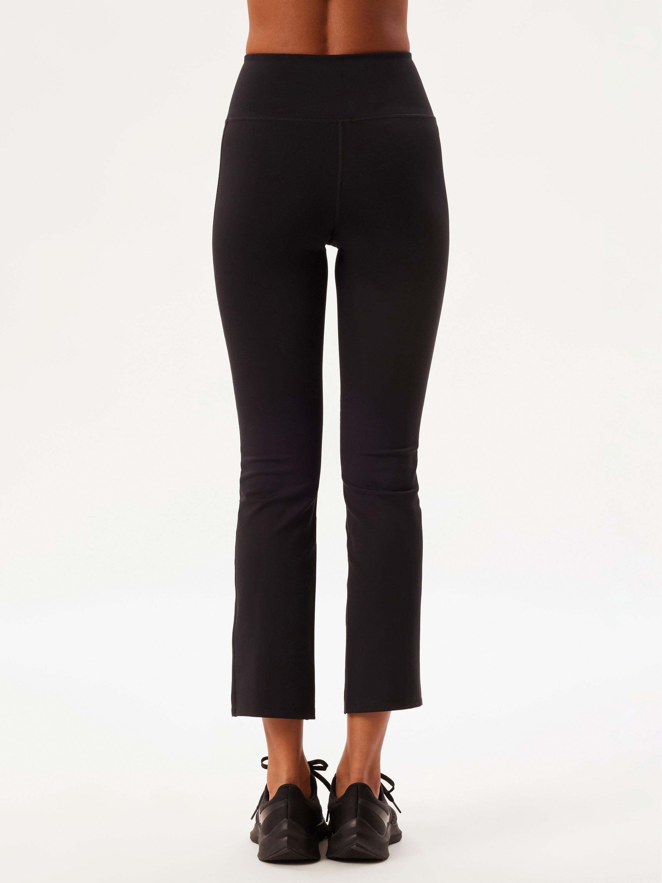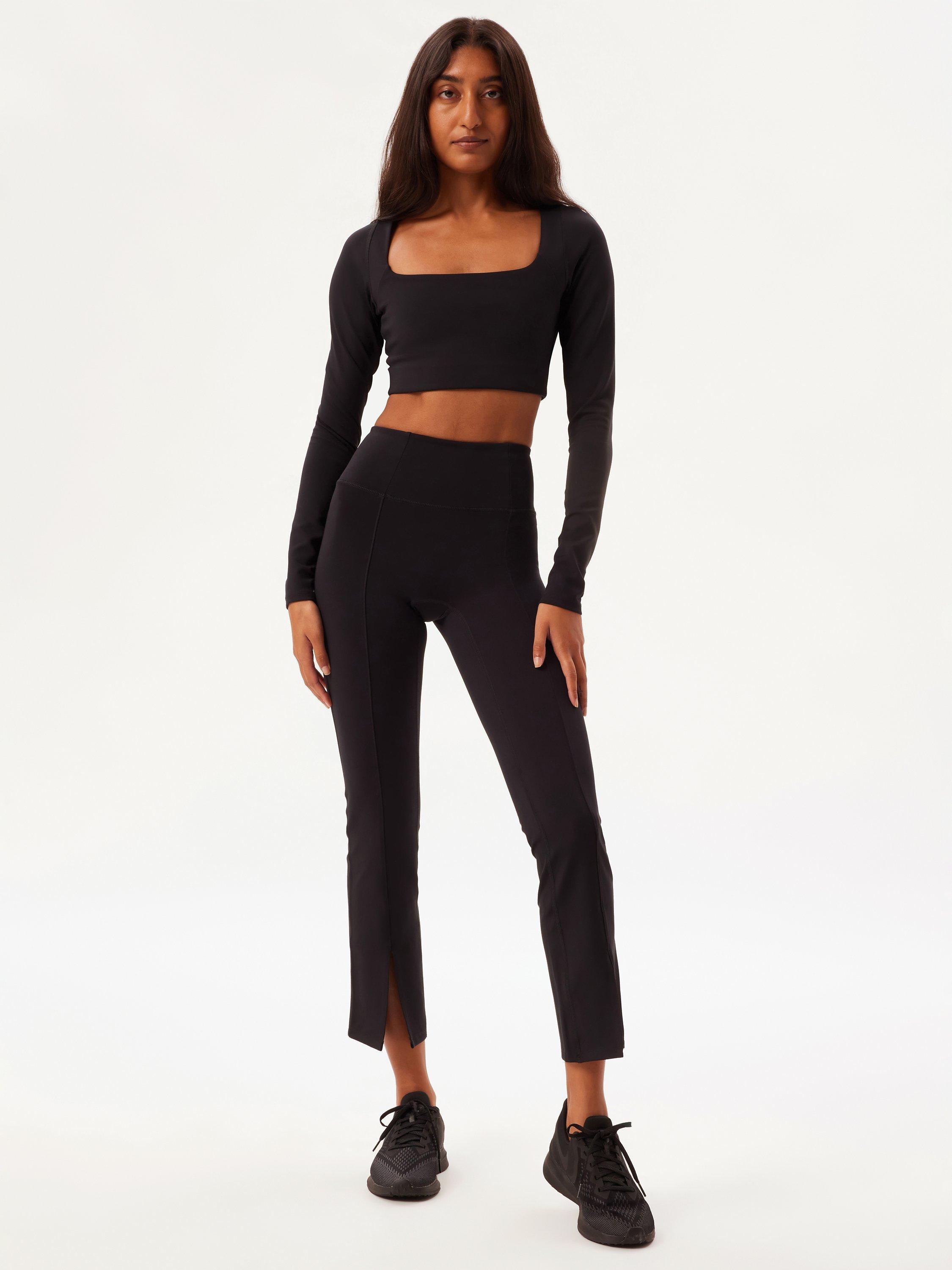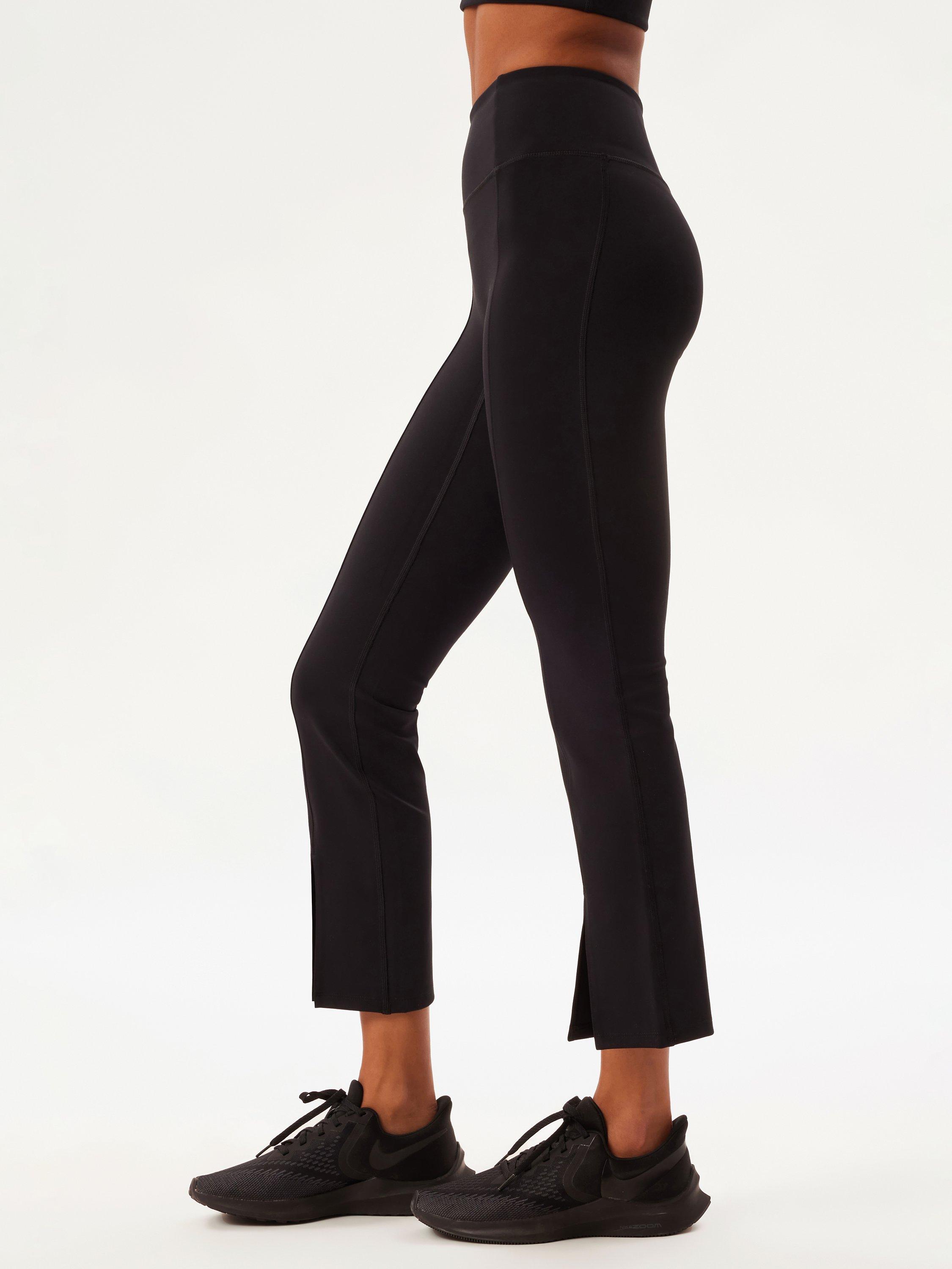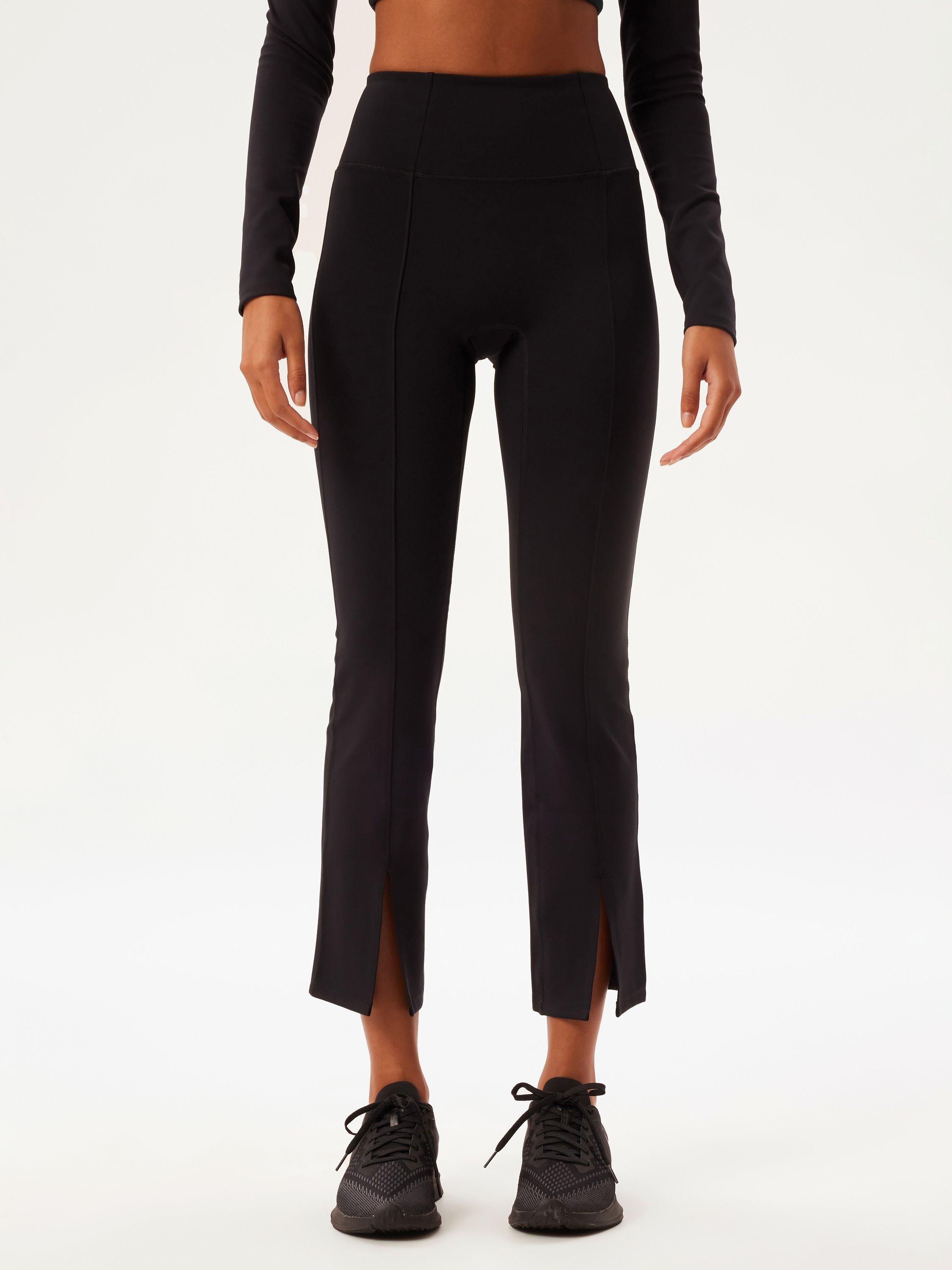Made with seams down the centre of the legs with a split detail. Fitted through the hip and thighs, these leggings give way to a subtle cropped flare shape with a subtle matte sheen for an extra luxe look.
