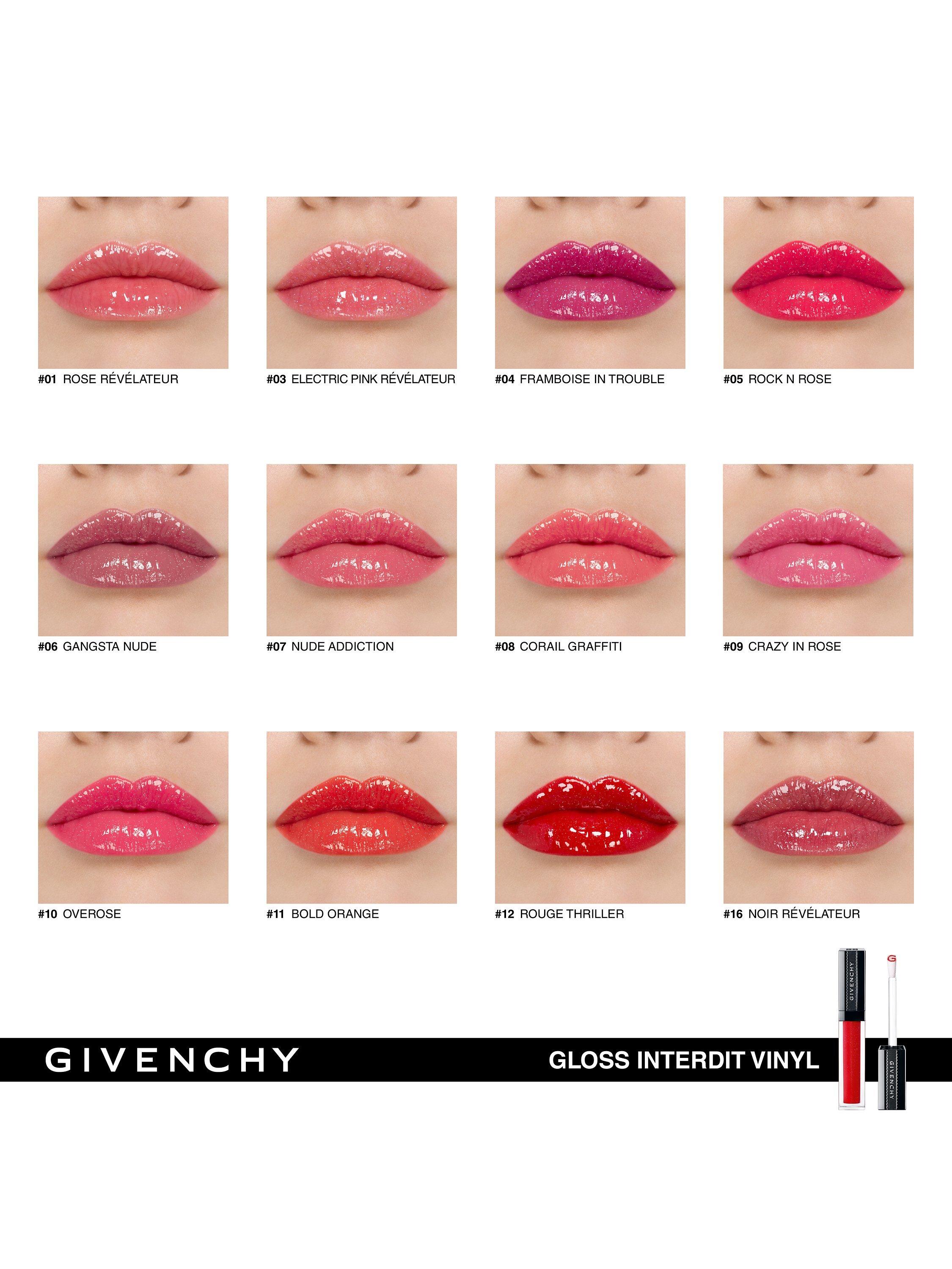 Under the artistic direction of Nicolas Degennes, Givenchy creates Gloss Interdit Vinyl, a gloss with medium coverage for coloured, high shine and plumped up lips.