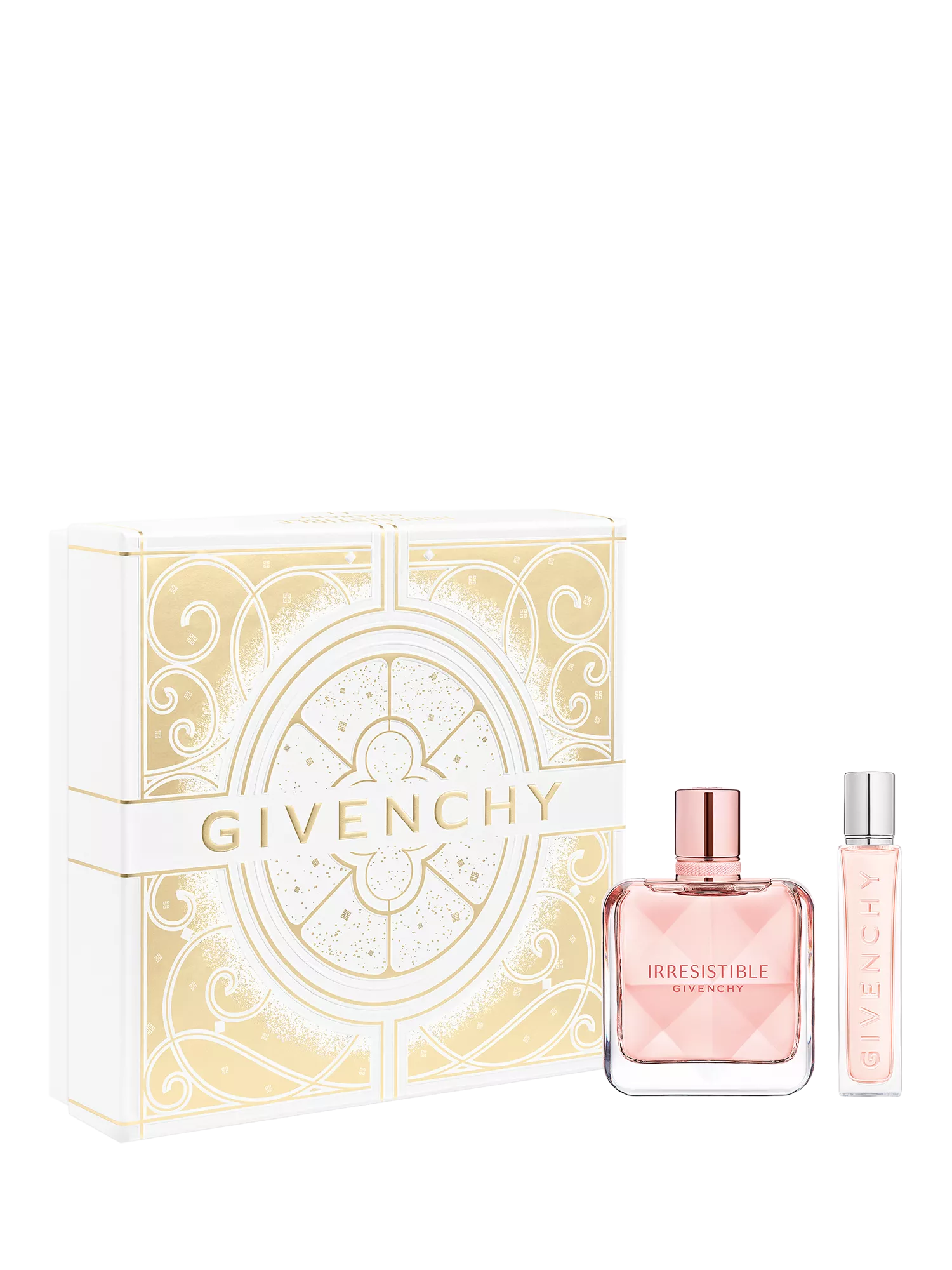 Gift the unexpected with a Givenchy women's fragrance set composed of an Irresistible Eau de Parfum and refillable travel spray.