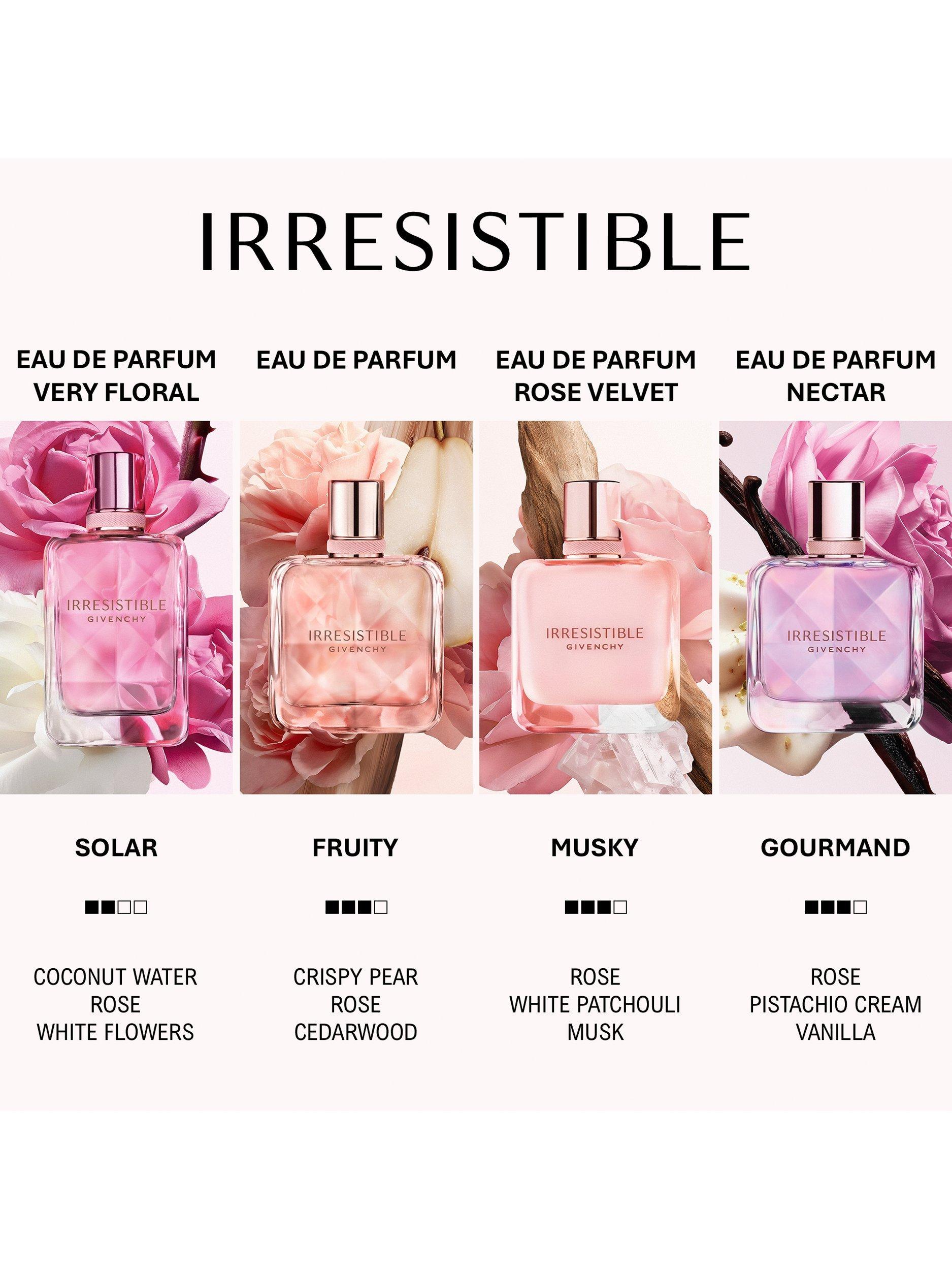 Irresistible delight: Irresistible Nectar celebrates a joyful, vibrant, and free-spirited femininity. Infused with the freshness of Neroli Essence, the signature Rose of Irresistible blends with a Pistachio Cream accord and enveloping Vanilla Wood to create a captivating, long-lasting trail.
