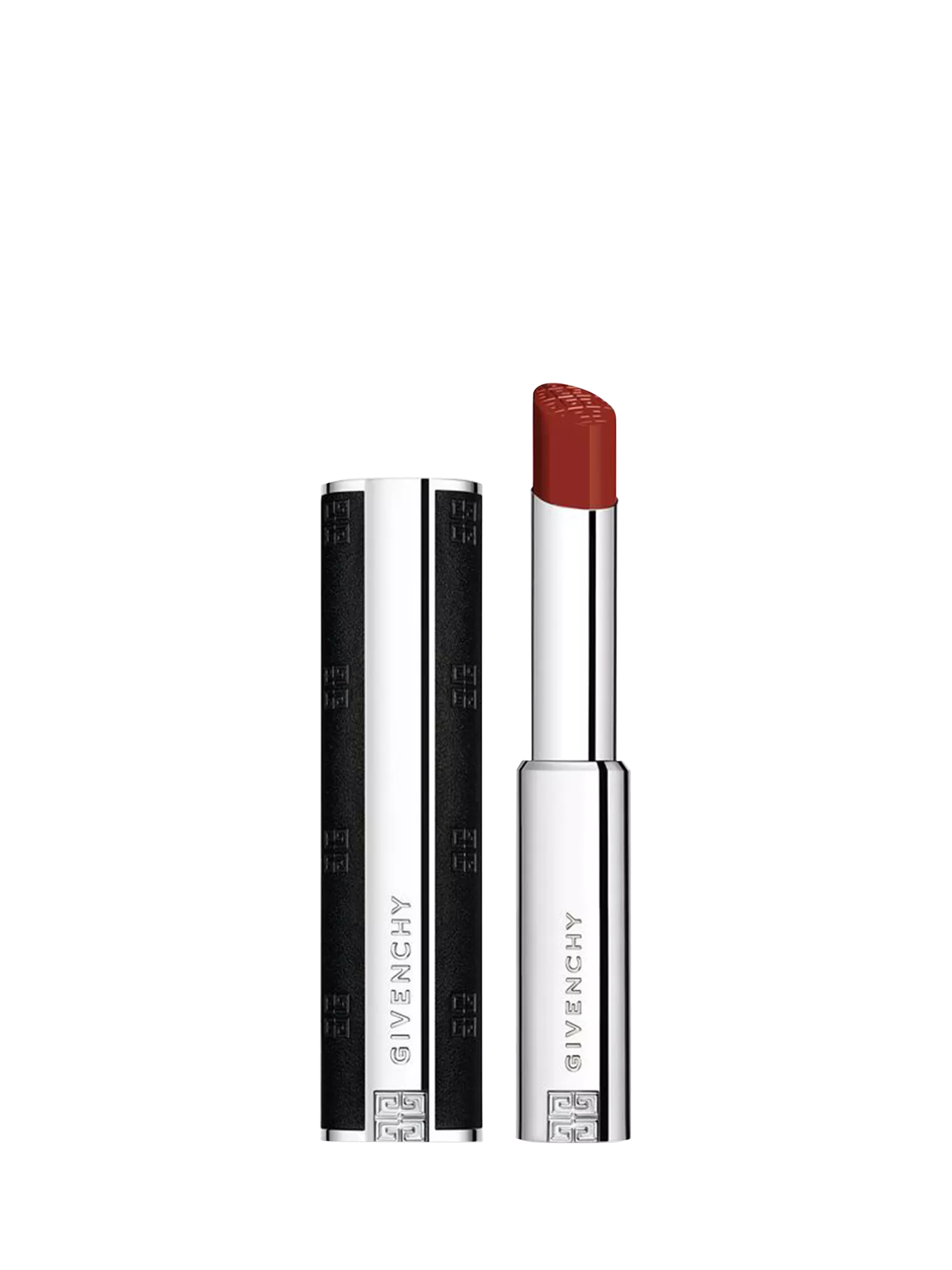 A couture accessory: Le Rouge Interdit Satin features an elegant design with a new sleeker and pocket-sized silhouette. Made with genuine leather, the case is adorned with the iconic 4G monogram and a refined silver-toned edges. A true Givenchy couture accessory, the lipstick bullet is also delicately stamped with the 4G logo.
