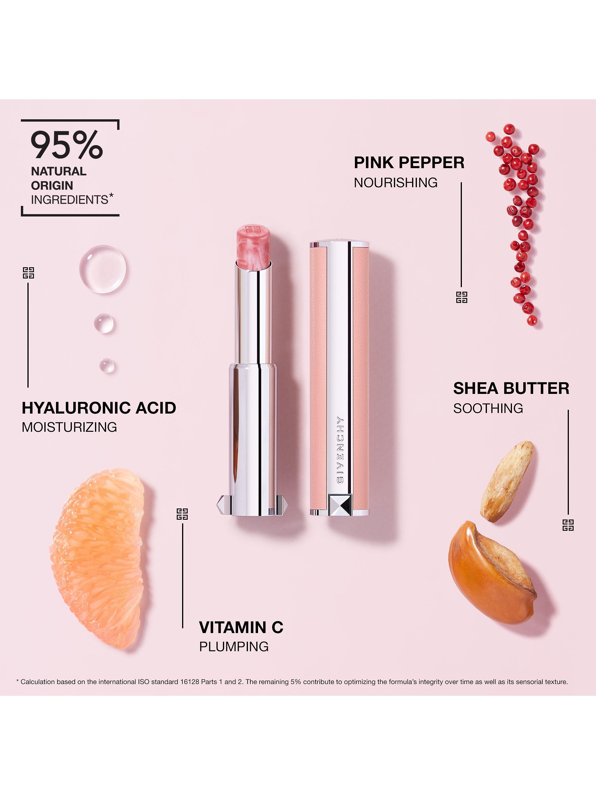 Powered by rose oil, hyaluronic acid, Vitamin C, pink pepper and shea butter, the formula melts into the skin for a feeling of ultimate comfort. Boosting lips with 24-hour hydration, Rose Perfecto nourishes, smoothes and plumps for a healthy glow after day.