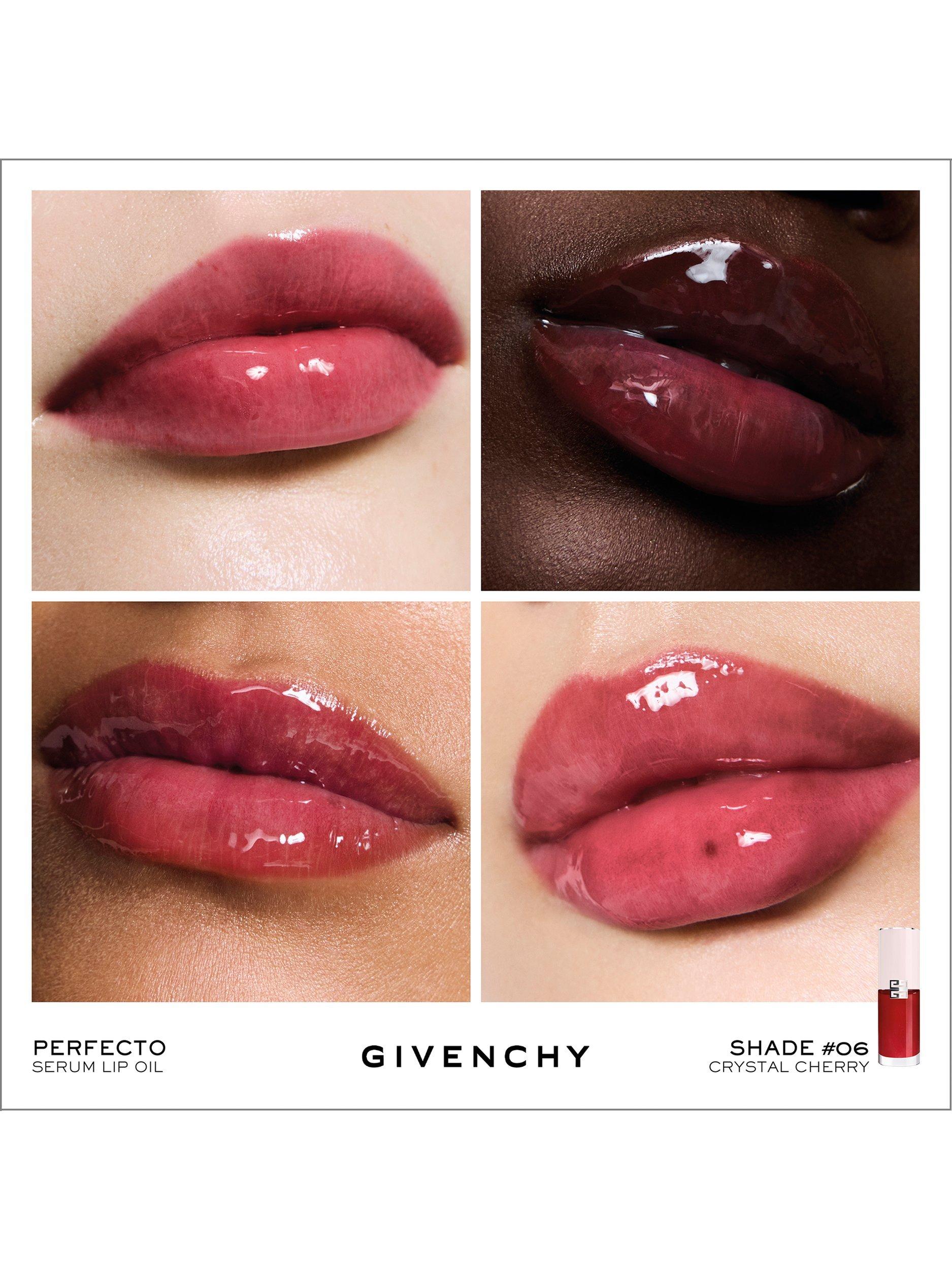 Rose Perfecto Serum Lip Oil by Givenchy is a hybrid serum lip oil that offers a 12h plumping effect*, 12h shine* and 24h hydration*. With a 99% skincare-based formula**, it treats the lips like a serum to experience 12h smoothing*, 12h comfort*** and 6h softness***.