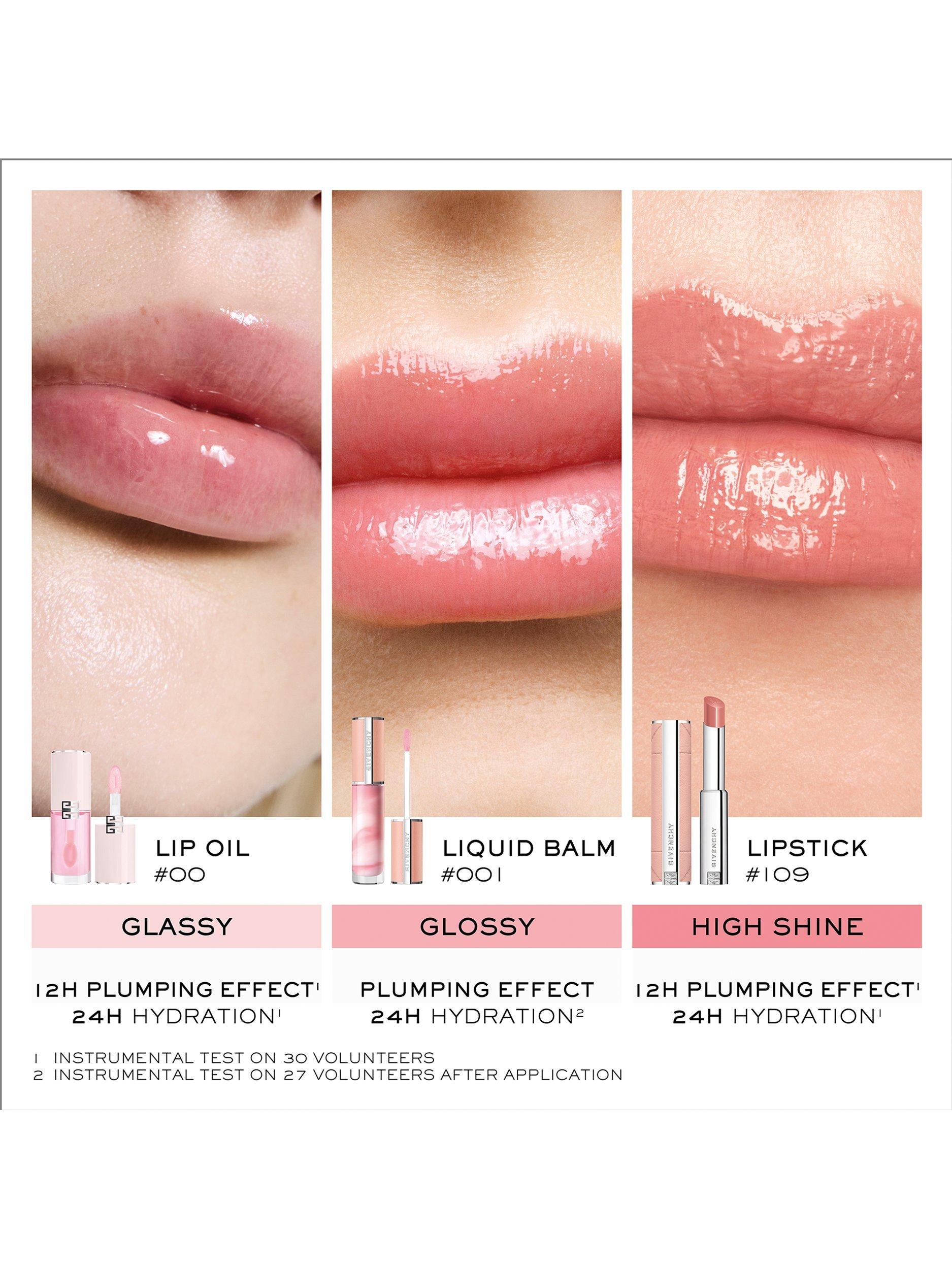 Rose Perfecto Serum Lip Oil by Givenchy is a hybrid serum lip oil that offers a 12h plumping effect*, 12h shine* and 24h hydration*. With a 99% skincare-based formula**, it treats the lips like a serum to experience 12h smoothing*, 12h comfort*** and 6h softness***.