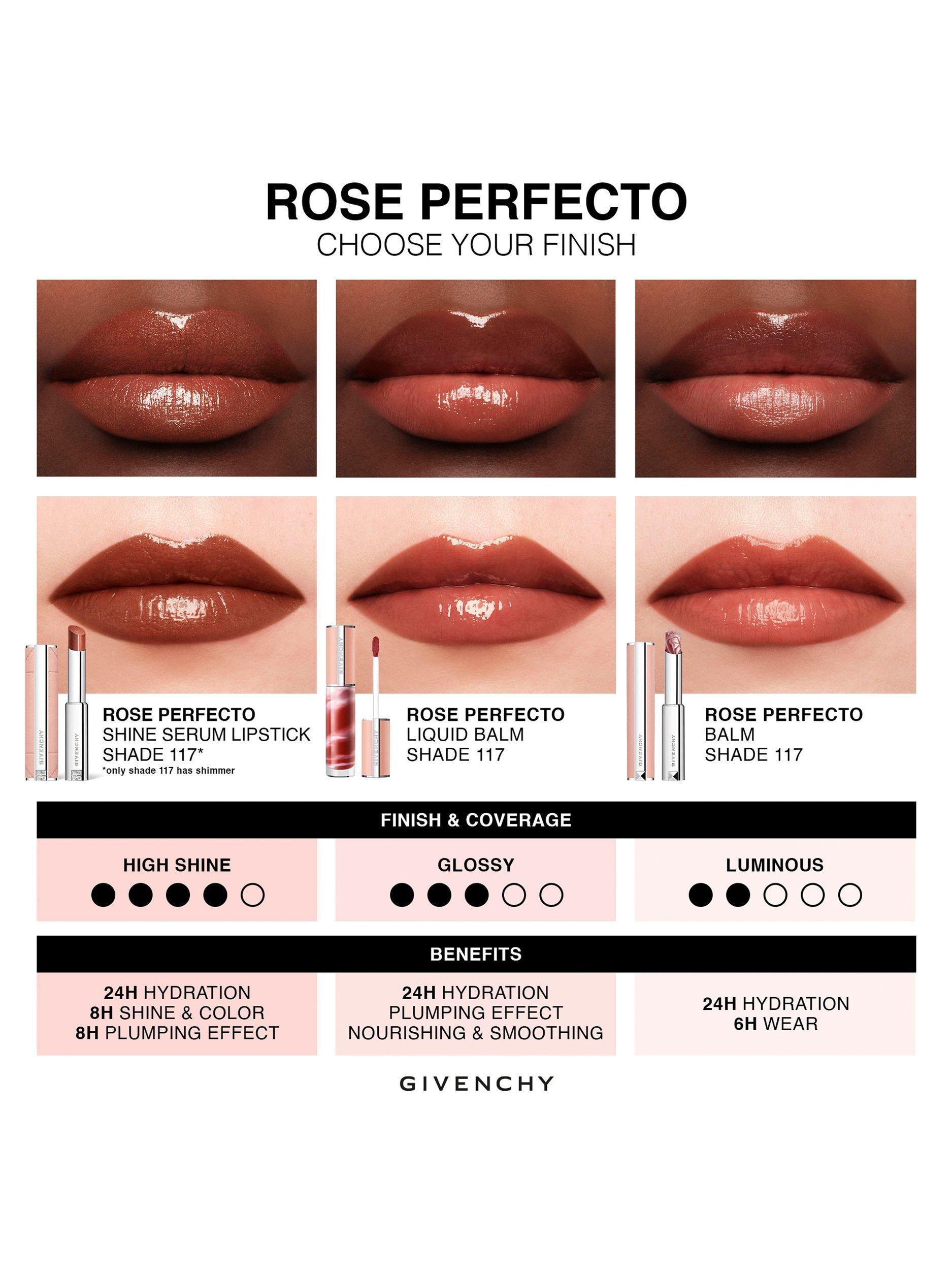 Discover Rose Perfecto Shine Serum Lipstick, the new hybrid care and colour lipstick with an ultra-shiny finish. Intense colour meets a potent Plump Complex featuring hyaluronic acid and vitamin C, offering 8 hours plumping care* and 24-hour hydration* for visibly beautified lips. The melting oil-in-stick texture envelops lips in comfort and vibrant colour in just one stroke.