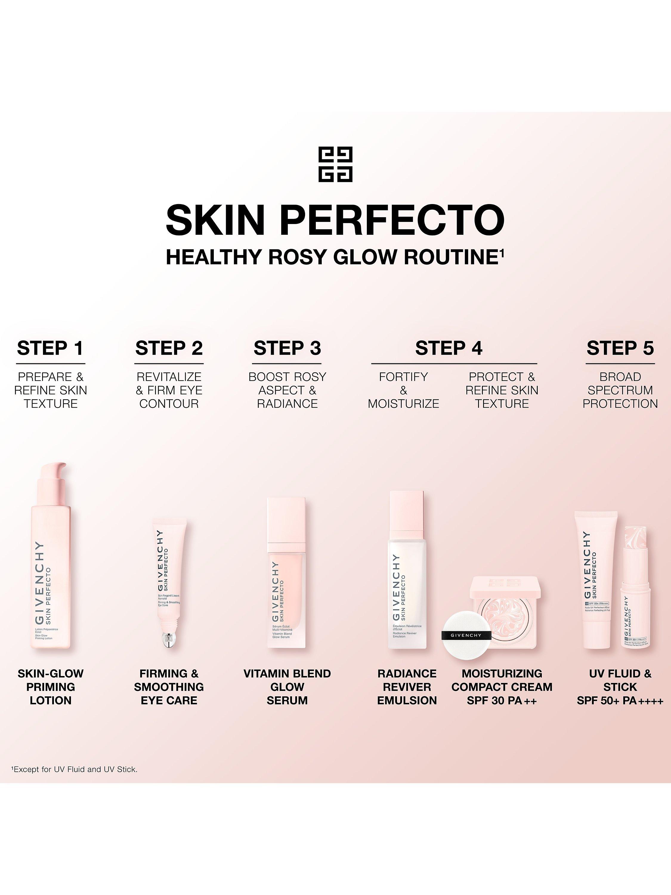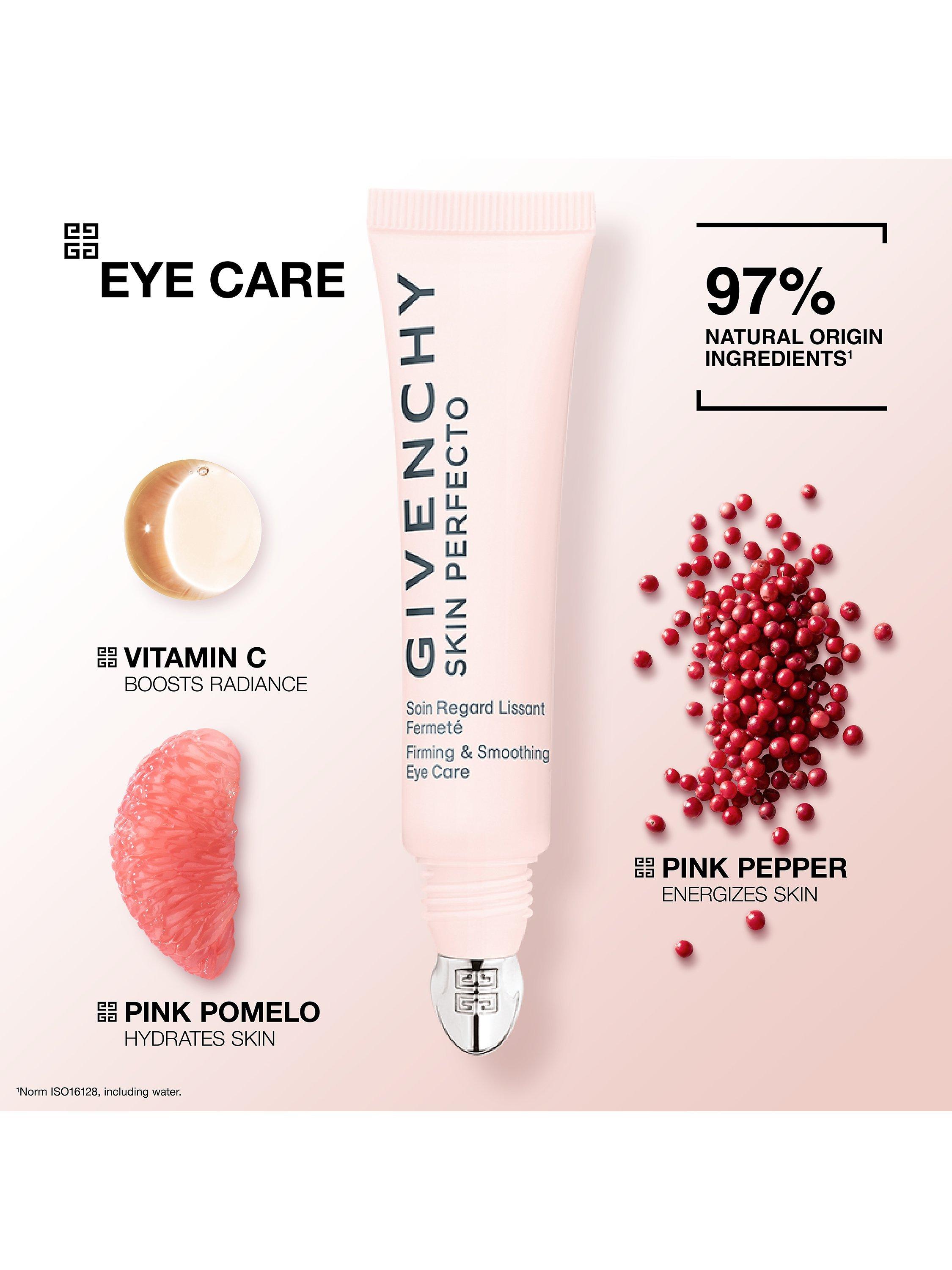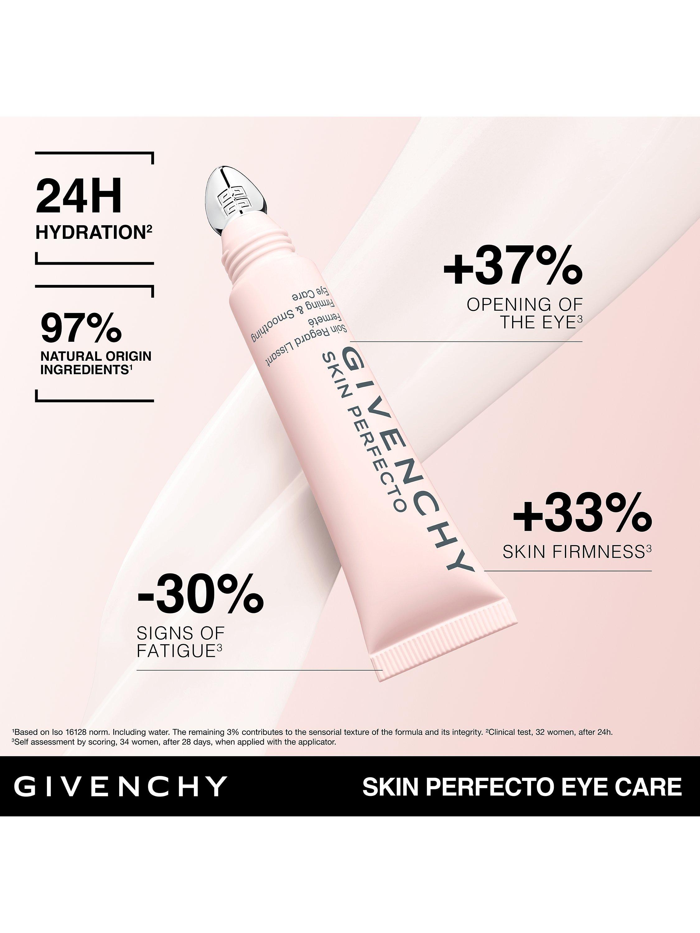 Your best ally to counteract these visible signs of fatigue around the eye zone? Givenchy’s Skin Perfecto Firming and Smoothing Eye Care contributes to reducing skin ageing and boosting skin vitality. This lightweight pearly texture provides 360° eye contour improvement¹ and 24-hour hydration².