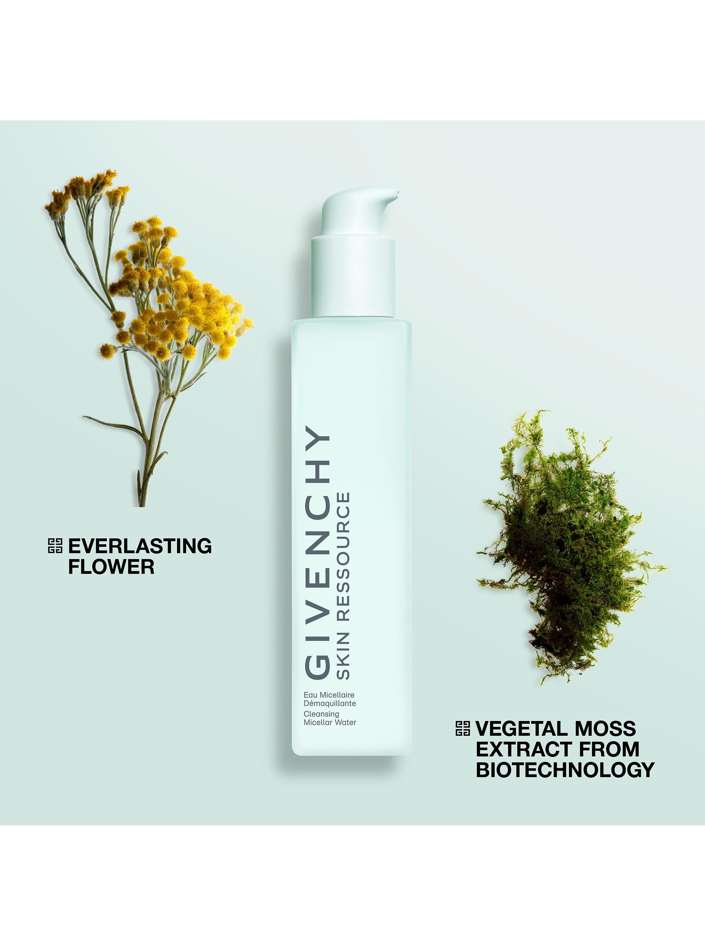 Sensoriality: Surround your senses in the Givenchy Skin Ressource skincare experience. This refreshing and lightweight micellar water infused with a resourcing fresh and floral fragrance, envelops skin in a relaxing polysensorial sensation. Instantly energised, your skin is comforted and its hydration preserved.
