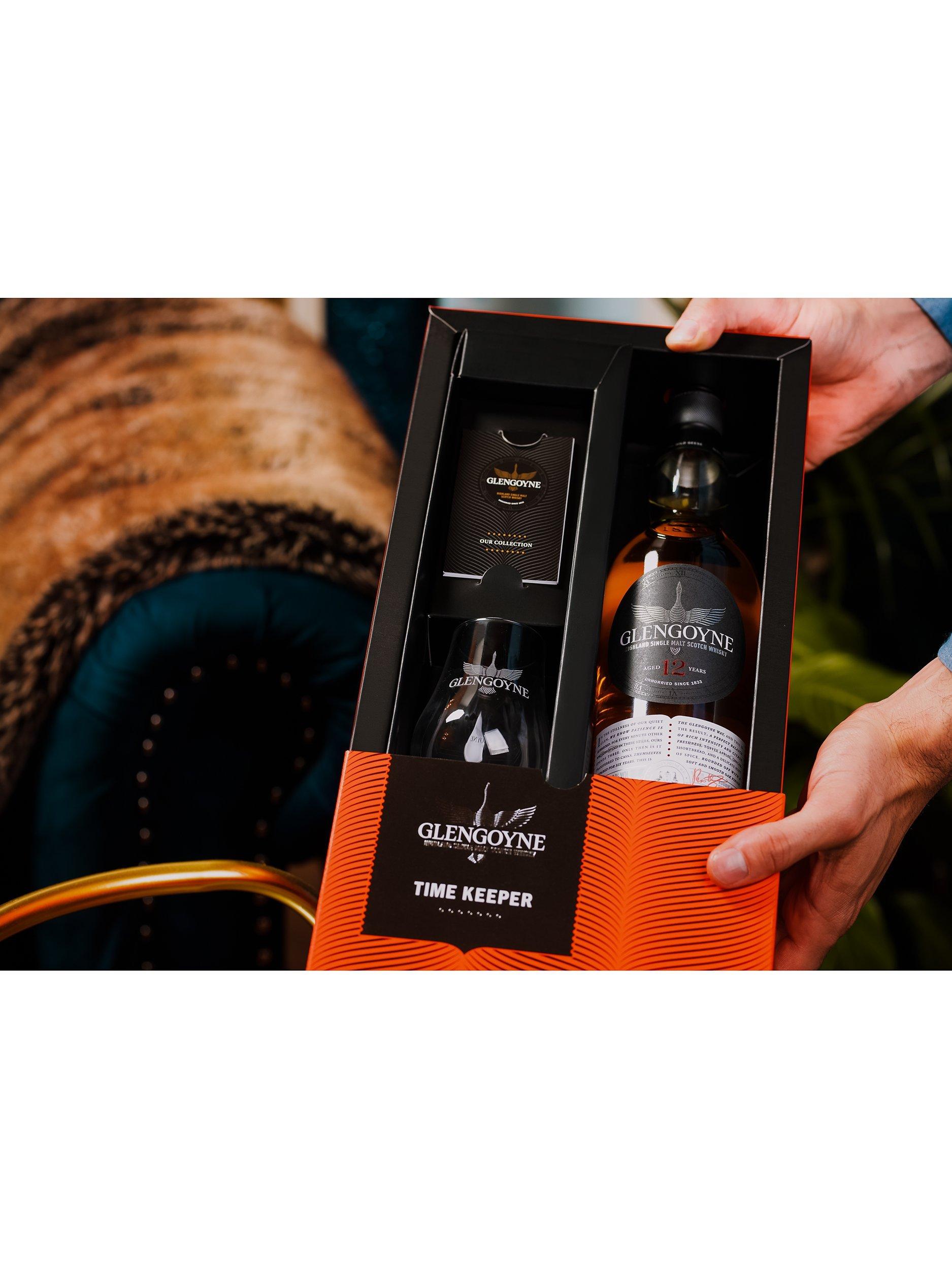 Glengoyne Time Keeper 12-year-old whisky with tasting glass.