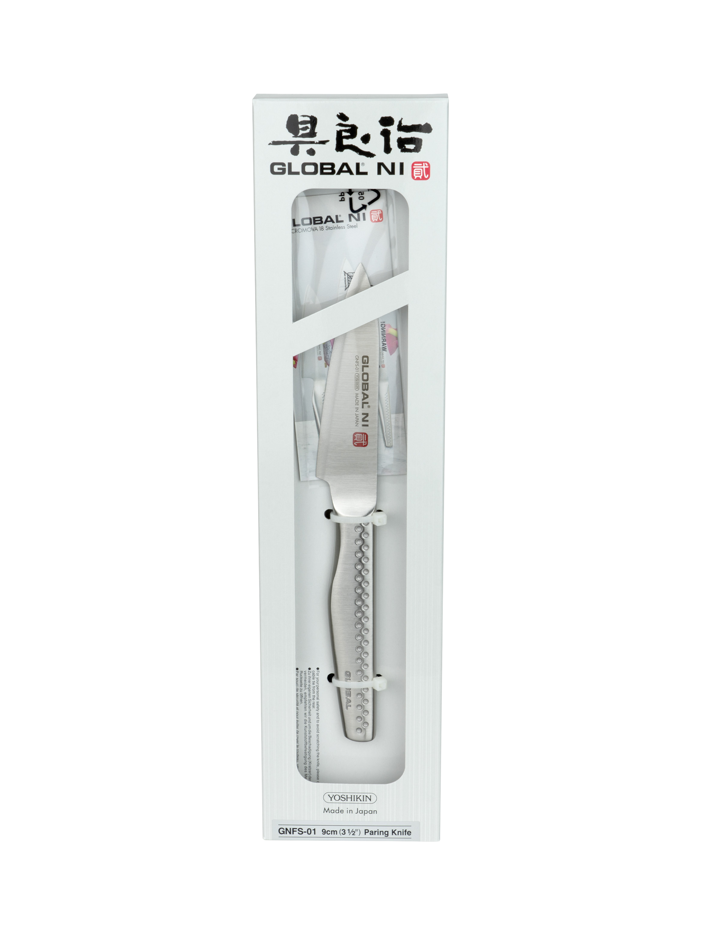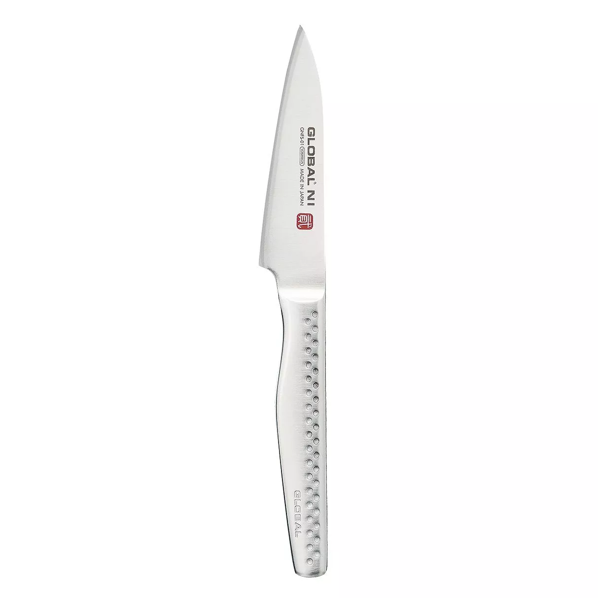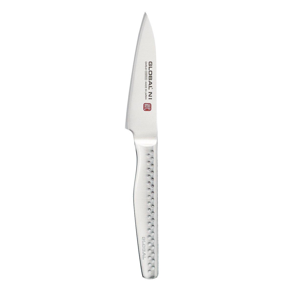 The Global NI knives have a thicker 2.4mm blade, with a razor sharp finish, sleek design and are lightweight and perfectly balanced. The knives have a longer textured handle, designed for comfort and ease of use. The paring knife is a small all purpose knife with a sharp point, ideal for intricate jobs: peeling, de-seeding and slicing.