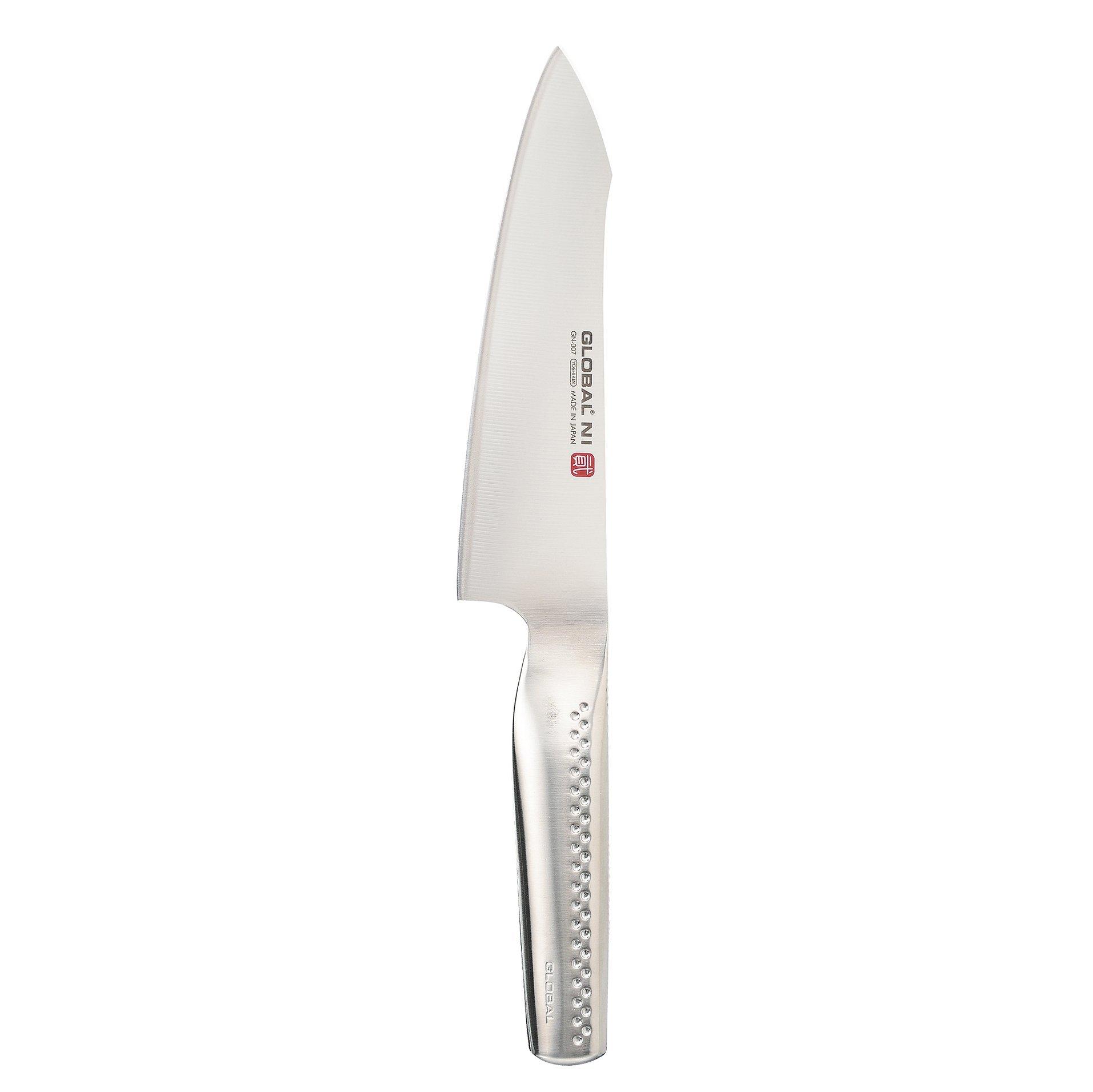 The Global NI knives have a thicker 2.4mm blade, with a razor sharp finish, sleek design and are lightweight and perfectly balanced. The knives have a longer textured handle, designed for comfort and ease of use. The santoku knife is perfect for fine slicing, dicing and chopping all types of food.