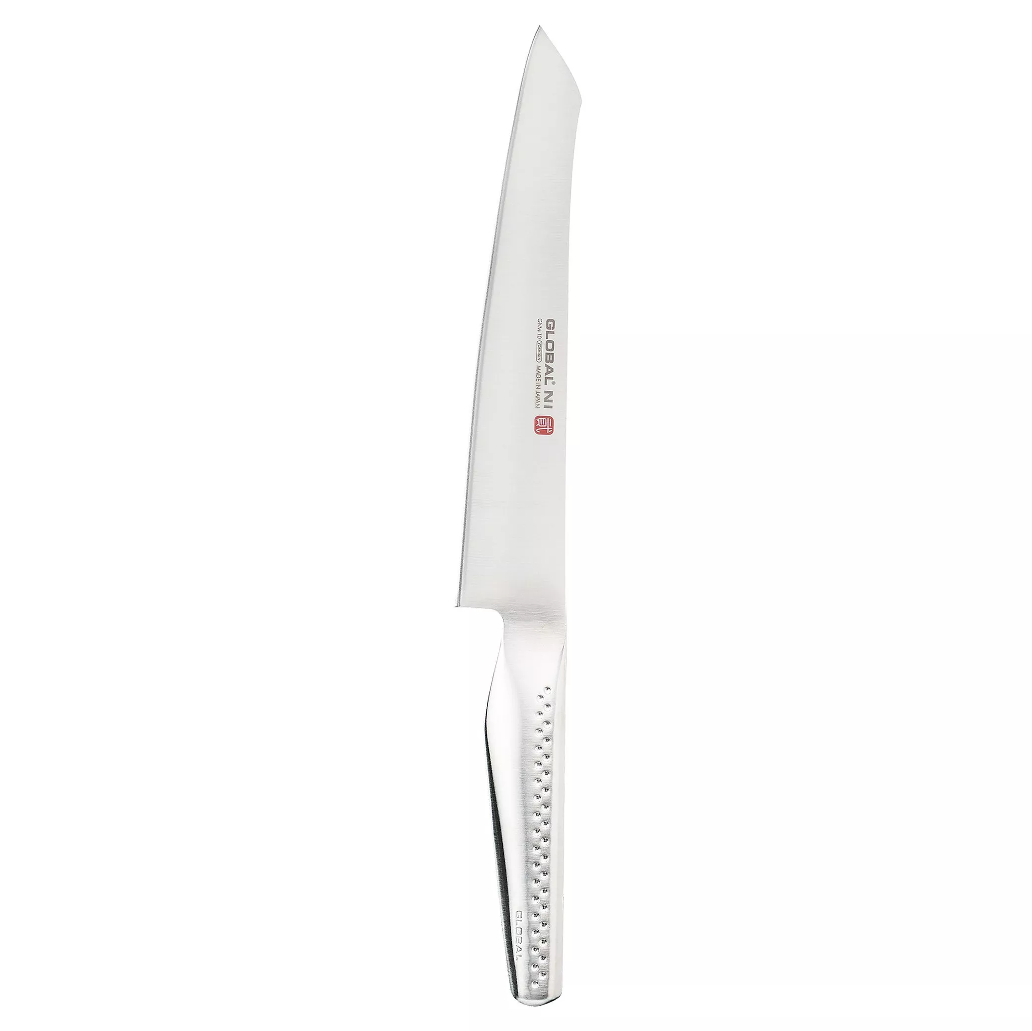 The Global NI knives have a thicker 2.4mm blade, with a razor sharp finish, sleek design and are lightweight and perfectly balanced. The knives have a longer textured handle, designed for comfort and ease of use. The slicer has a long narrow blade, perfect for slicing all types of meat.