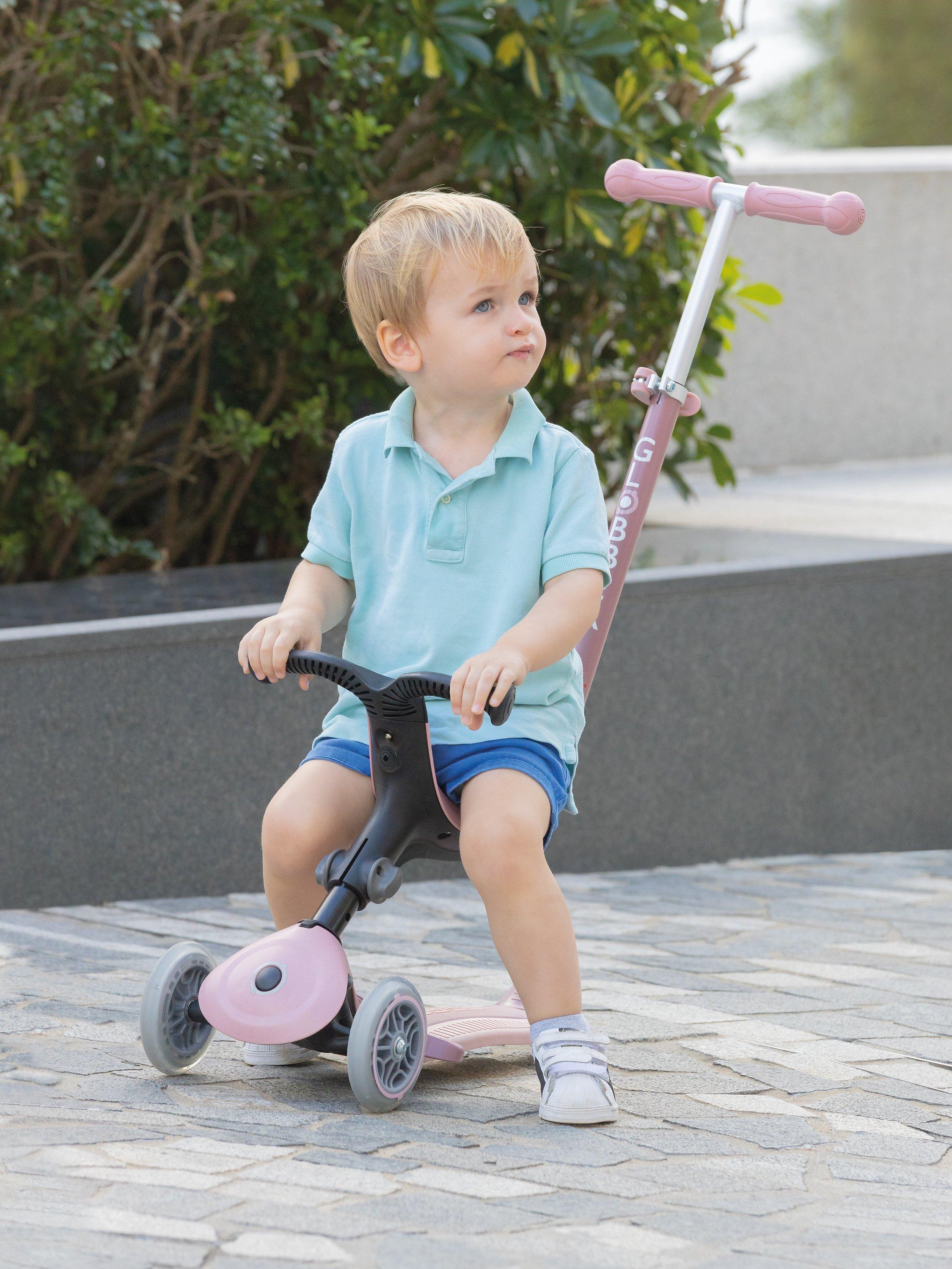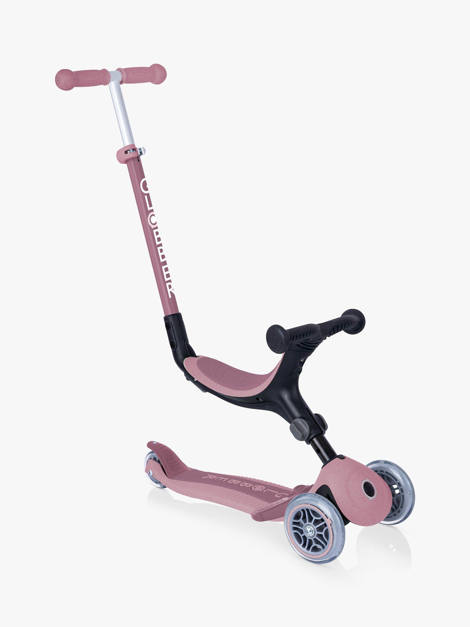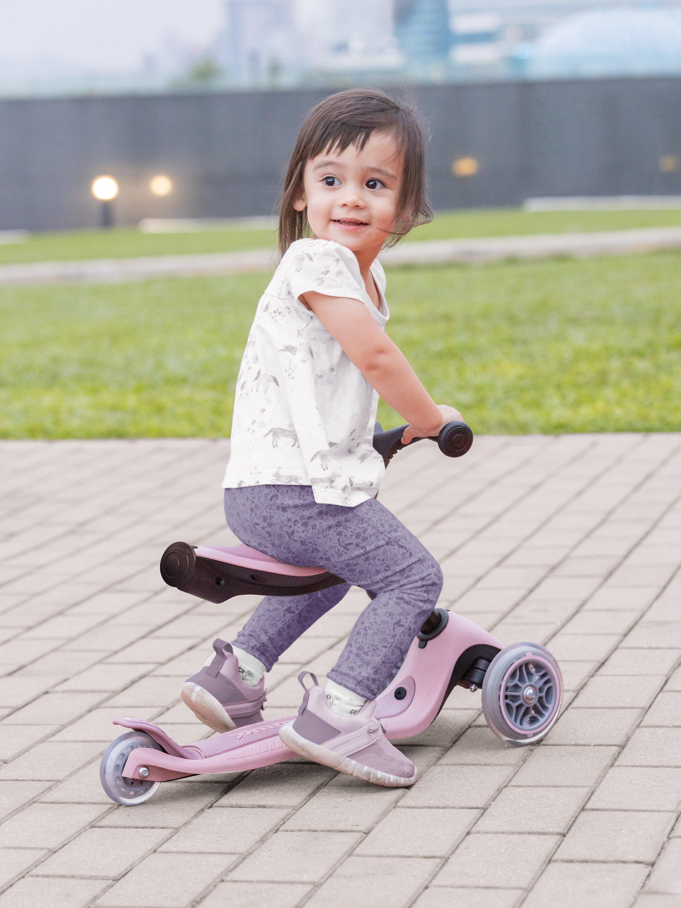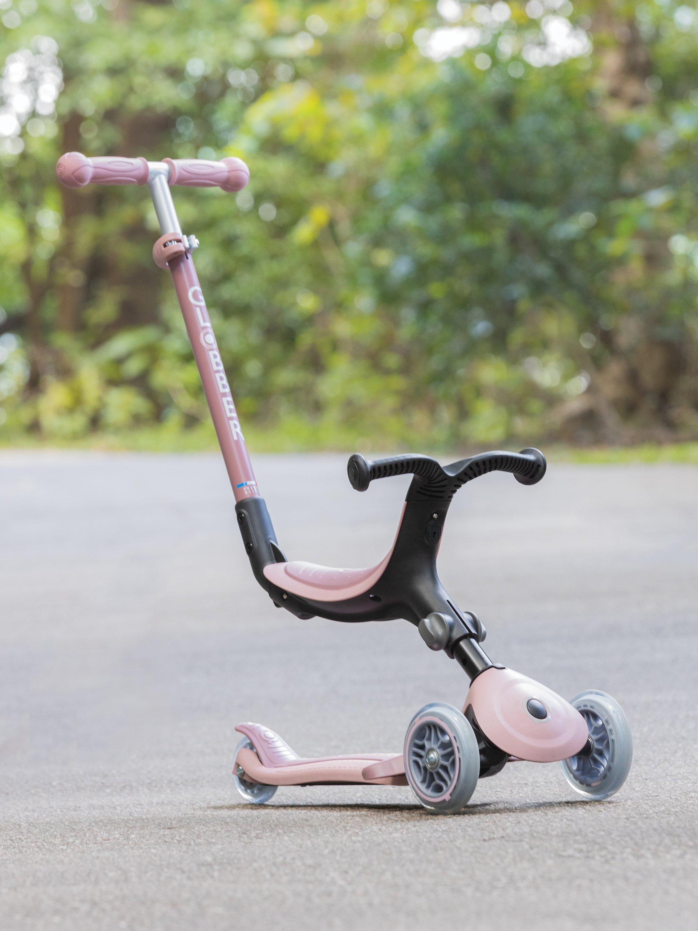Featuring a 100% tool-less design and a 3-height adjustable T-bar, it'll adapt to their development easily, transforming into a ride-on, walking bike and scooter. Ride-on and walking bike modes are perfect for 15-36-month-olds, while the scooter mode is ideal for 3-7+-year-olds.