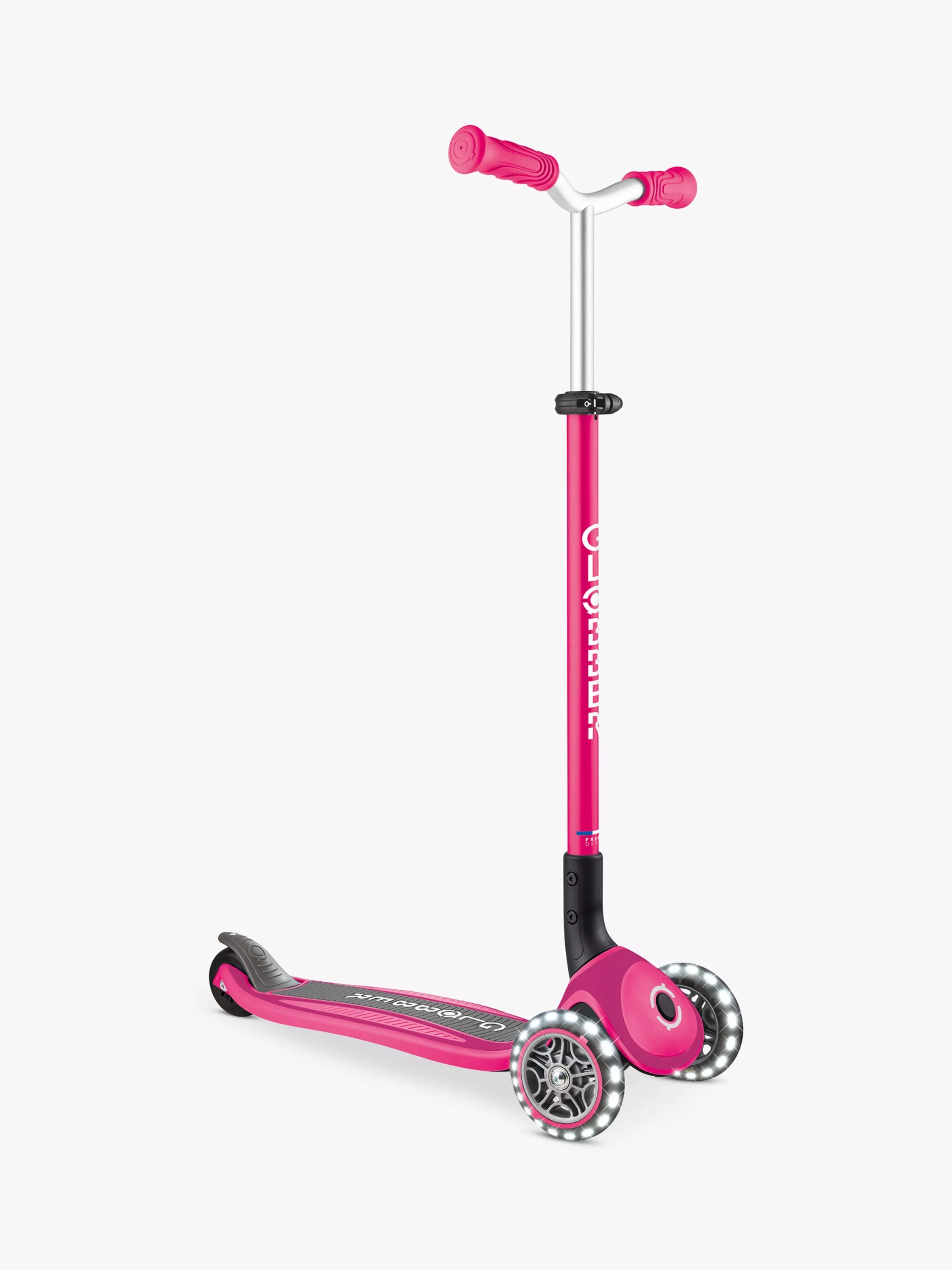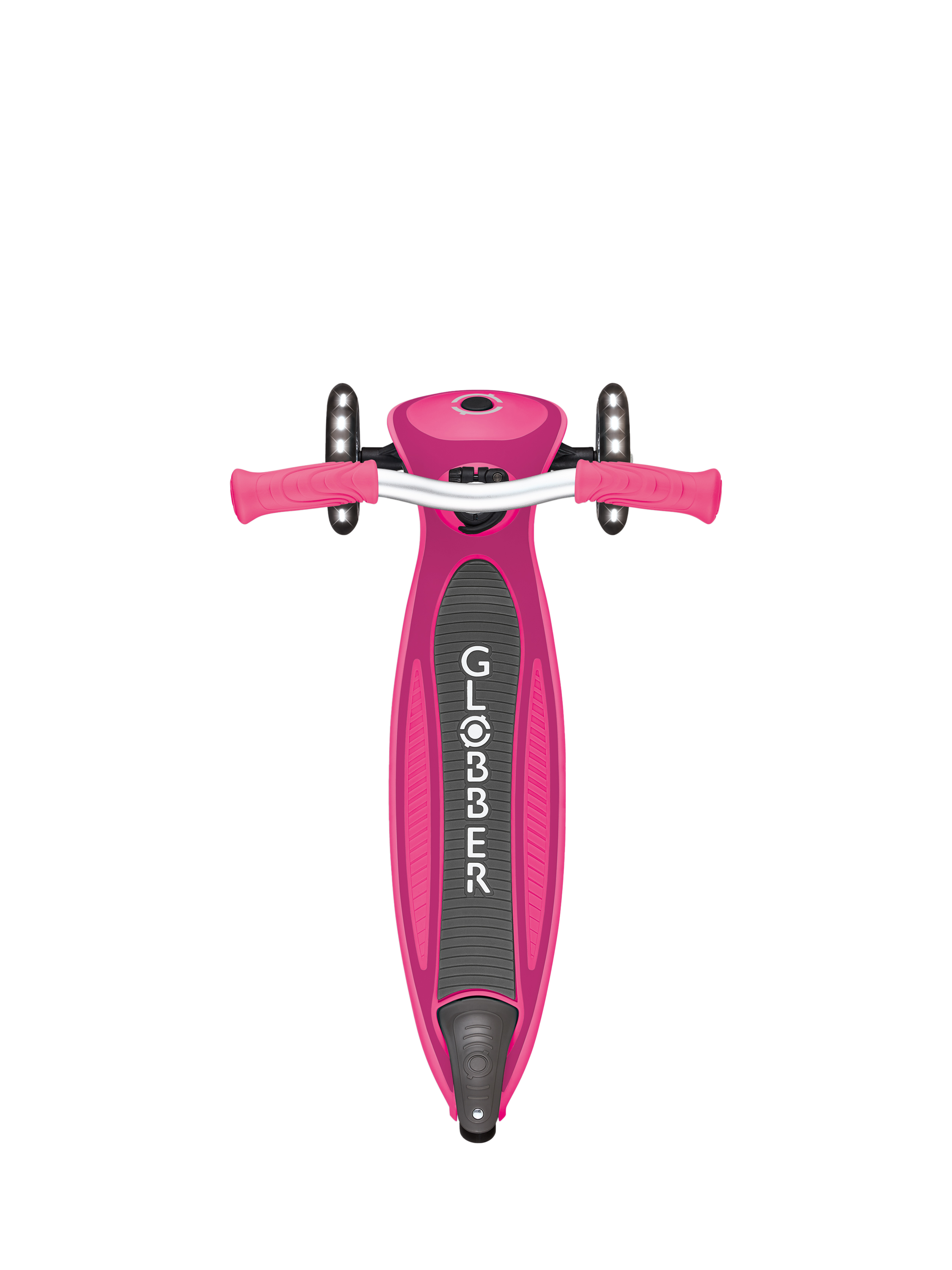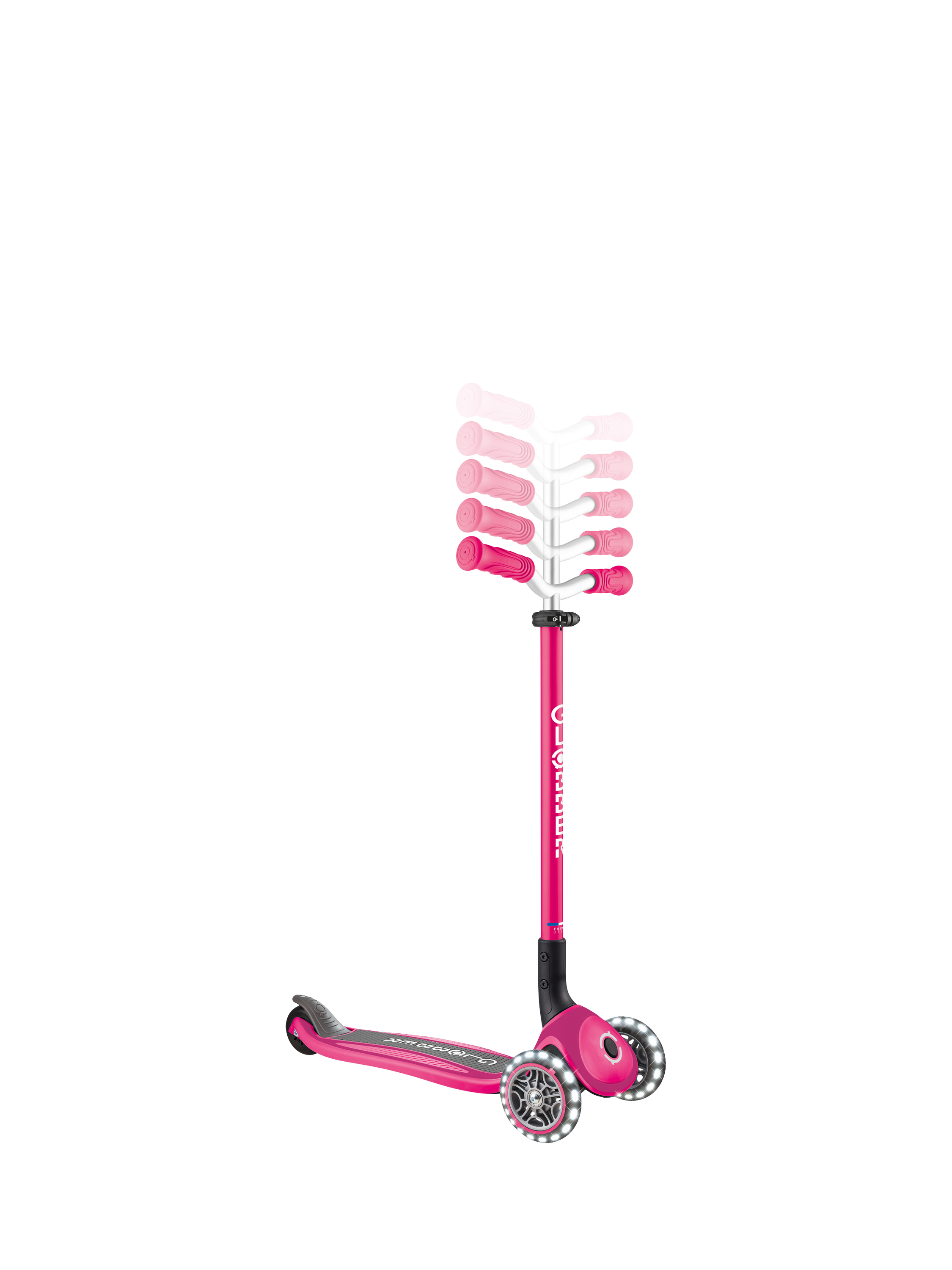 Master Lights comes with battery-free white LED front lights! Thanks to the dynamo lighting, the faster you go, the brighter the LED lights appear. The extra-long and wide bi-injection composite rear brake delivers on brake efficiency and prolongs wheel longevity. It comes with an extra-wide, anti-slip dual-colour composite deck with EVA foam that can support weights up to 50kg. With an adjustable 5-height T-bar, it’s perfect for adapting as your child grows. The dual-colour TPR grips offer both comfort and durability.