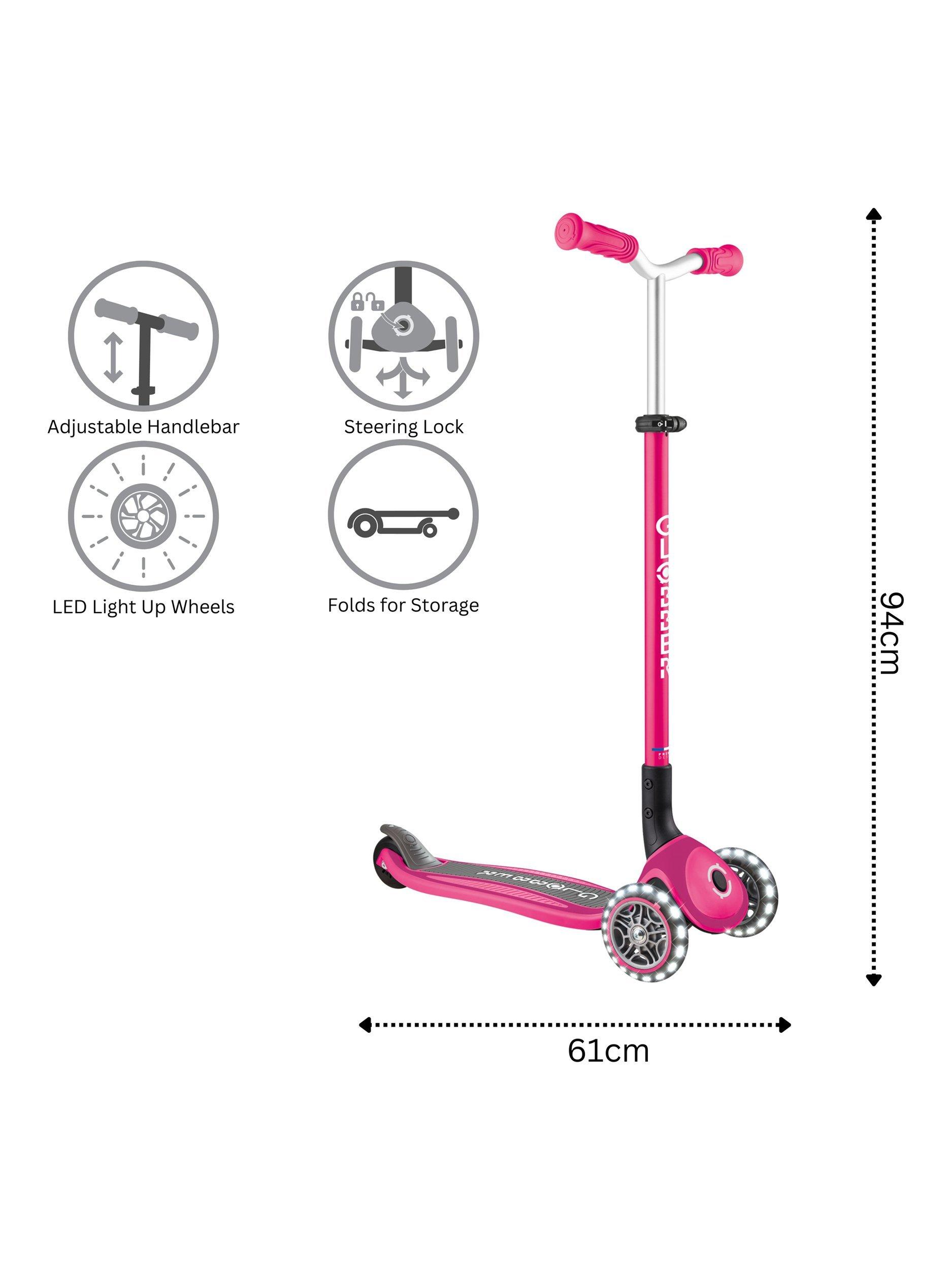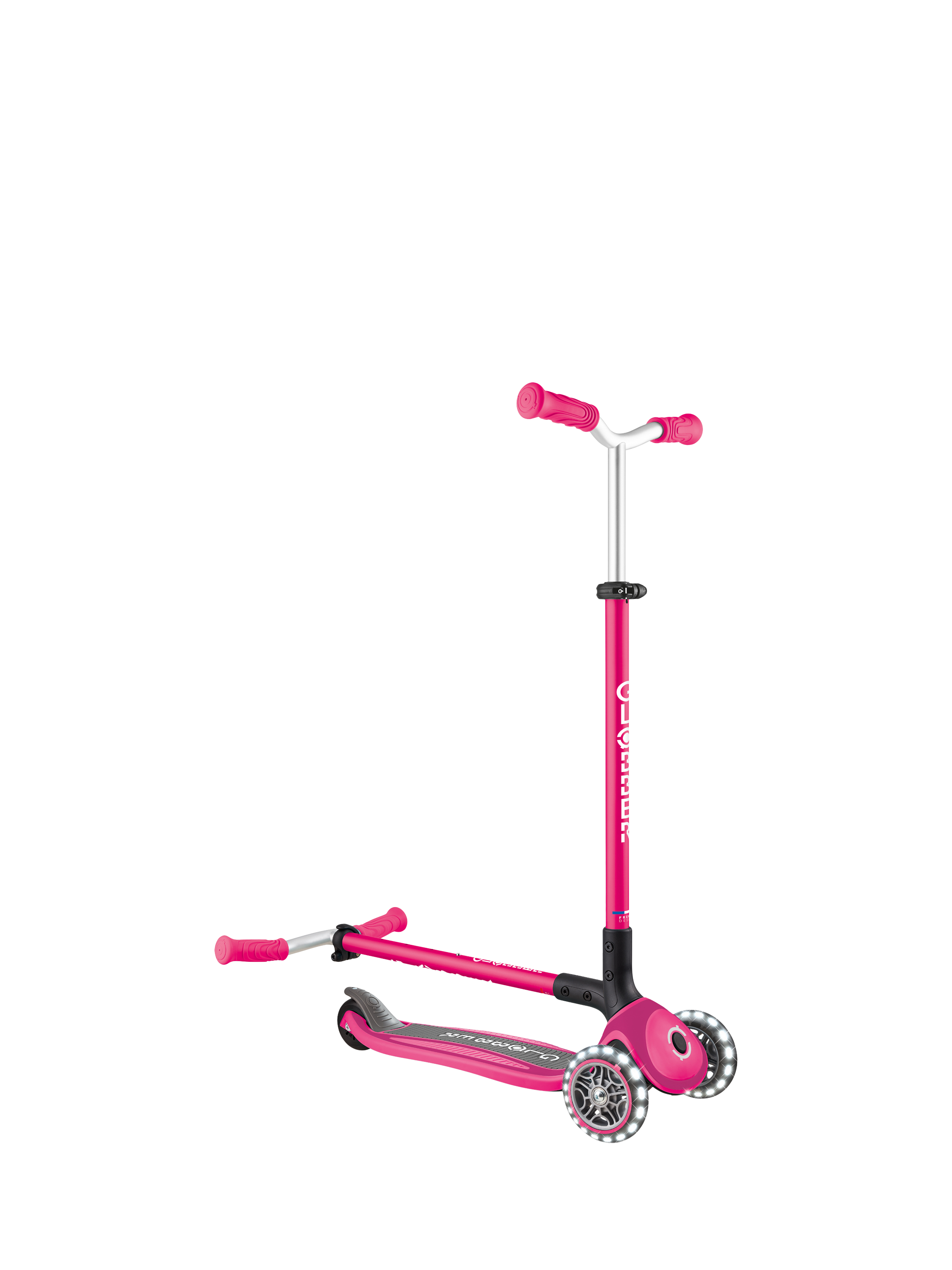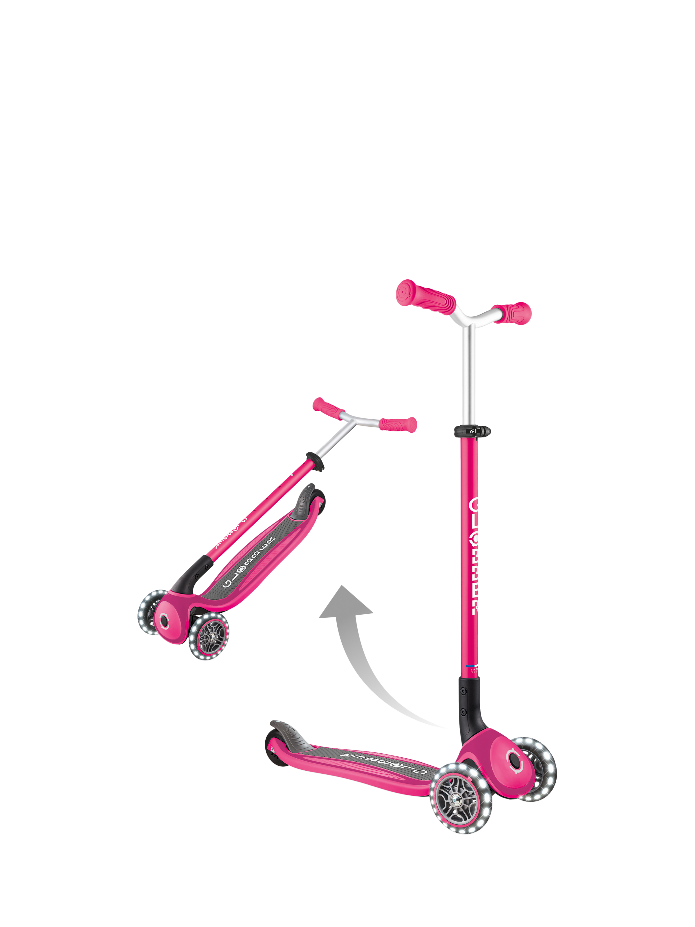 Its design for children and teenagers goes beyond the norm of 3-wheel scooters! With just a push of a button, it folds to allow easy transportation in trolley mode. The patented steering lock button fixes the steering easily to move only backwards and forwards as younger children become comfortable.