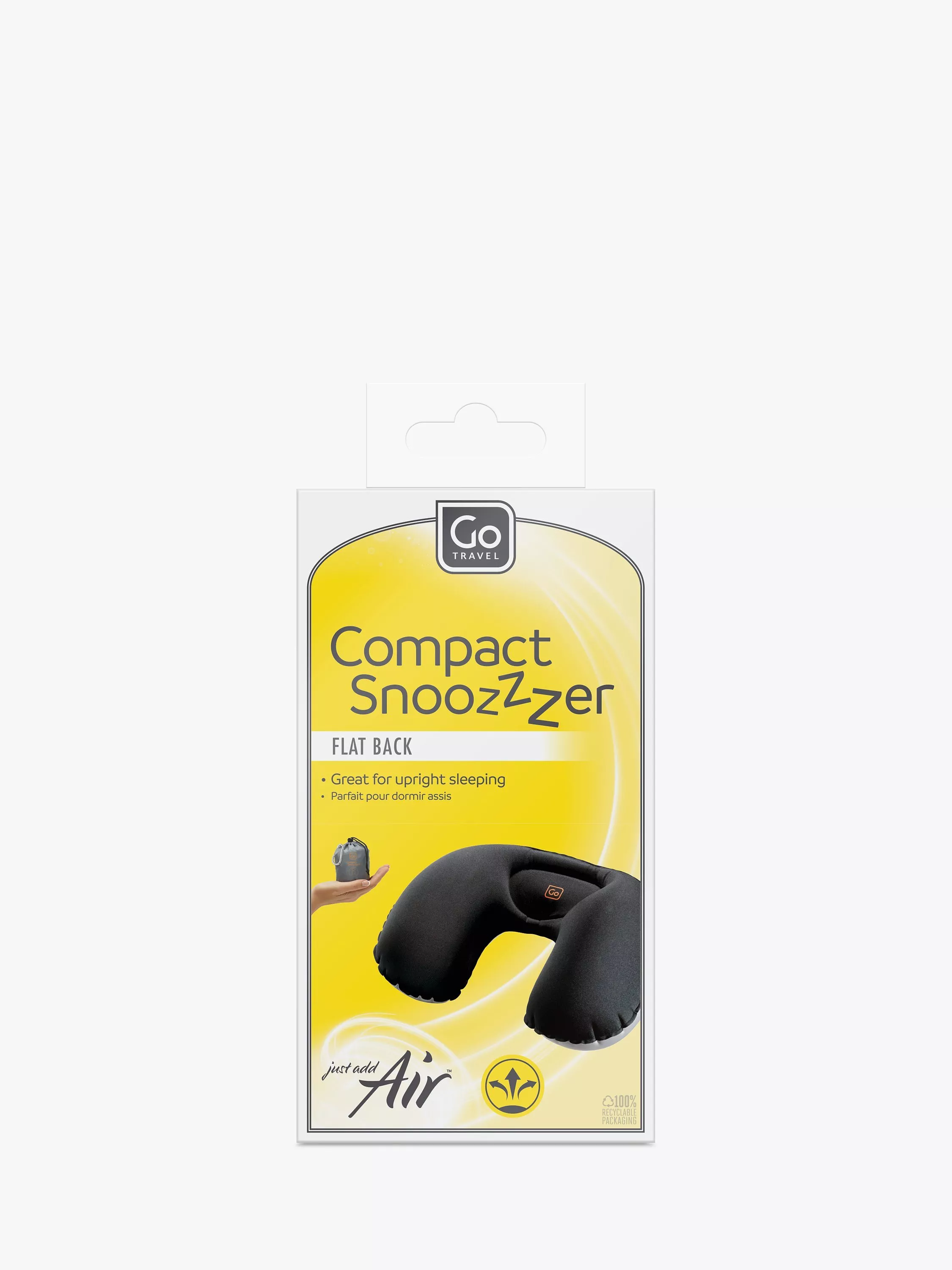 The Goldilocks of inflatable travel pillows with a Quick Adjust Air Valve for instant push-button shape finessing. The flat back design makes it an ideal companion for upright sleeping and it holds securely in place thanks to its non-slip rear grip. Just sink in, relax and stress floats away. Ultra-compact when packed, it reduces down into the most compact of micro carry pouches. Clip it to your pack and Go!