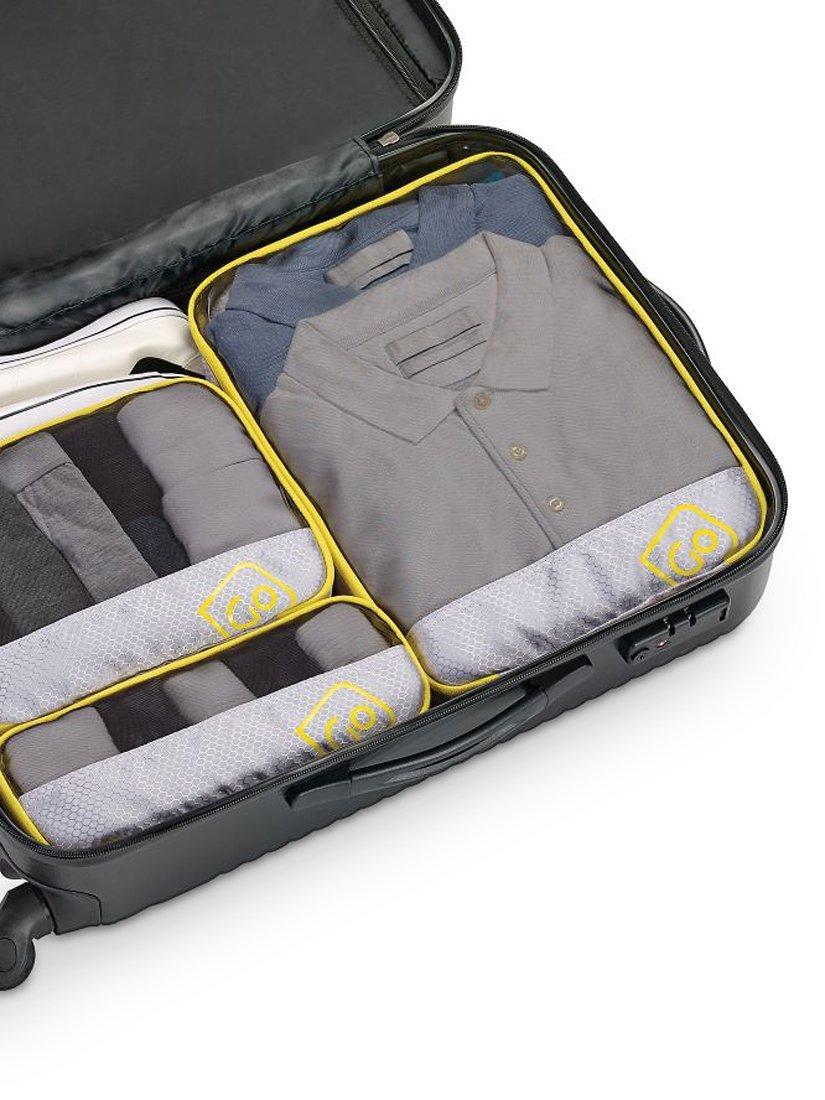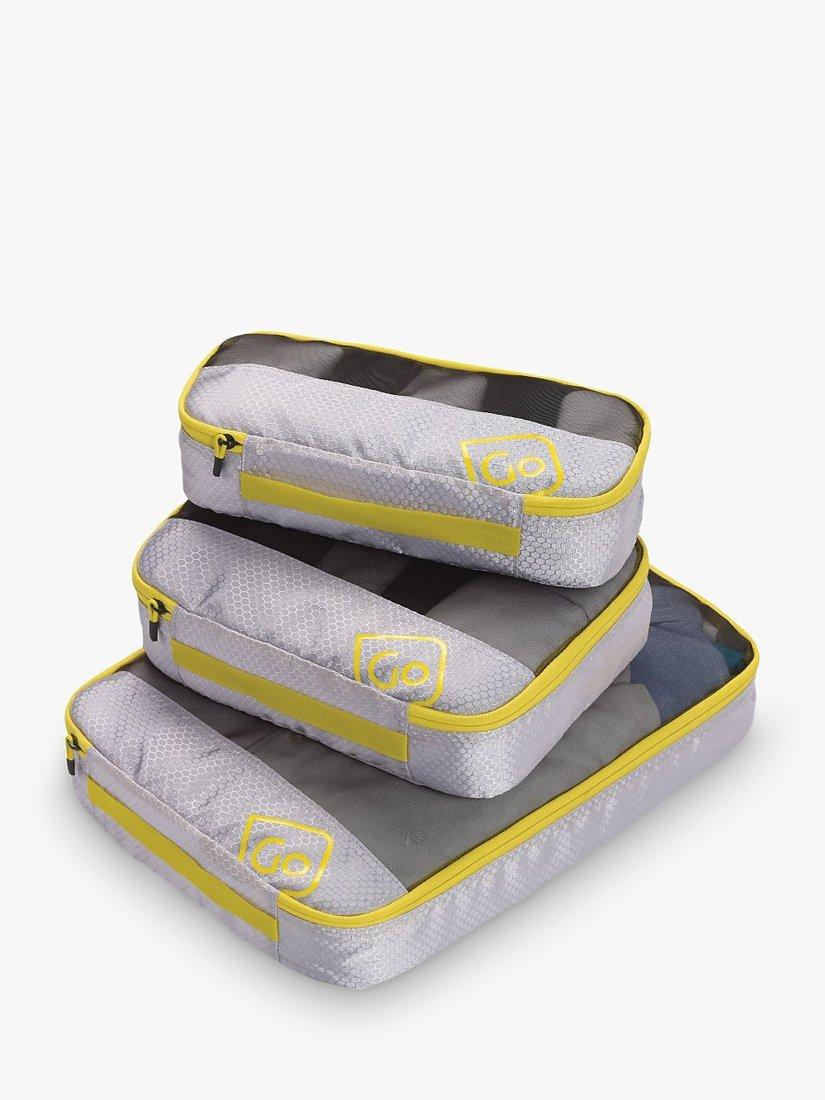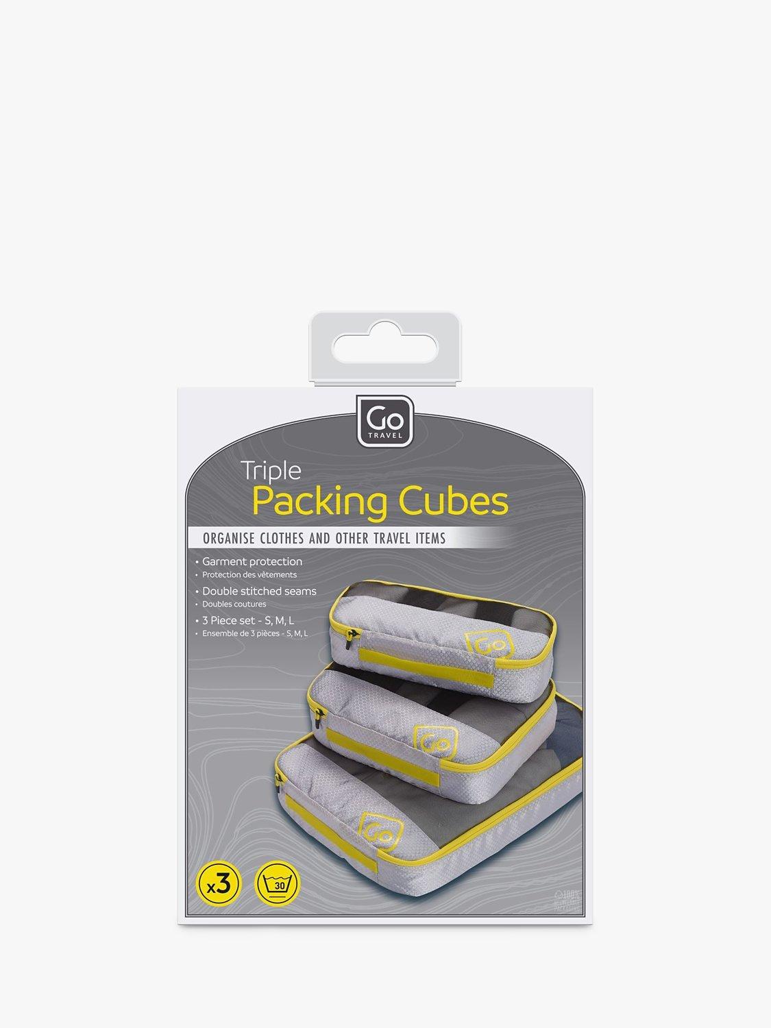 A set of three multi-size packing cubes for effortless, organised packing and better garment protection. Double-stitched seams provide extra durability and strength, and quick-grab handles and full-length zips offer immediate access when required. Finished with a breathable mesh front cover that allows ventilation and helps you instantly see what's inside.